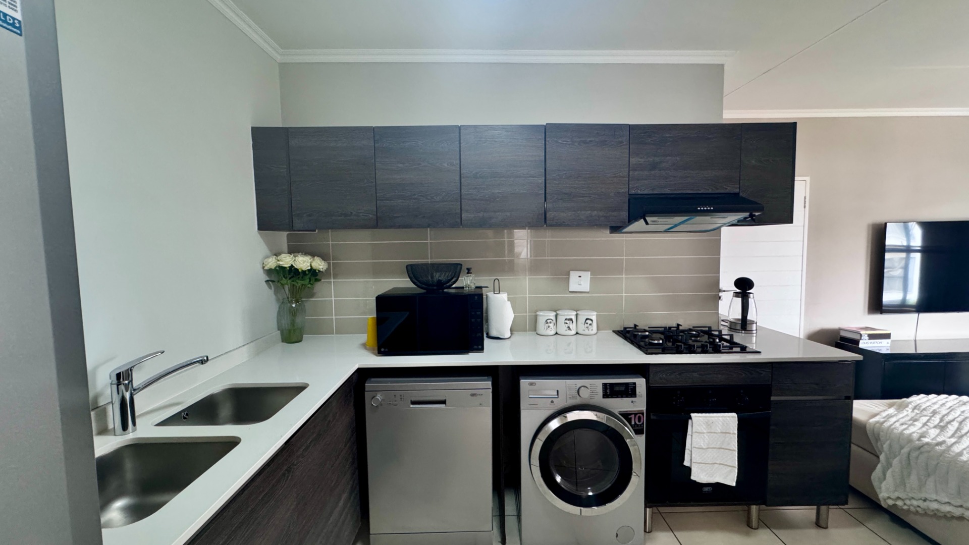 Discover modern living in this stylish and well-maintained 49 sqm apartment, perfectly positioned on the second floor of the highly sought-after Grove-Lane complex in Equestria, Pretoria. Ideal for investors or working professionals, this contemporary unit offers a secure, convenient lifestyle within a beautifully maintained estate featuring white façades, stone accents, landscaped common areas, and enhanced security with a gated entrance, electric fencing, and boom-controlled access.