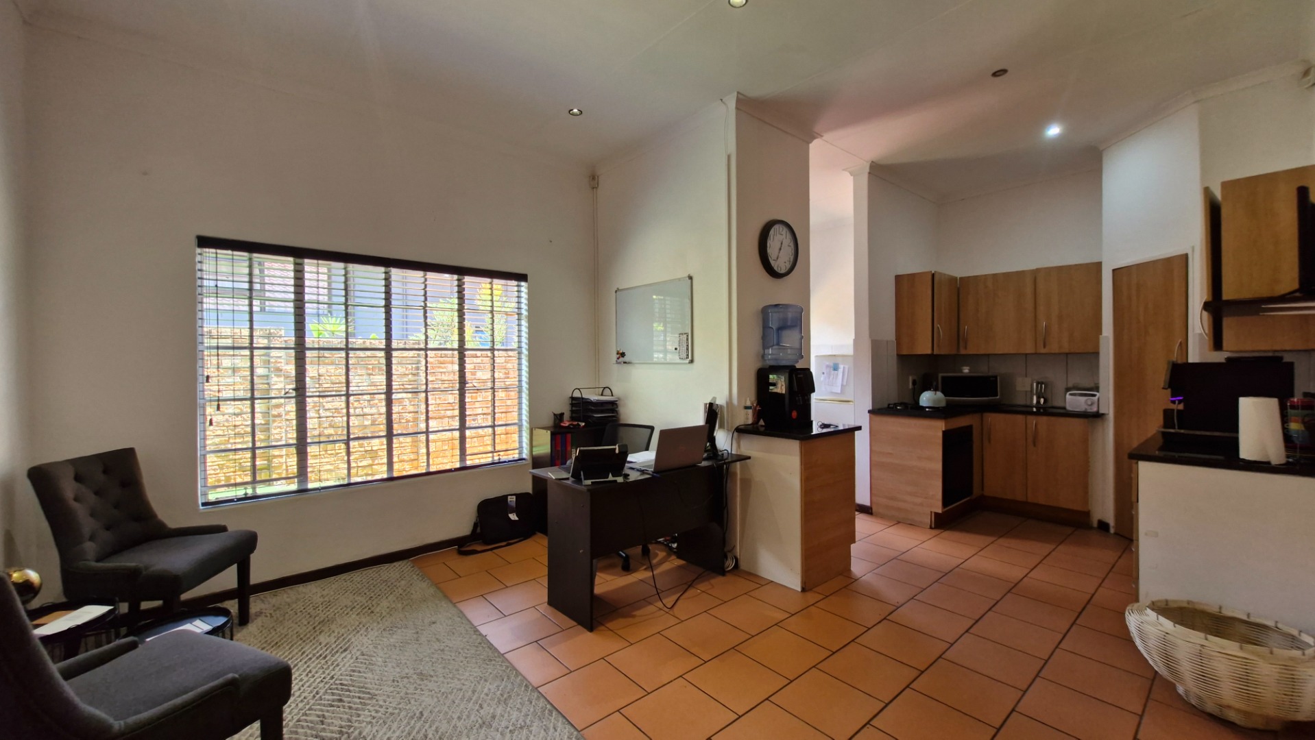 Security is paramount, with an alarm system, multiple security gates, window bars, an electric fence, and a security camera ensuring peace of mind. The entire perimeter is totally walled, providing an enhanced sense of privacy and protection. Modern living is further supported by fibre connectivity, catering to contemporary digital demands. Pets are permitted, making this an ideal family home.
