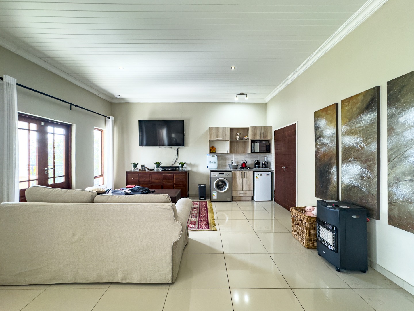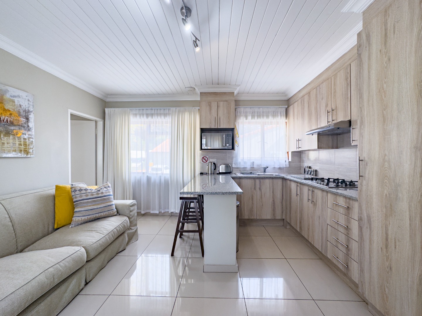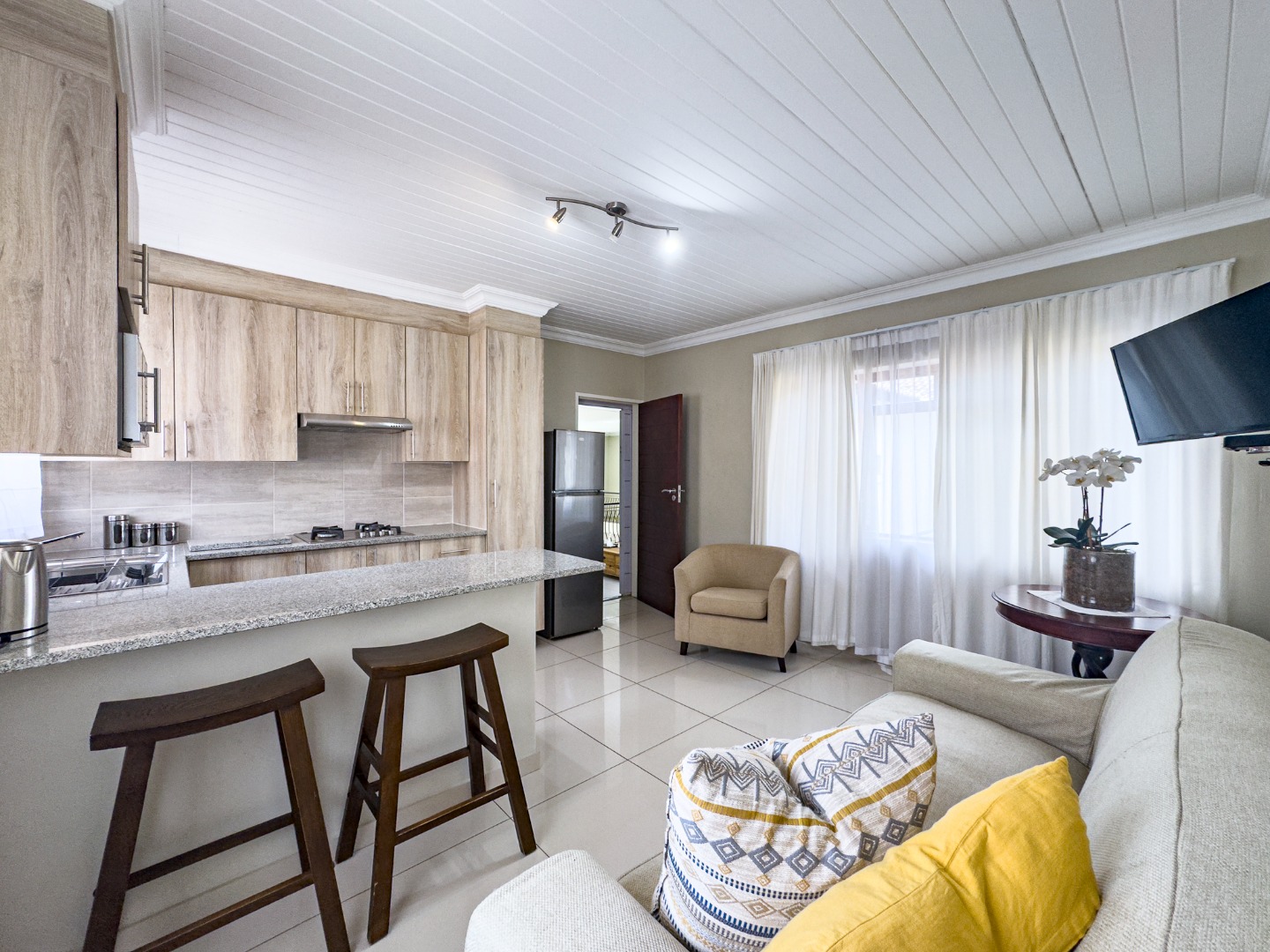 This property hosts seven private living units — six one-bedroom and one two-bedroom — two of which come tastefully appointed with bespoke Coricraft furnishings. Whether you’re looking to operate a boutique guest lodge, long-term rentals, or capitalize on the AirBnB market, the configuration and zoning offer immense potential.