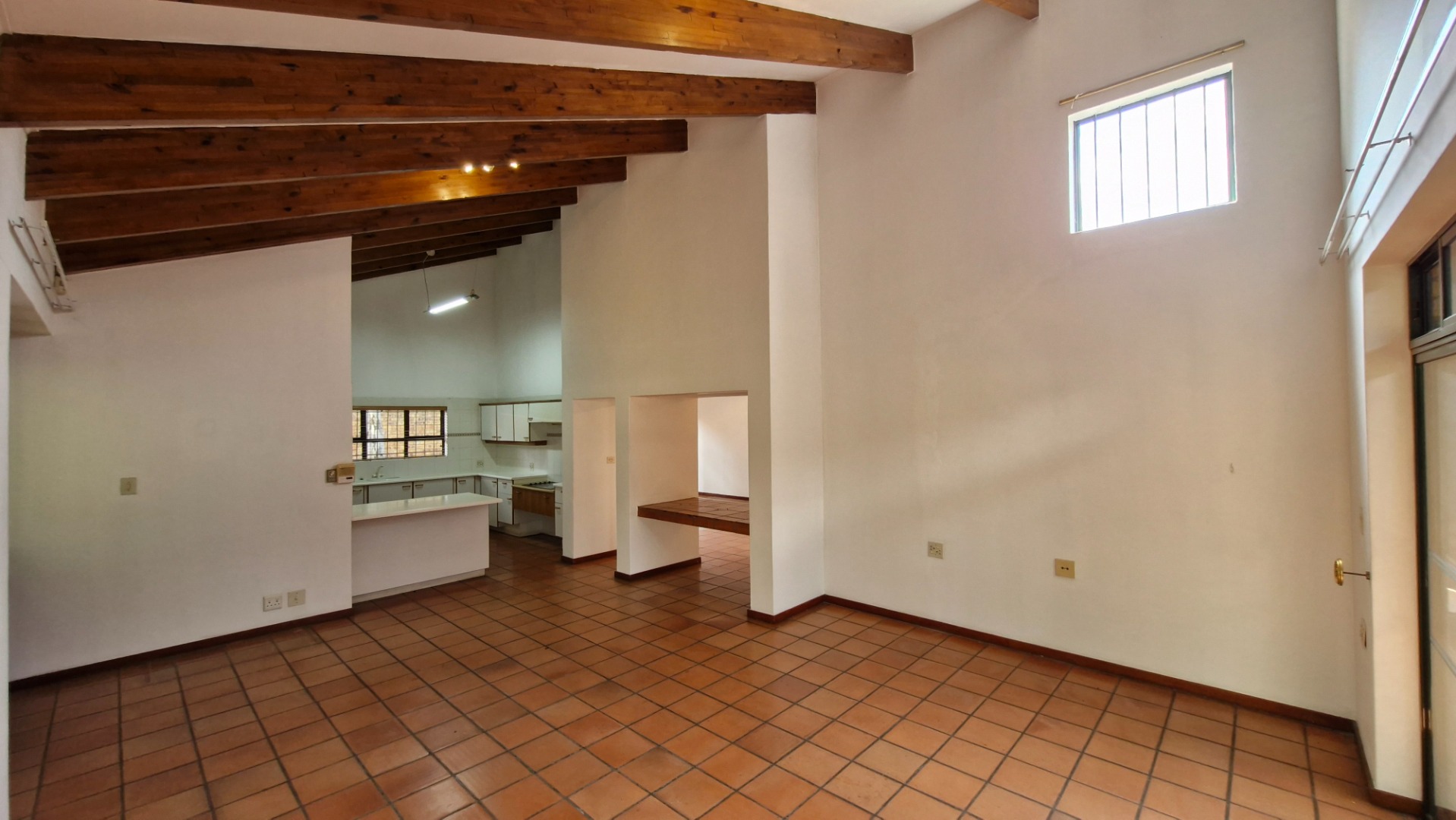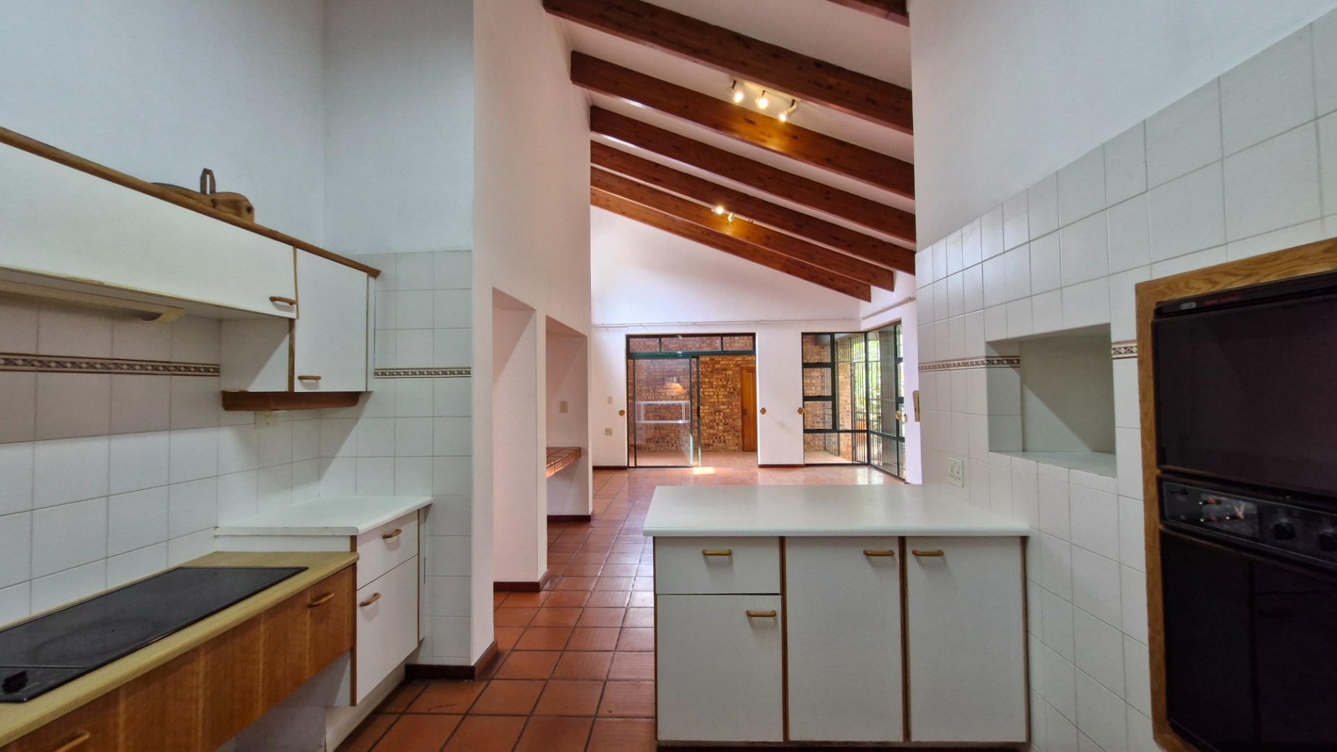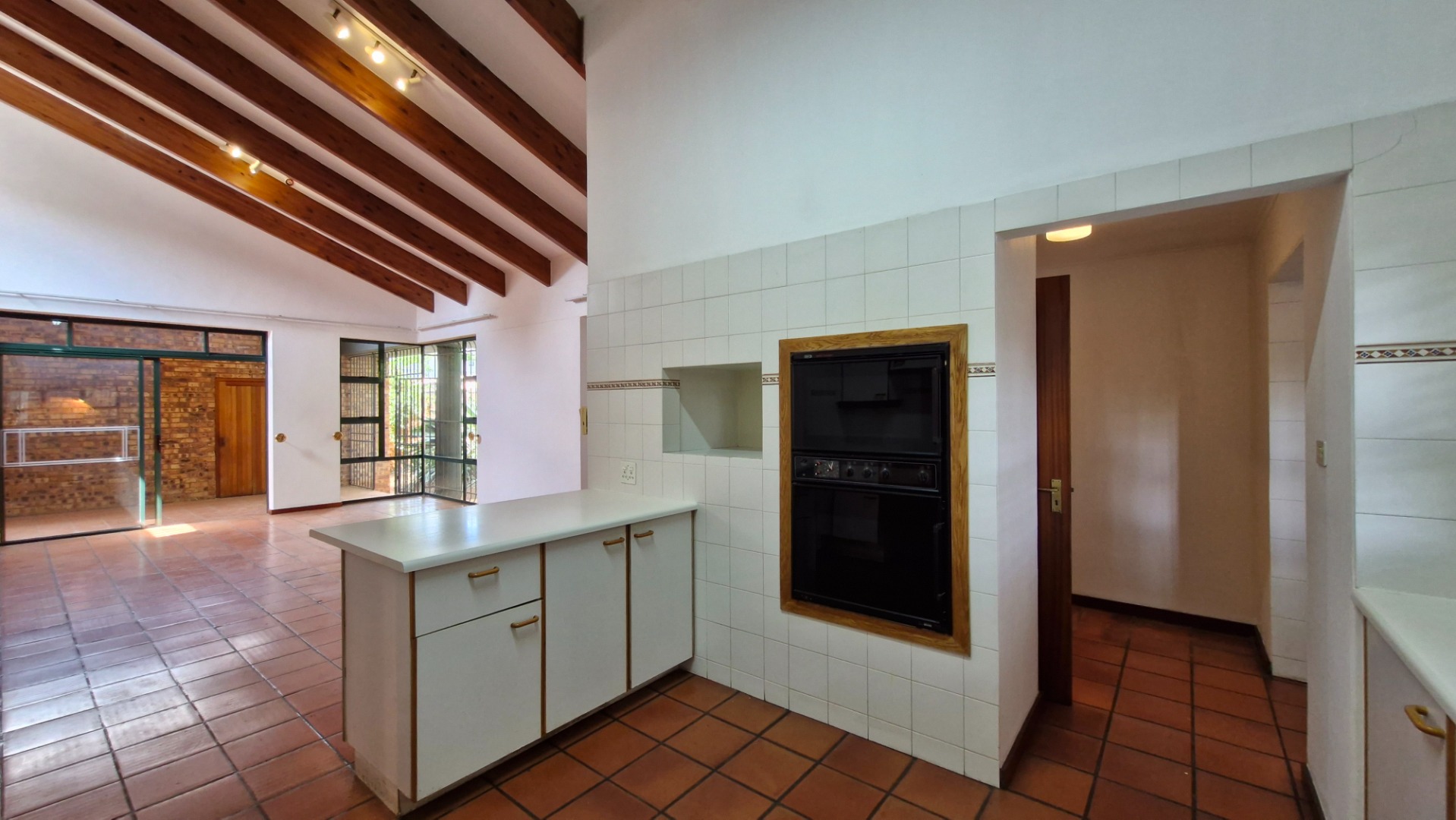 Living and Dining: The kitchen flows effortlessly into the spacious living and dining areas, which open through sliding doors to a covered entertainment area with a built-in braai—ideal for hosting gatherings.