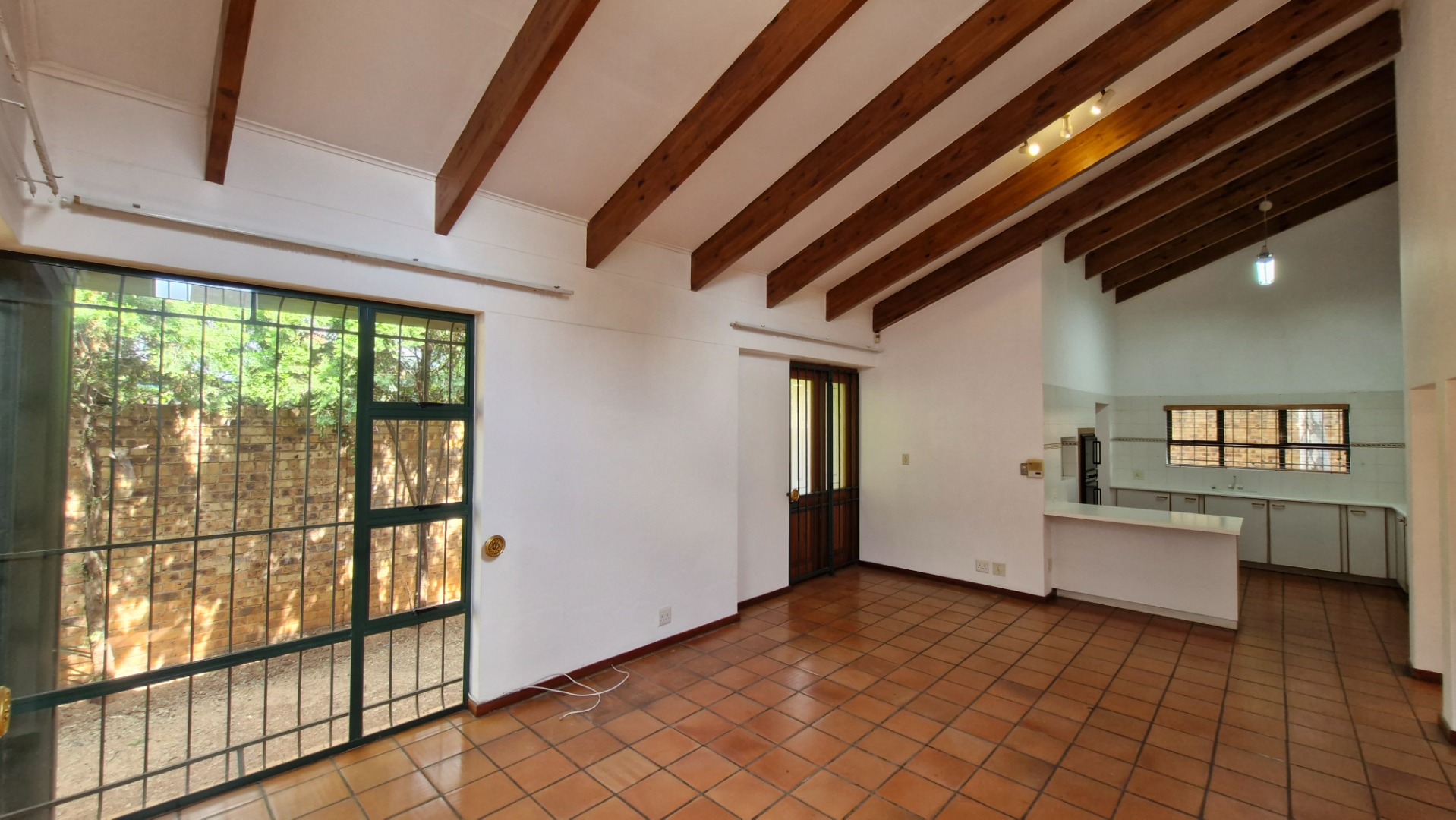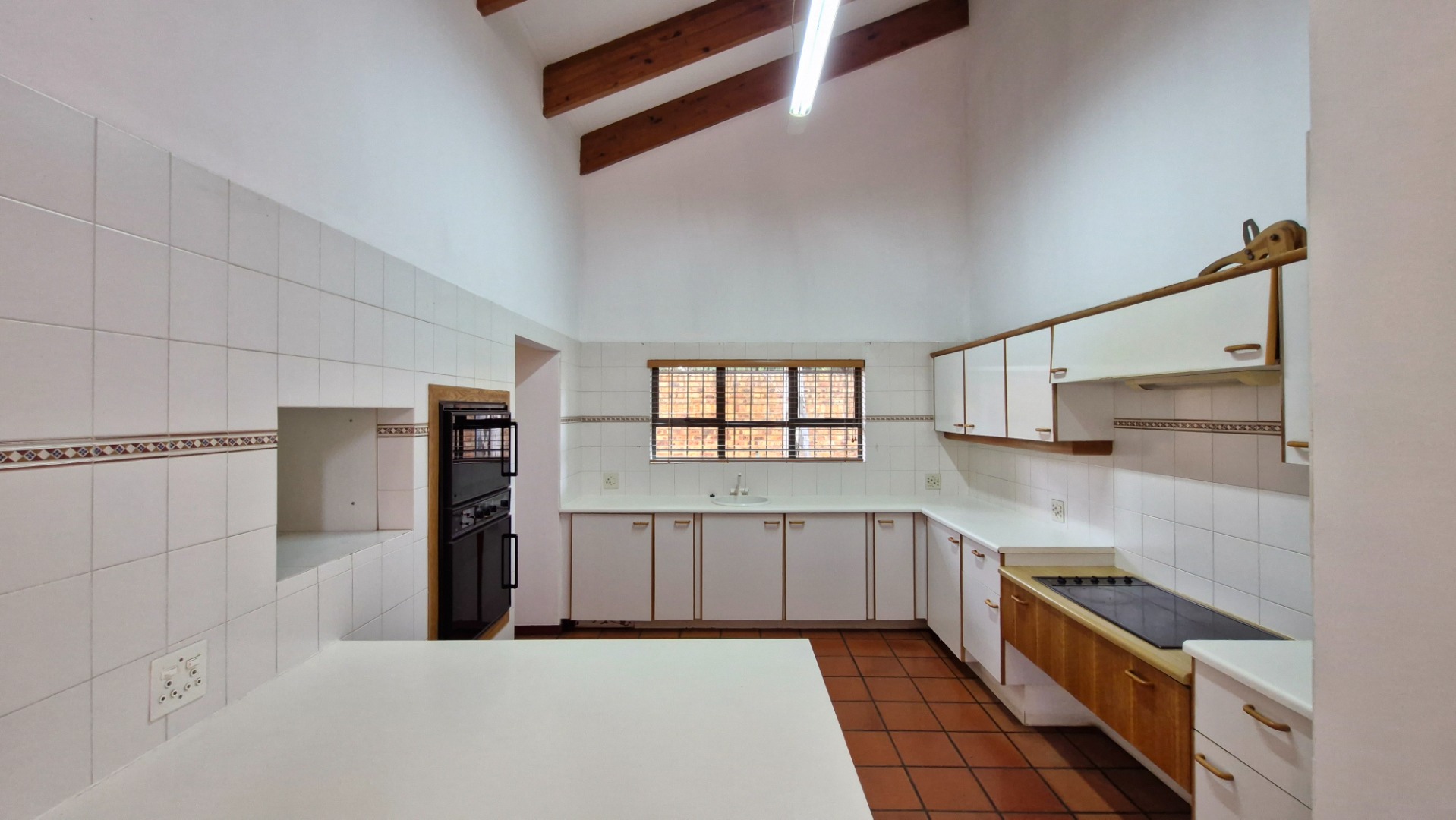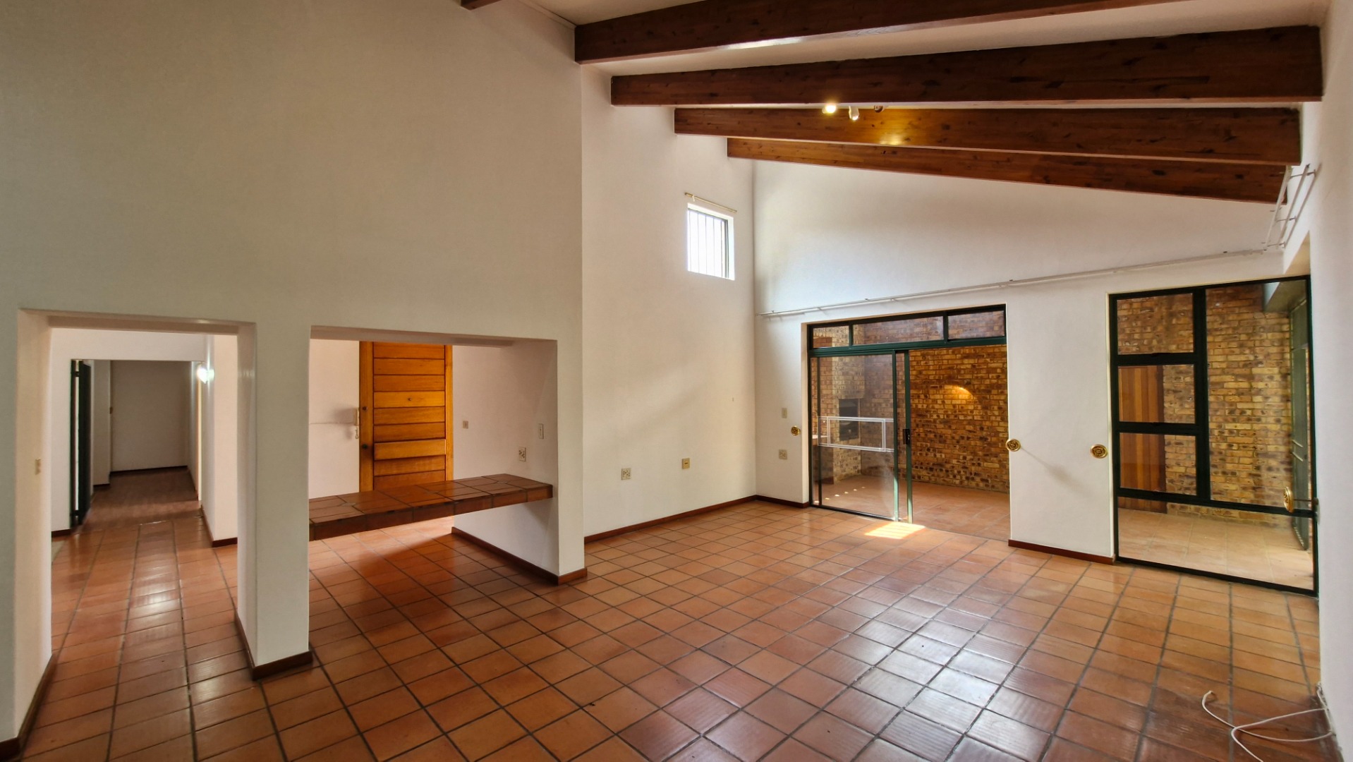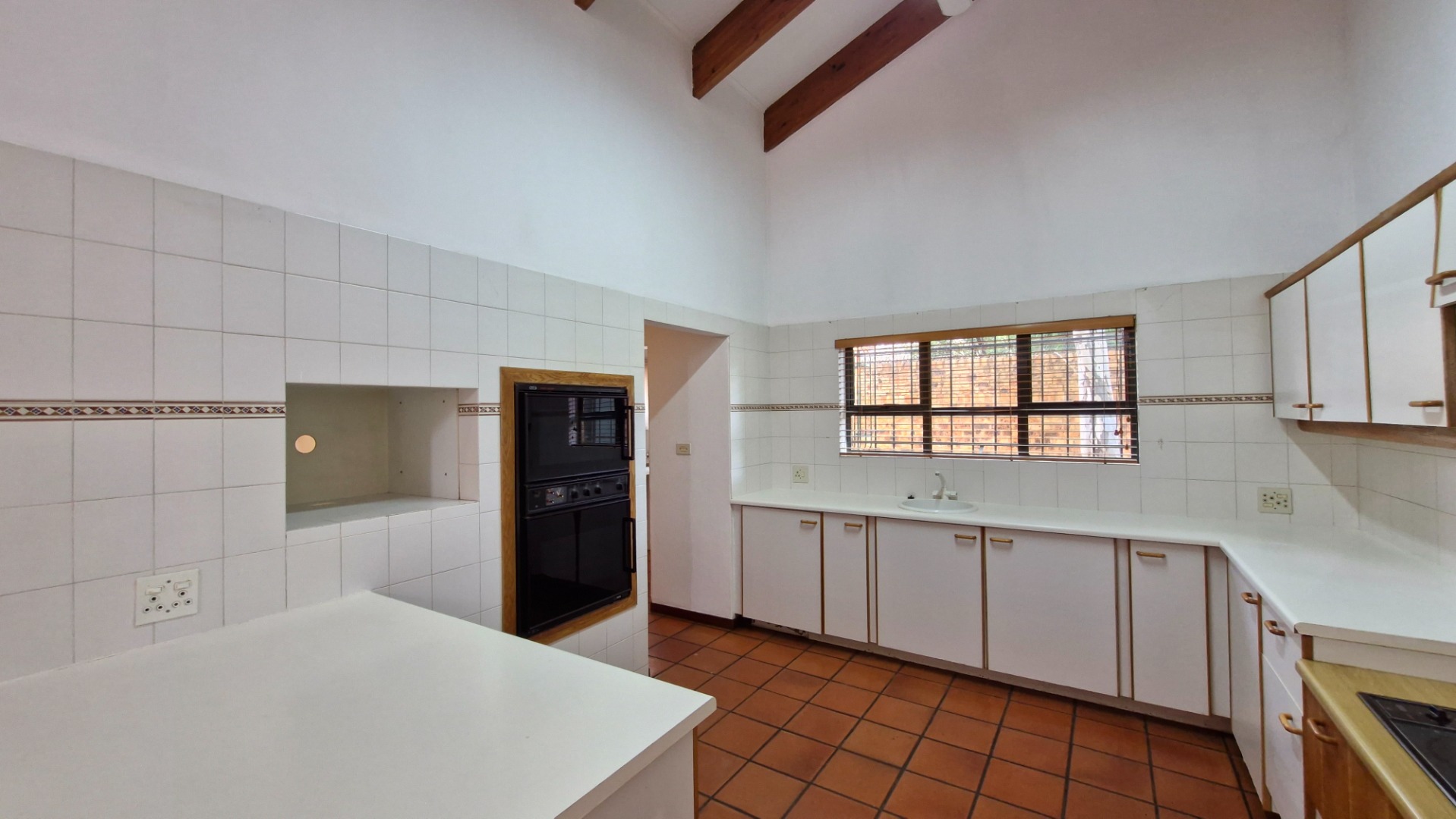 Living and Dining: The kitchen flows effortlessly into the spacious living and dining areas, which open through sliding doors to a covered entertainment area with a built-in braai—ideal for hosting gatherings.