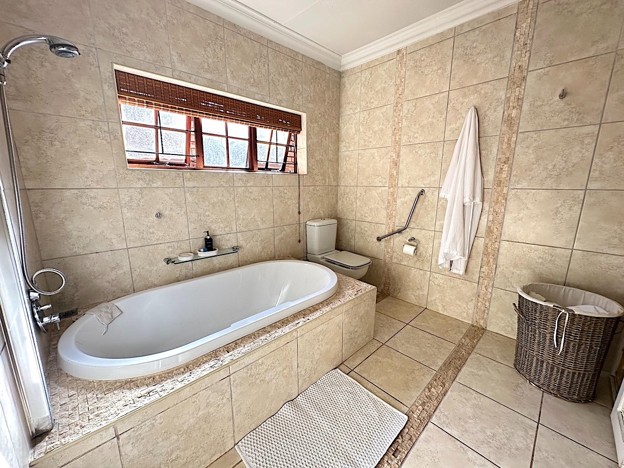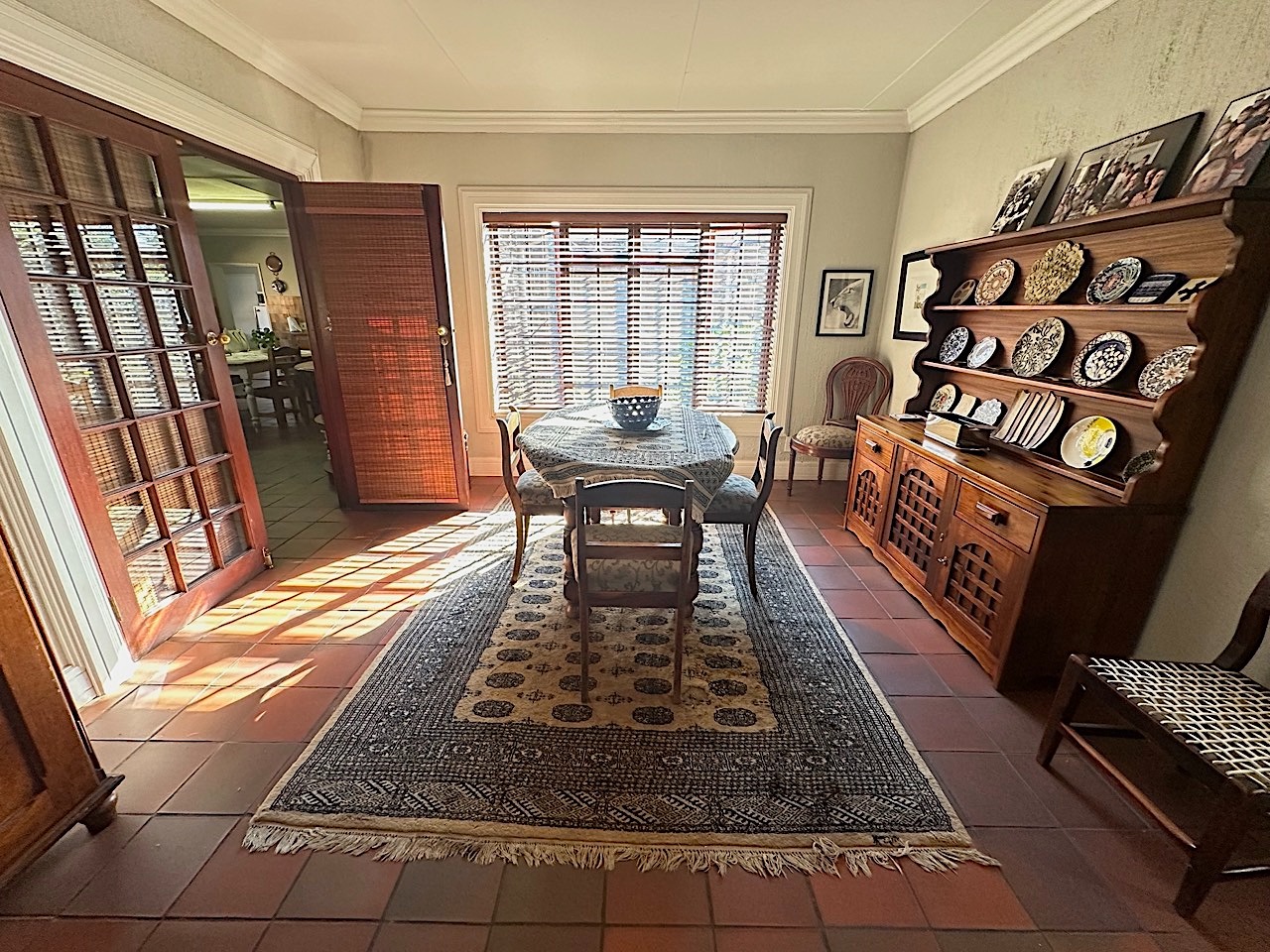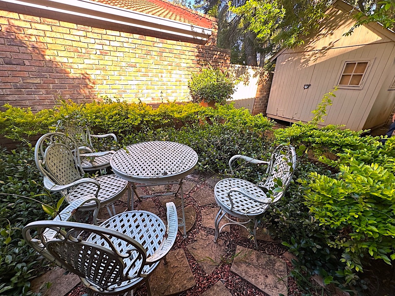 The generous 1300 sqm erf offers a fantastic outdoor lifestyle. Enjoy the expansive, well-maintained garden, complete with an irrigation and sprinkler system, making it easy to keep lush and green. The patio with an awning is ideal for outdoor relaxation, and with three garages and five parking spaces, there's plenty of room for vehicles. Pets are welcome too!