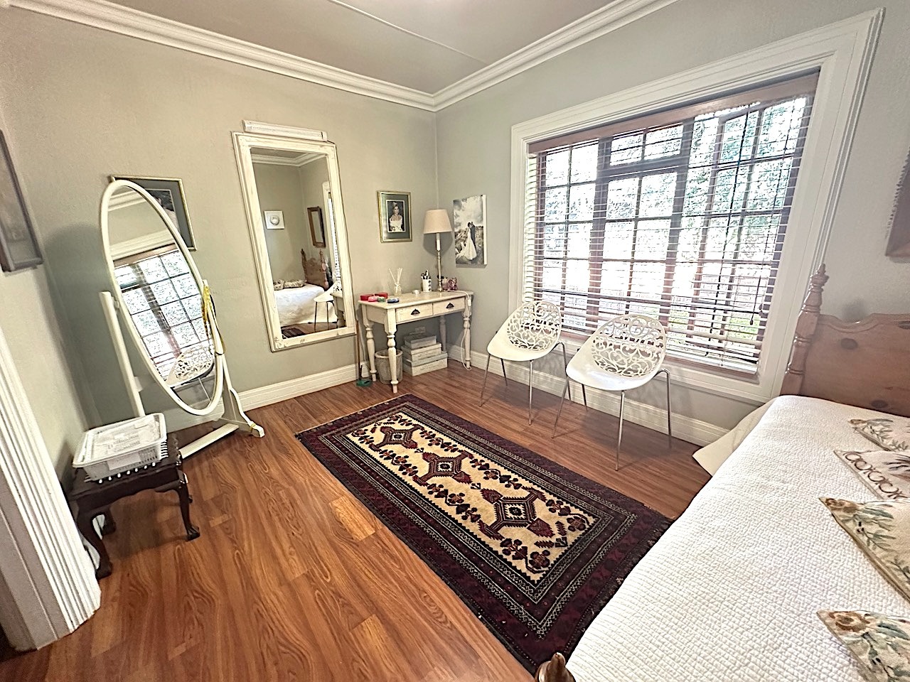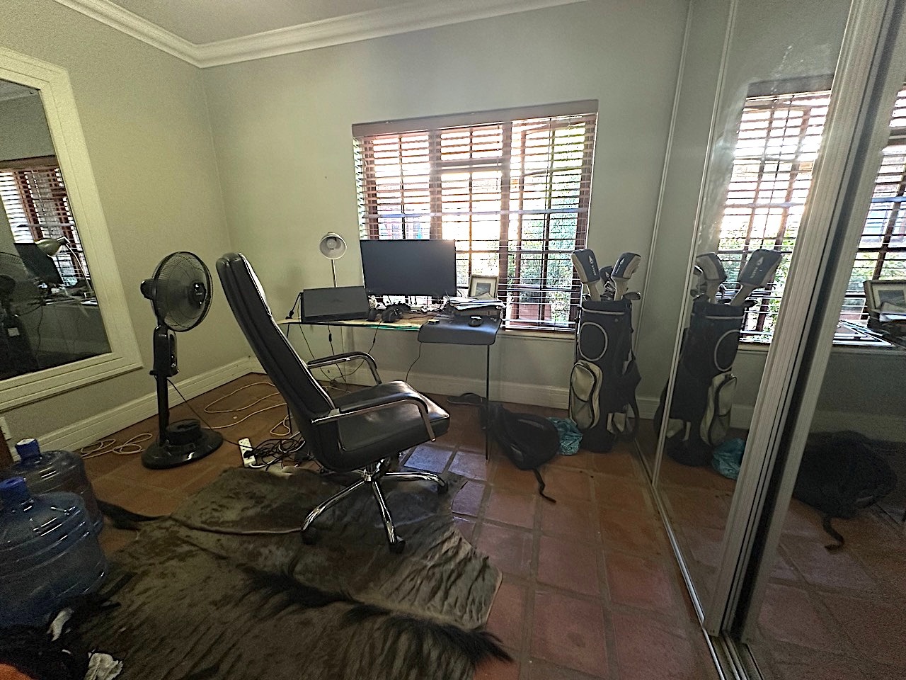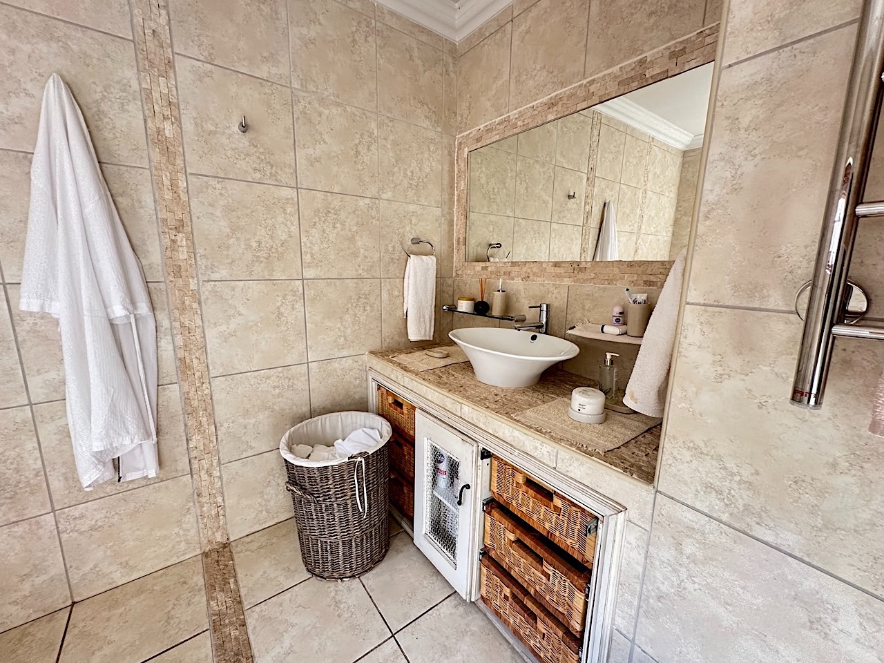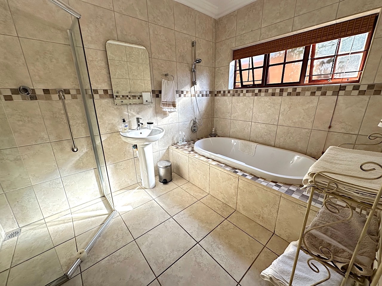 The generous 1300 sqm erf offers a fantastic outdoor lifestyle. Enjoy the expansive, well-maintained garden, complete with an irrigation and sprinkler system, making it easy to keep lush and green. The patio with an awning is ideal for outdoor relaxation, and with three garages and five parking spaces, there's plenty of room for vehicles. Pets are welcome too!