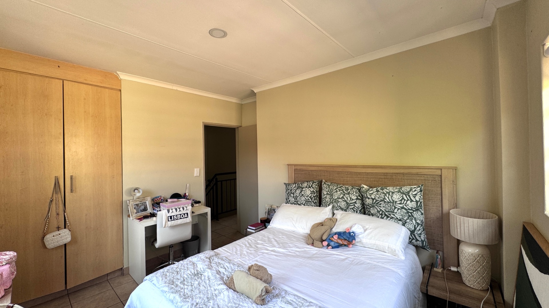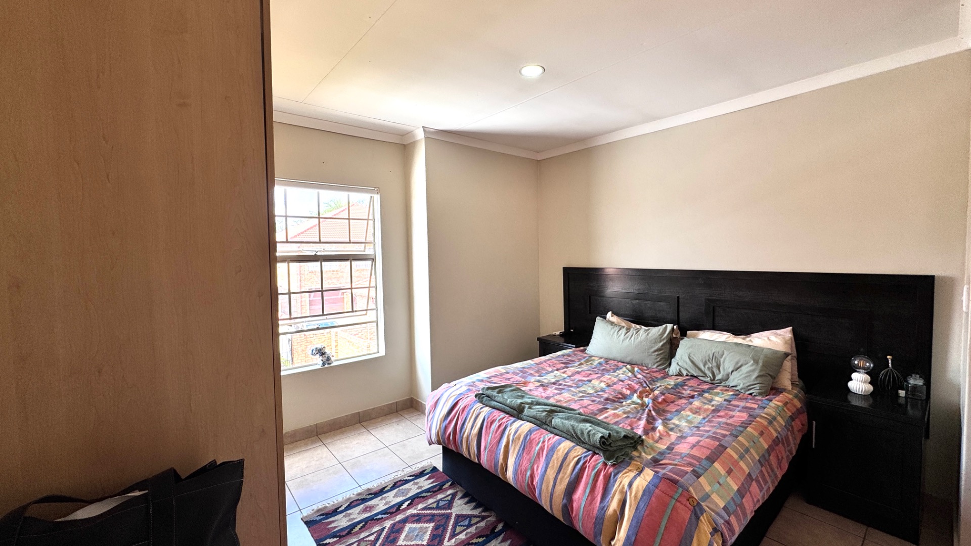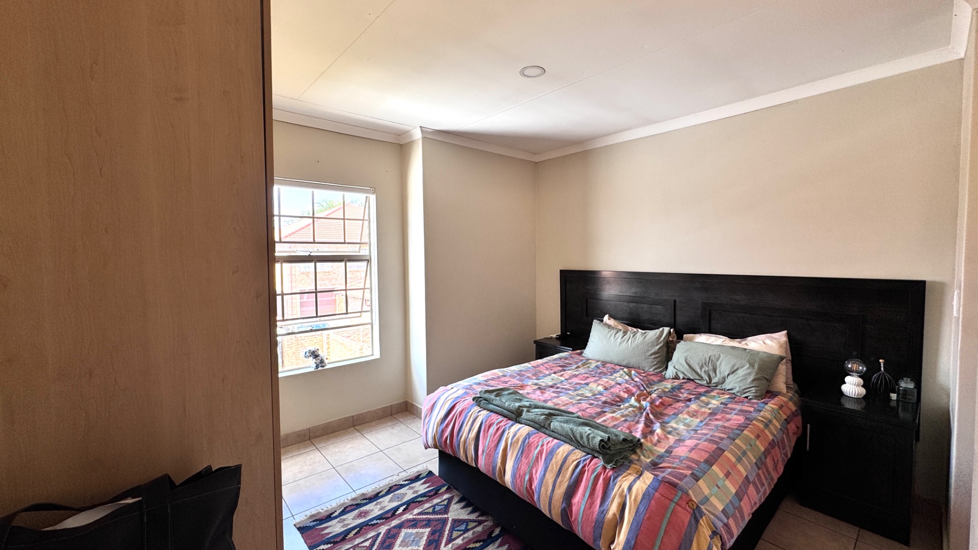 The upper level accommodates three comfortable bedrooms, with one featuring an en-suite bathroom for added privacy and convenience. The additional 1.5 bathrooms cater to the remaining bedrooms and guests. Tiled flooring extends throughout the home, ensuring easy maintenance.