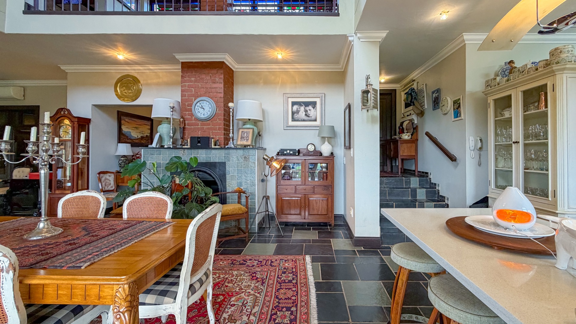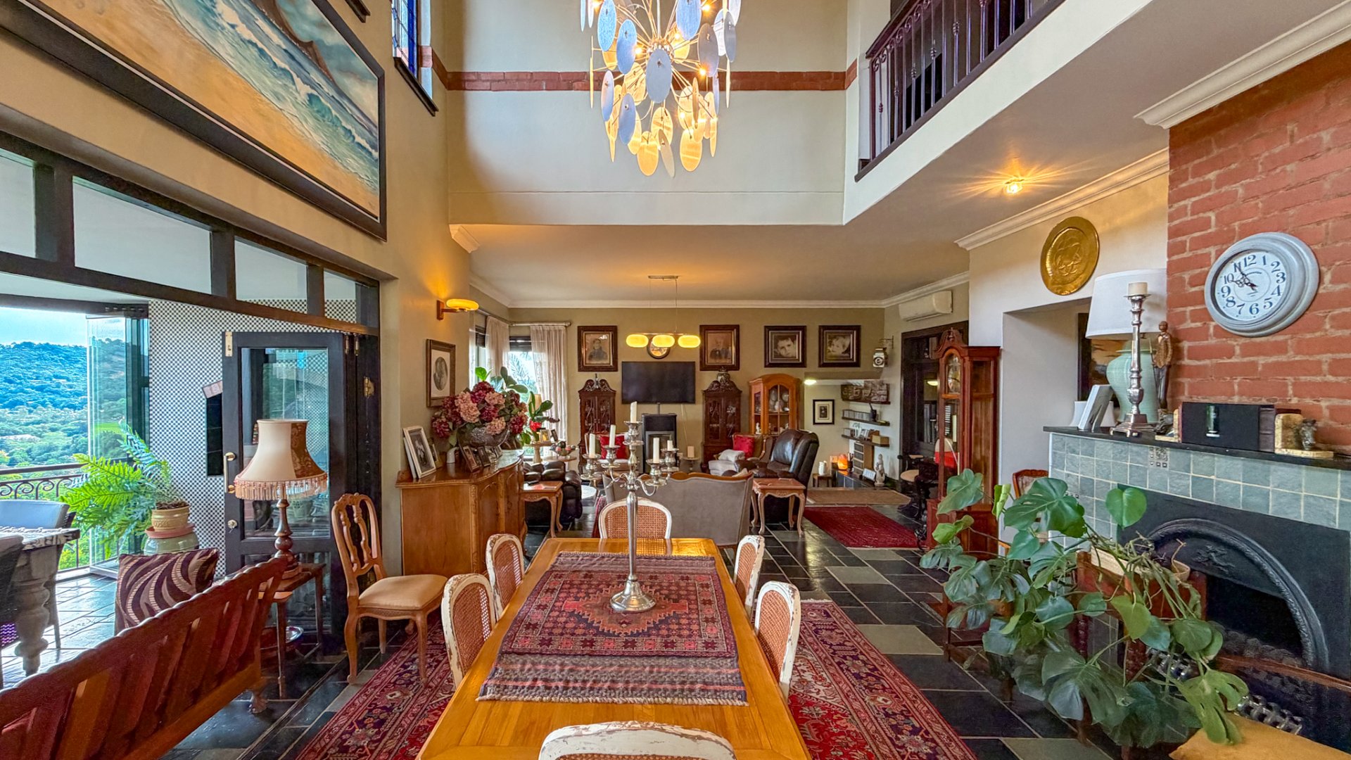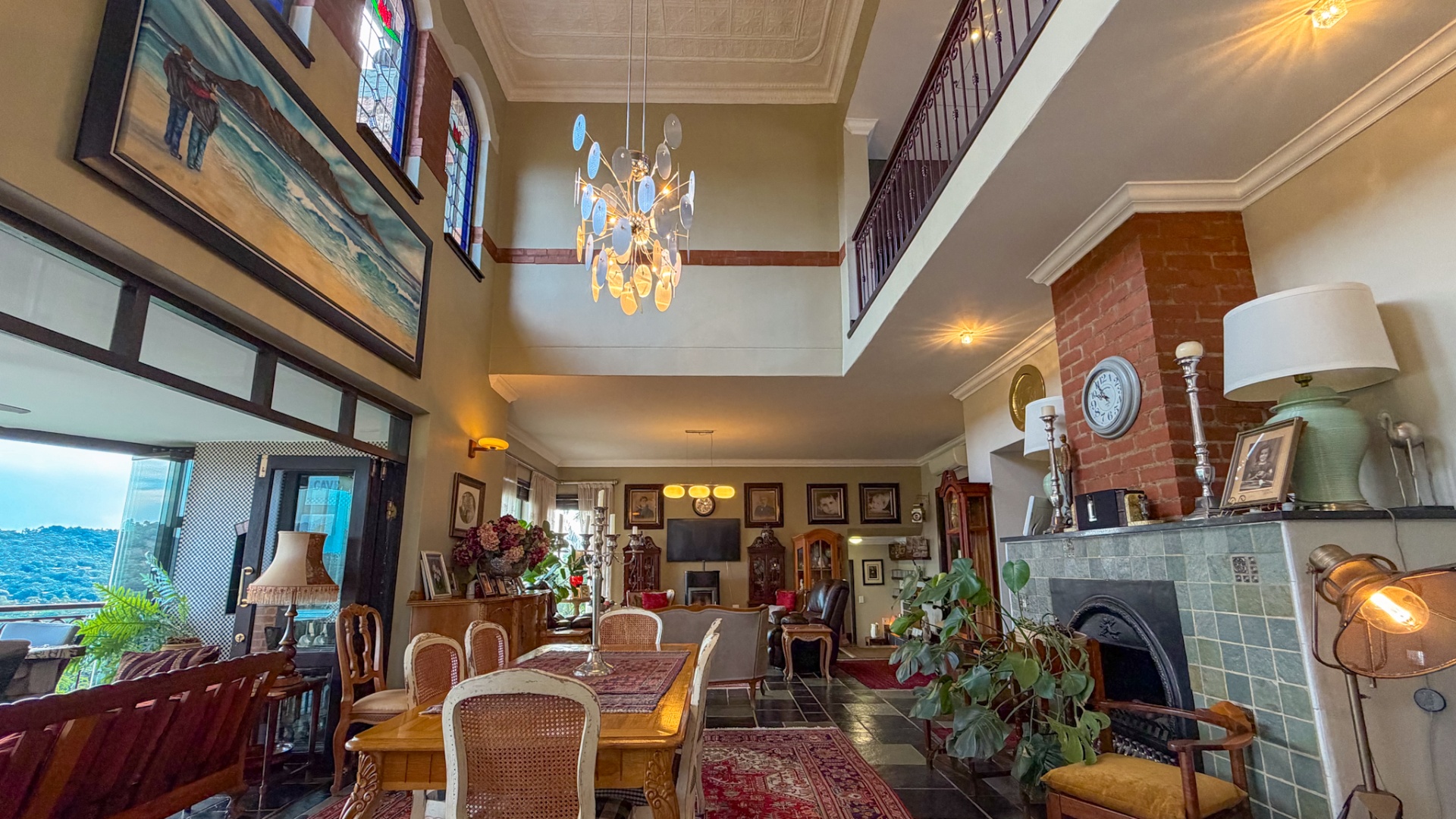 Upon entering, expansive double-volume spaces, natural light, and dramatic views immediately set the tone. The formal lounge—ideal as an executive home office—features its own private entrance, while the open-plan living areas flow seamlessly between the lounge, dining room, and an enclosed entertainment patio. Two feature fireplaces (pellet and gas) create a warm