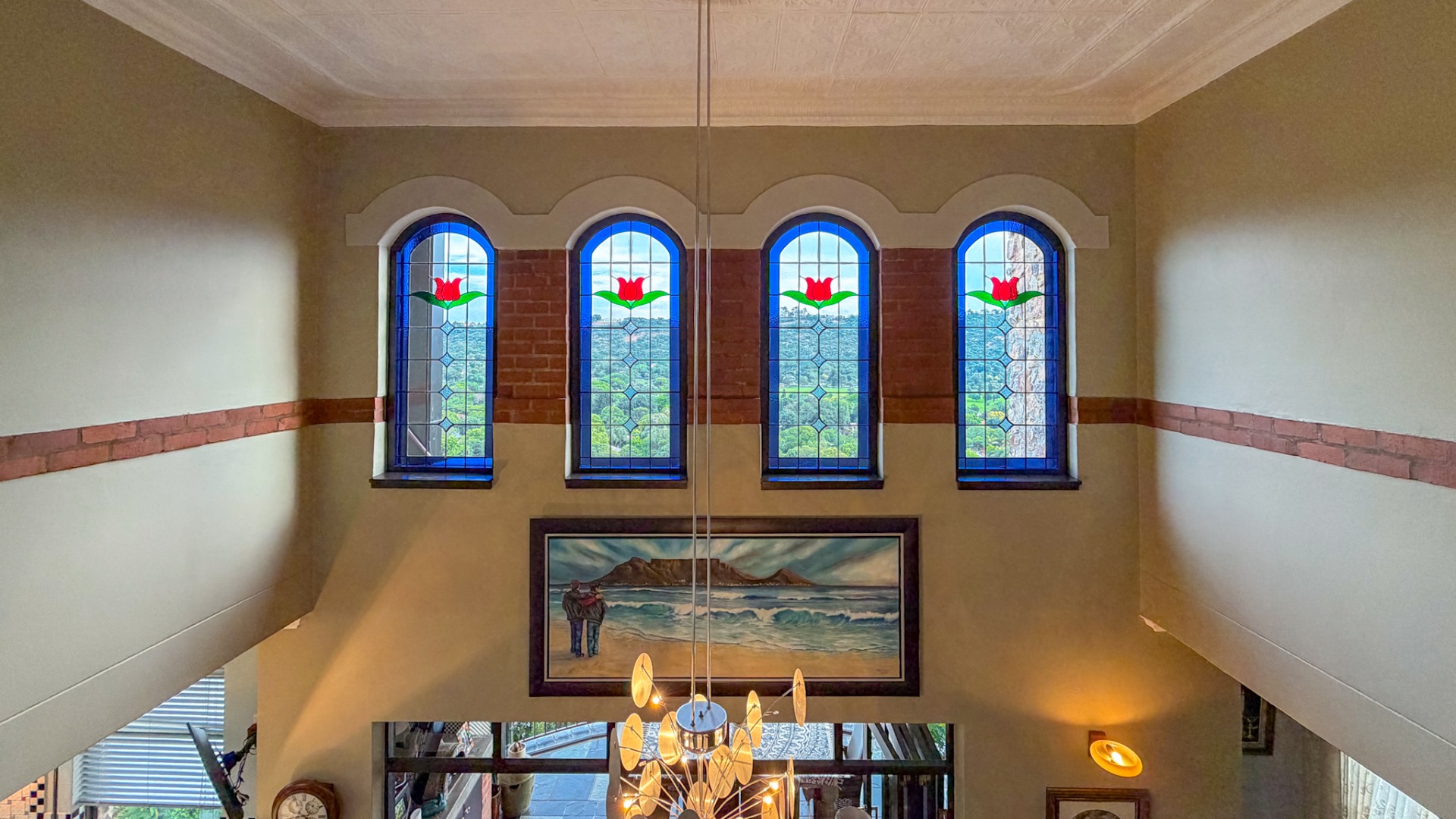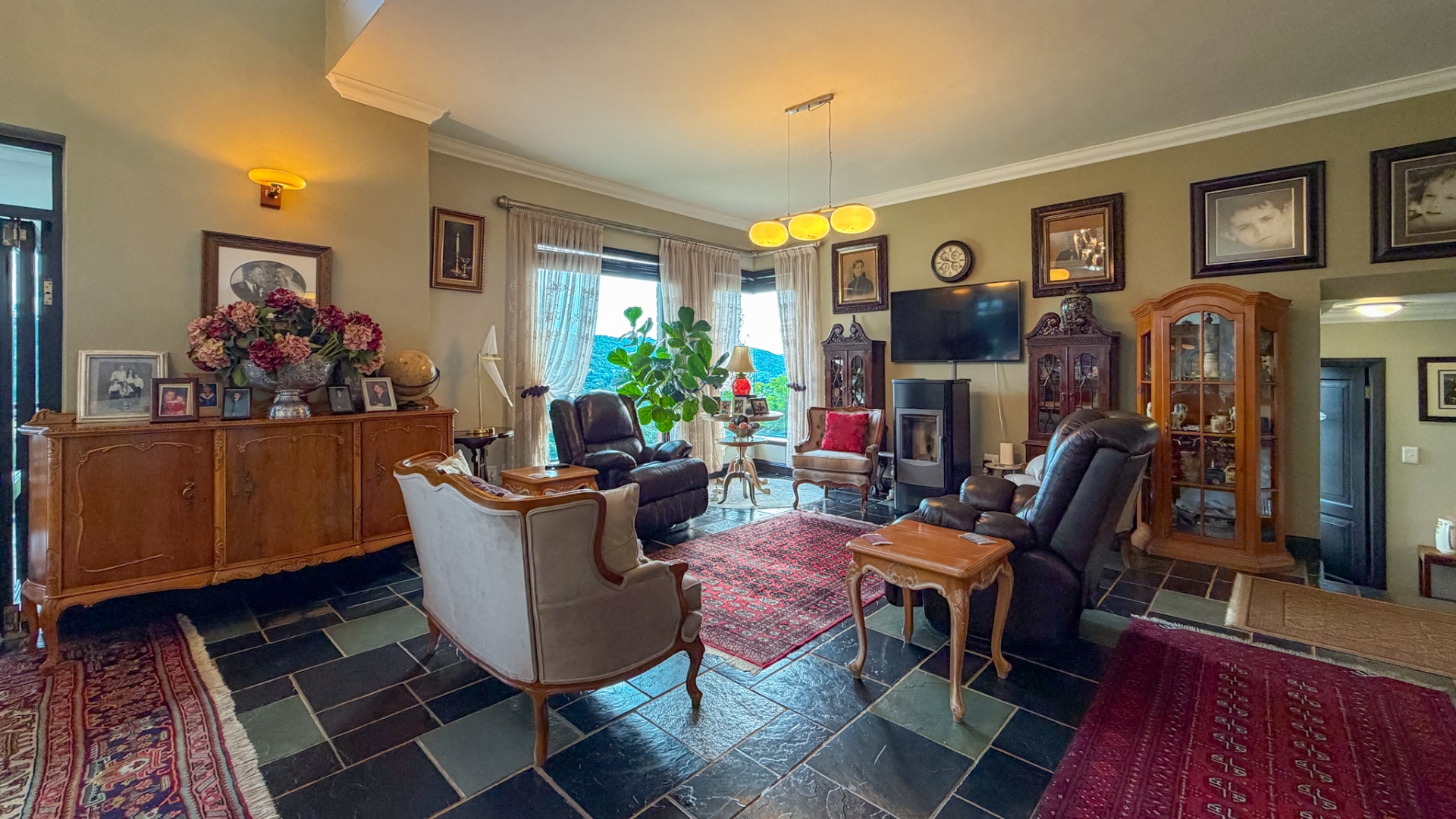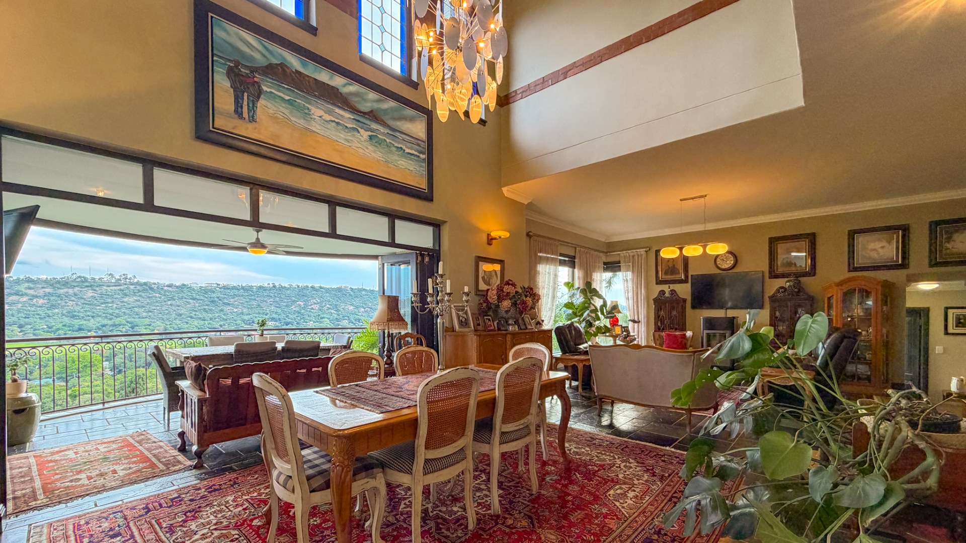 Upon entering, expansive double-volume spaces, natural light, and dramatic views immediately set the tone. The formal lounge—ideal as an executive home office—features its own private entrance, while the open-plan living areas flow seamlessly between the lounge, dining room, and an enclosed entertainment patio. Two feature fireplaces (pellet and gas) create a warm