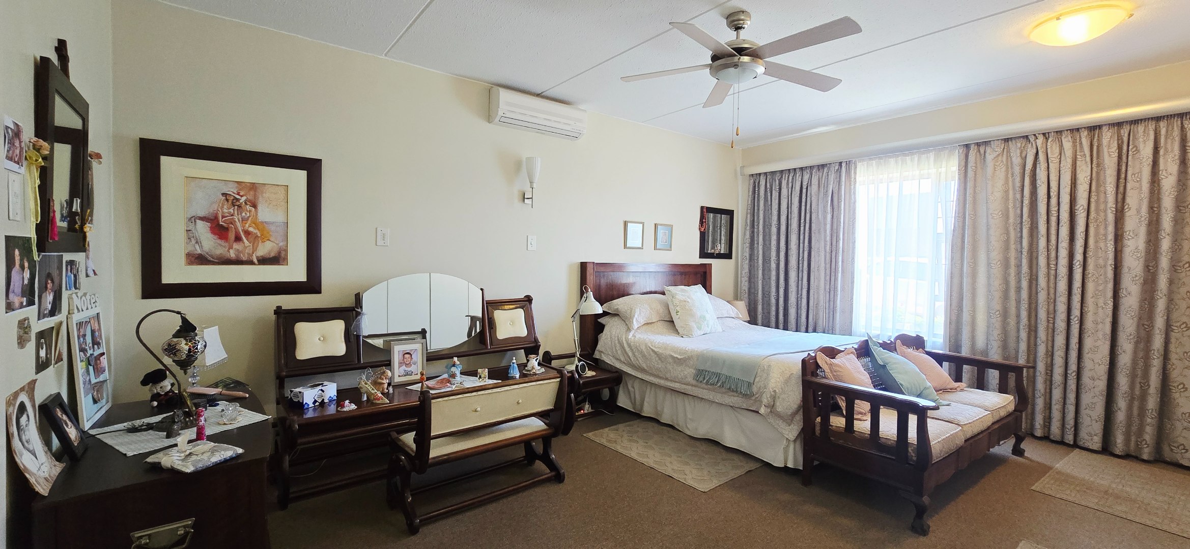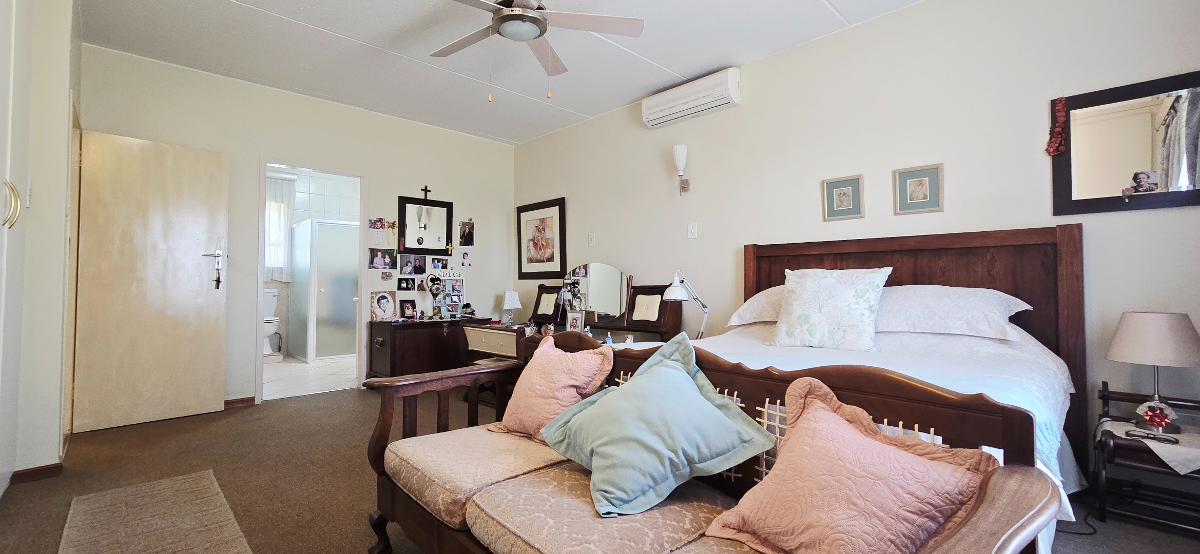 The main bedroom, fit with air-conditioning, has enough space for a king sized bed and extra furniture. The en-suite bathroom has a shower.
