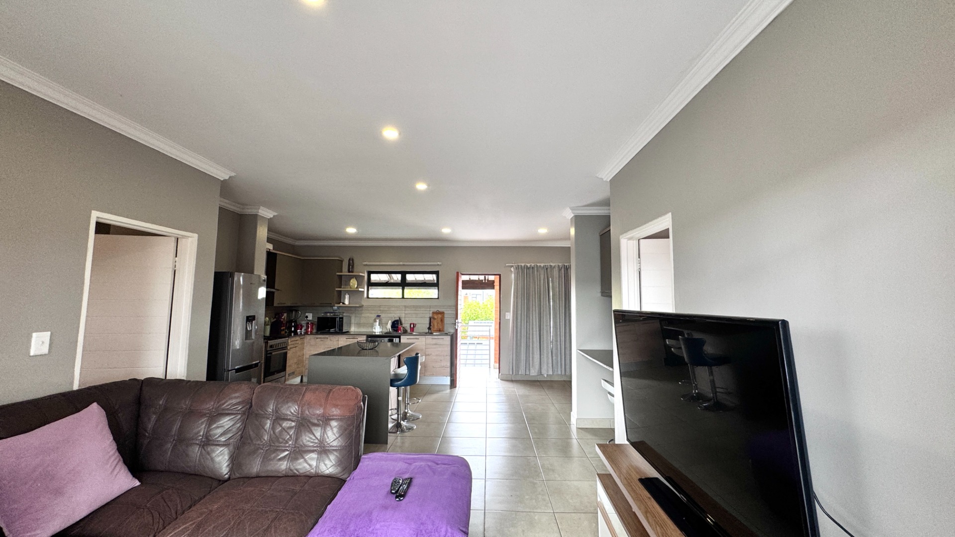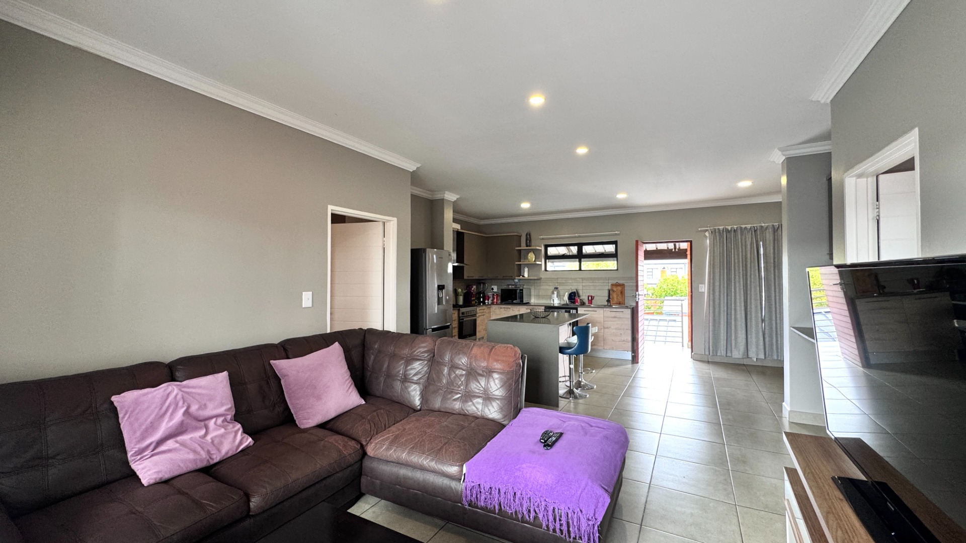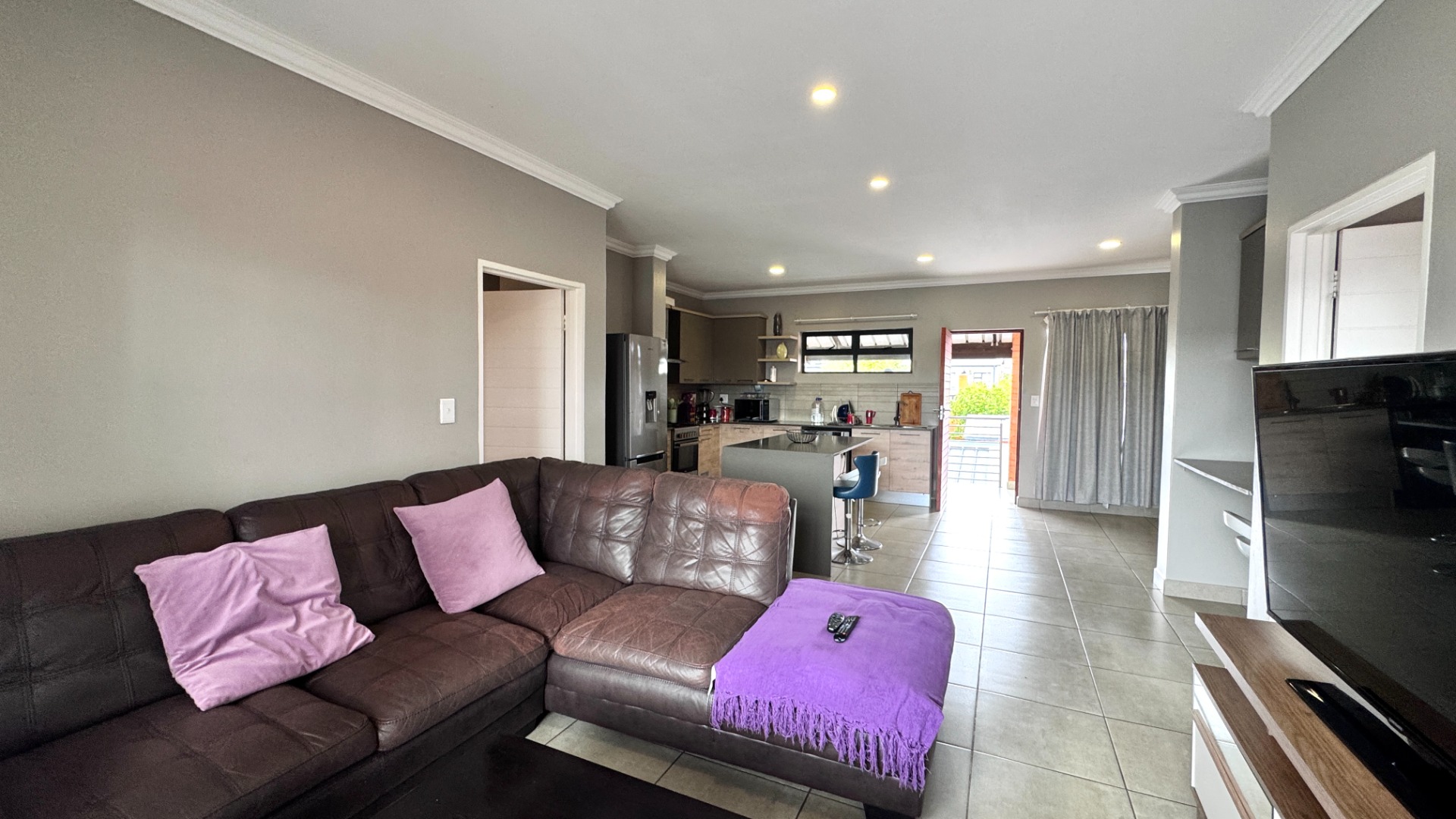 - Open-plan living with lounge, dining, and family TV room