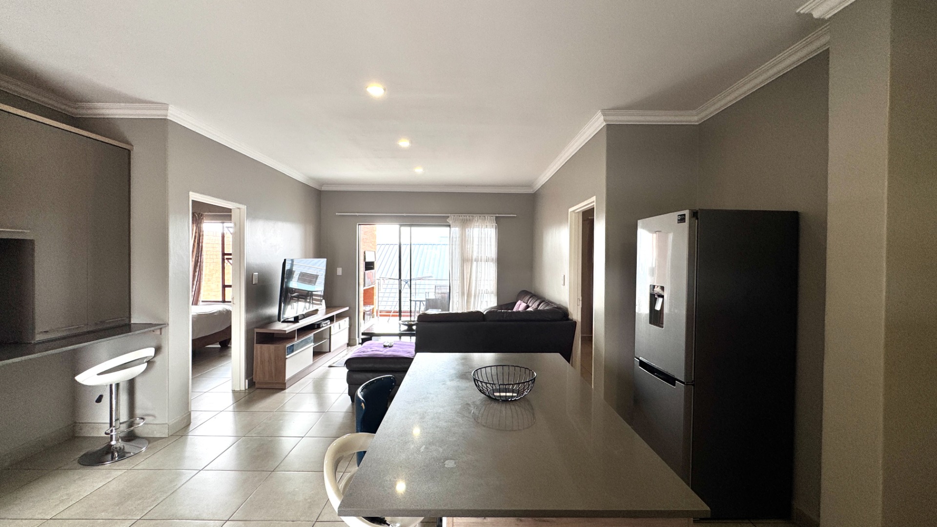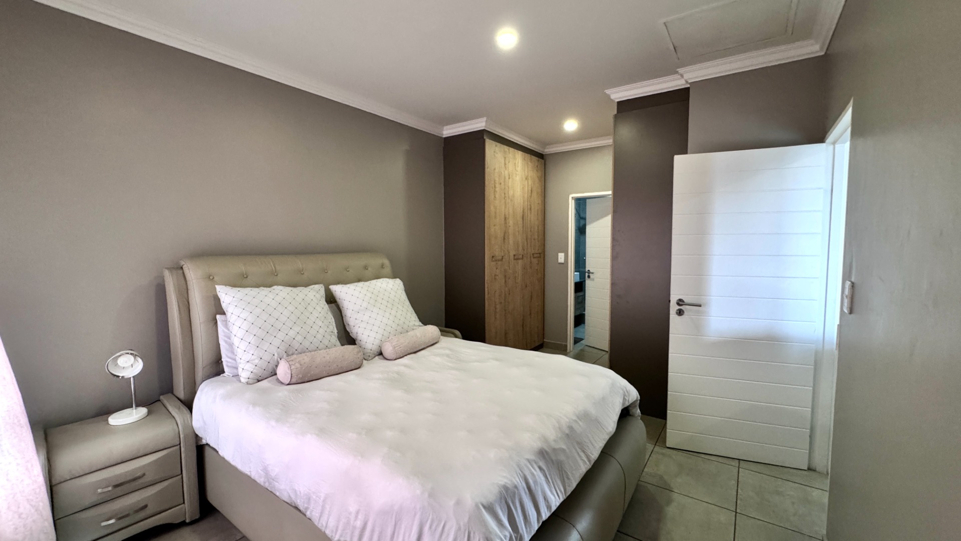 The property features two comfortable bedrooms, each benefiting from its own en-suite bathroom, providing privacy and convenience. Outside, a private balcony and patio offer ideal spots for relaxation or entertaining, complete with a built-in braai.