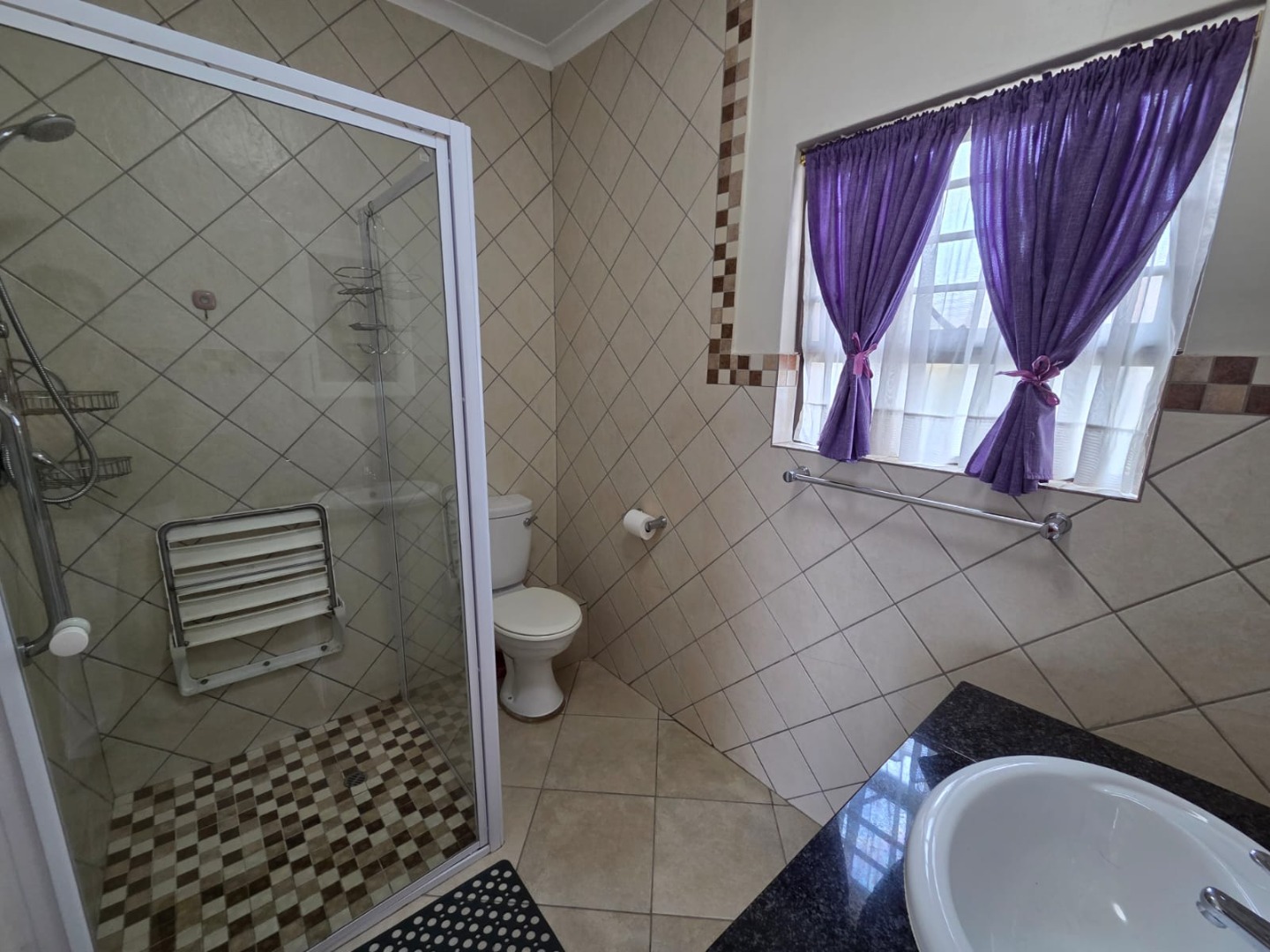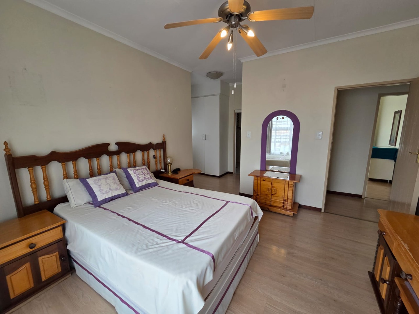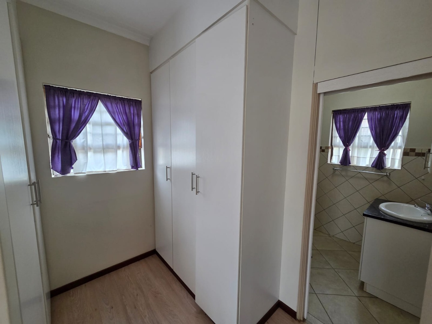 - The main bedroom is north-facing, spacious, and fitted with laminate floors, built-in cupboards, and an en-suite bathroom.