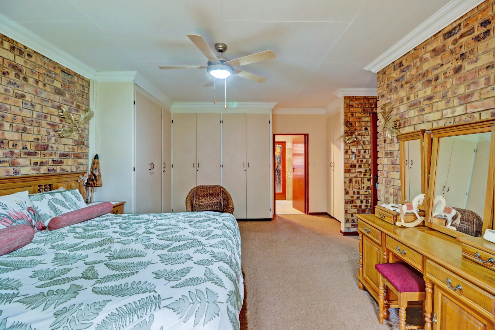 Accommodation comprises four comfortable bedrooms, ensuring privacy and space for every family member. With two bathrooms, including two convenient ensuites, and an additional guest toilet, the home is designed for ultimate convenience. Practical amenities extend to staff quarters and outside toilet, enhancing the functionality of this family residence.
