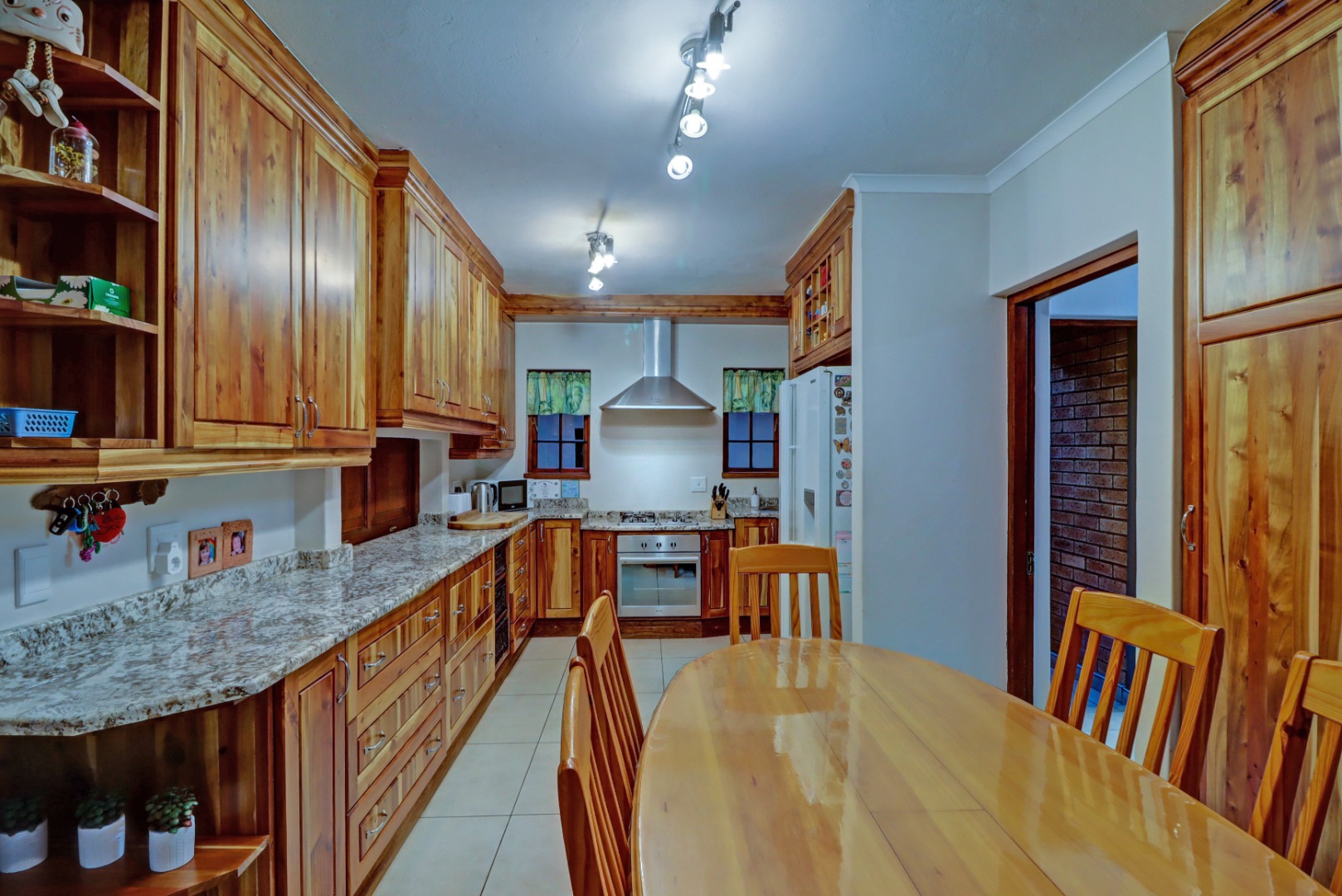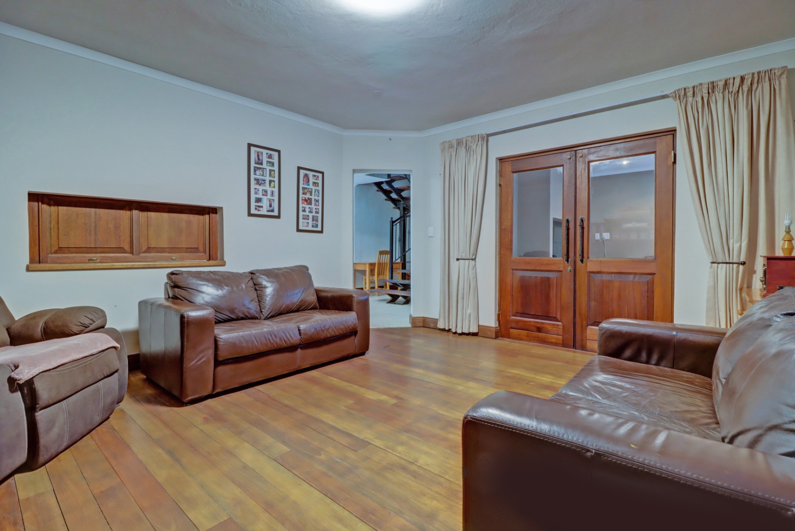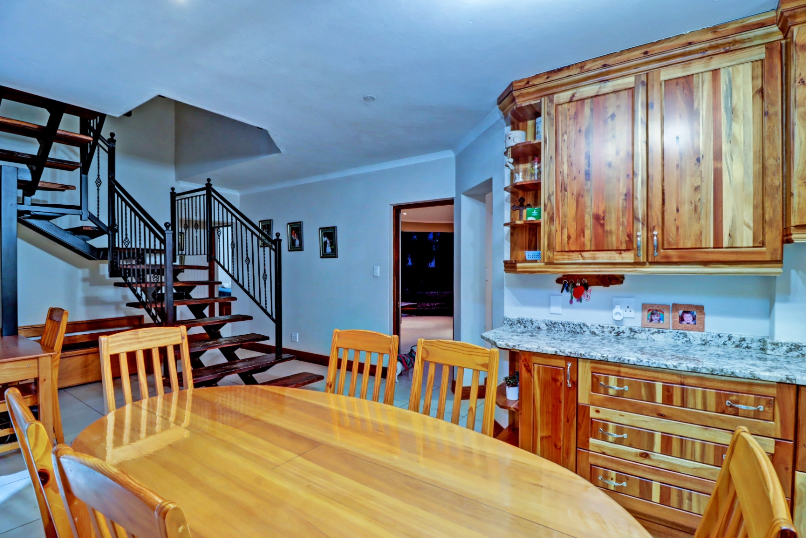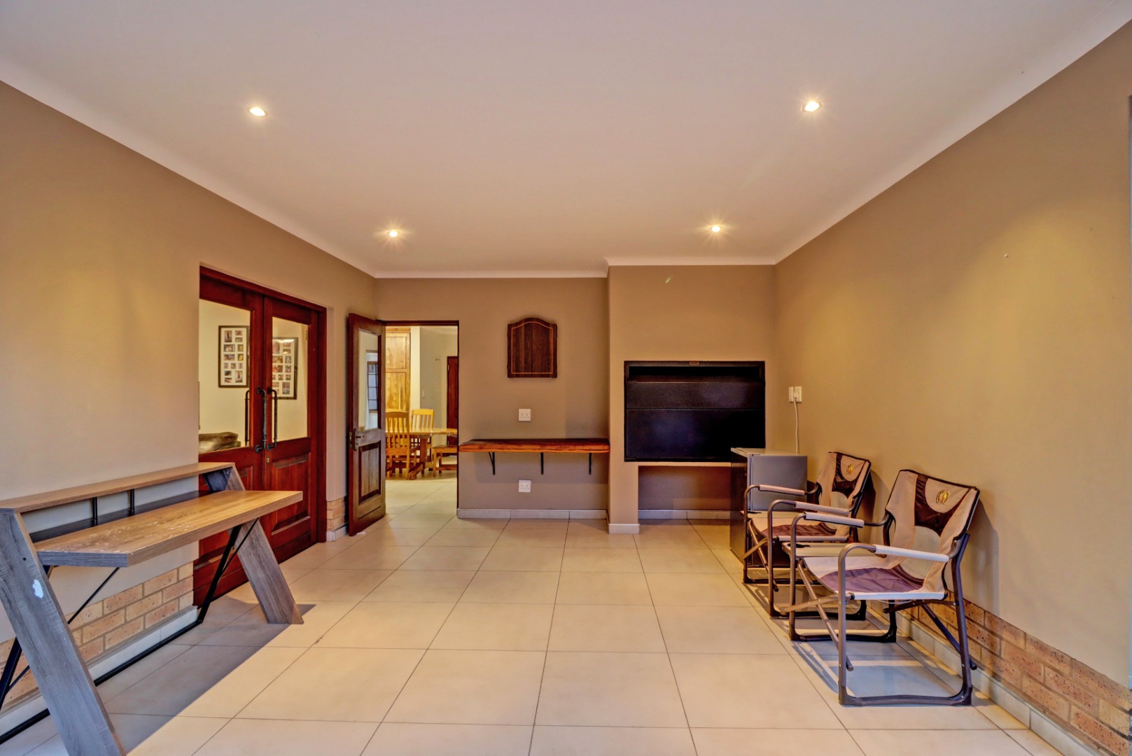 Outdoor living is equally appealing, with a private garden and paved areas offering low-maintenance enjoyment. The property boasts a charming patio and a balcony, providing versatile spaces for relaxation and outdoor dining. A built-in braai enhances the entertainment possibilities, while the three garages offer secure parking and additional storage. Pets are welcome, making this a true family home.