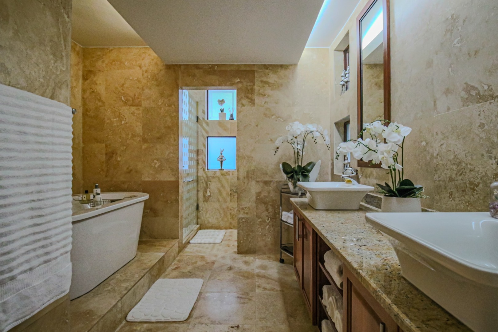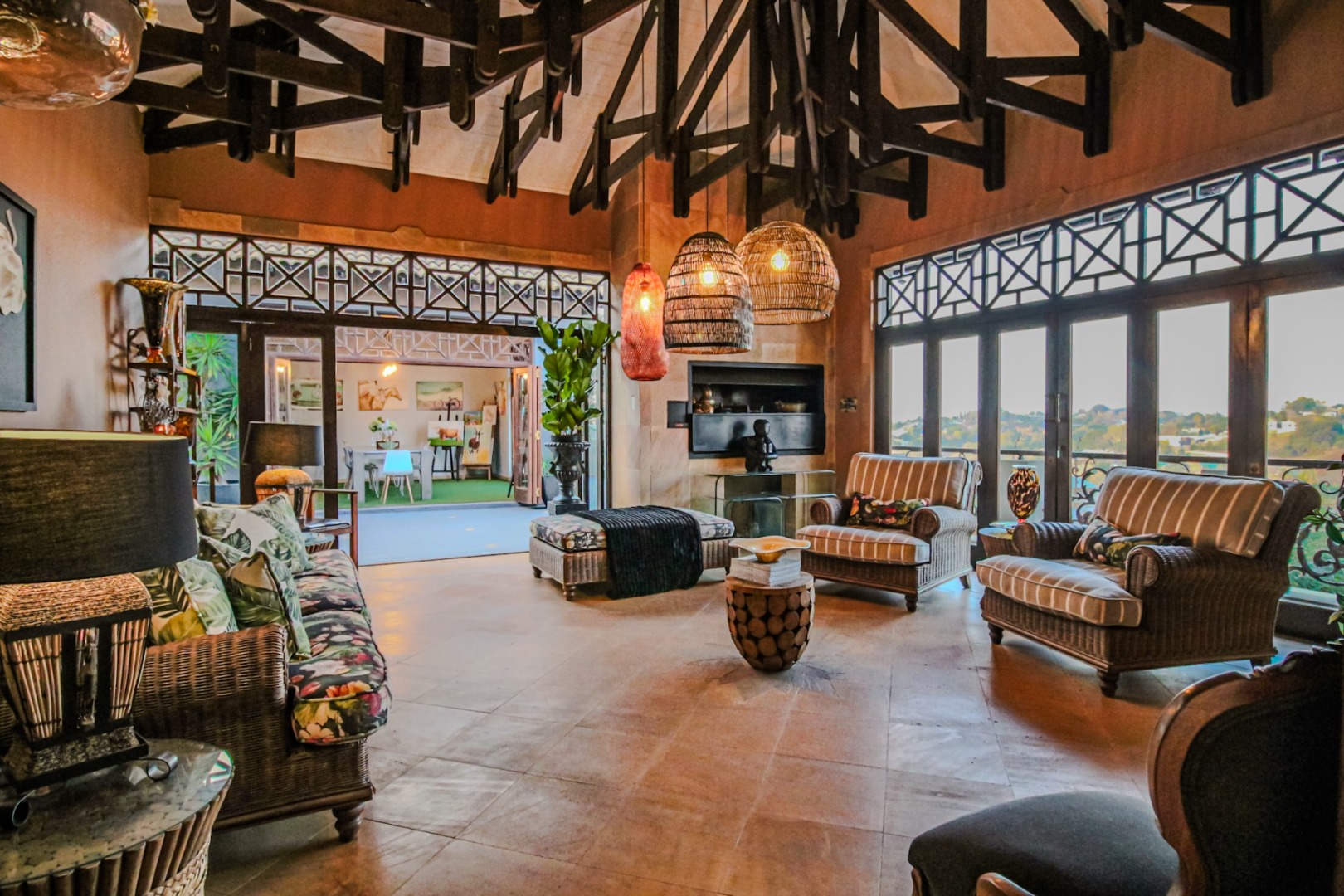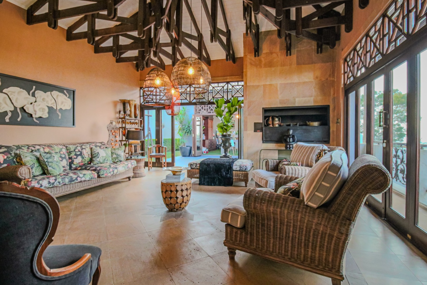 On the upper level, there are four en suite bedrooms, including the luxurious master suite, which opens onto a private garden with a gazebo.