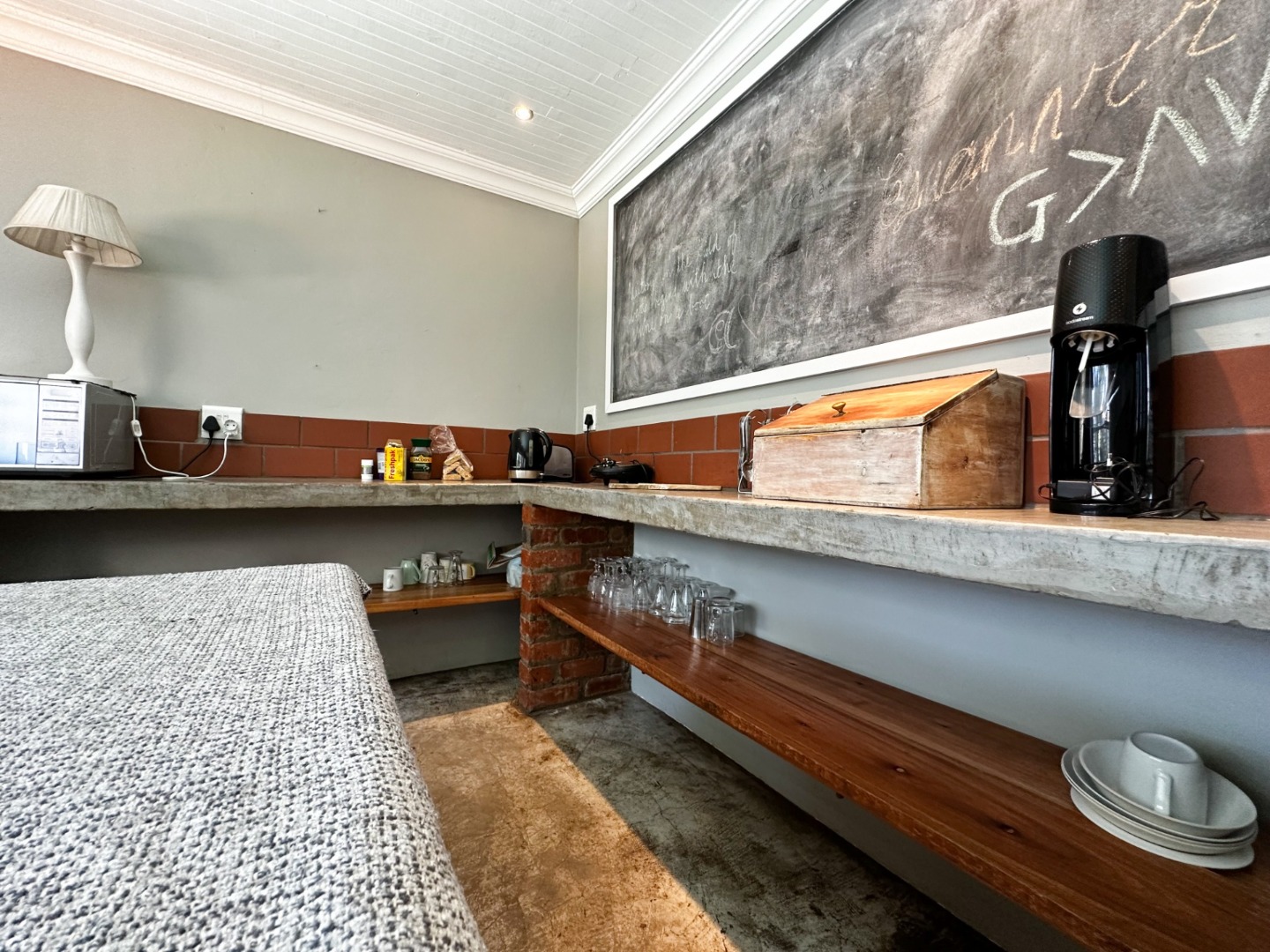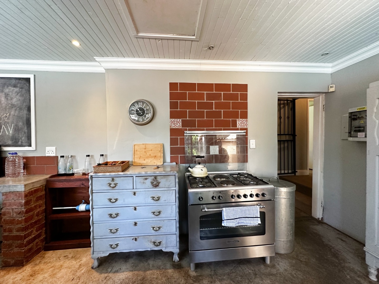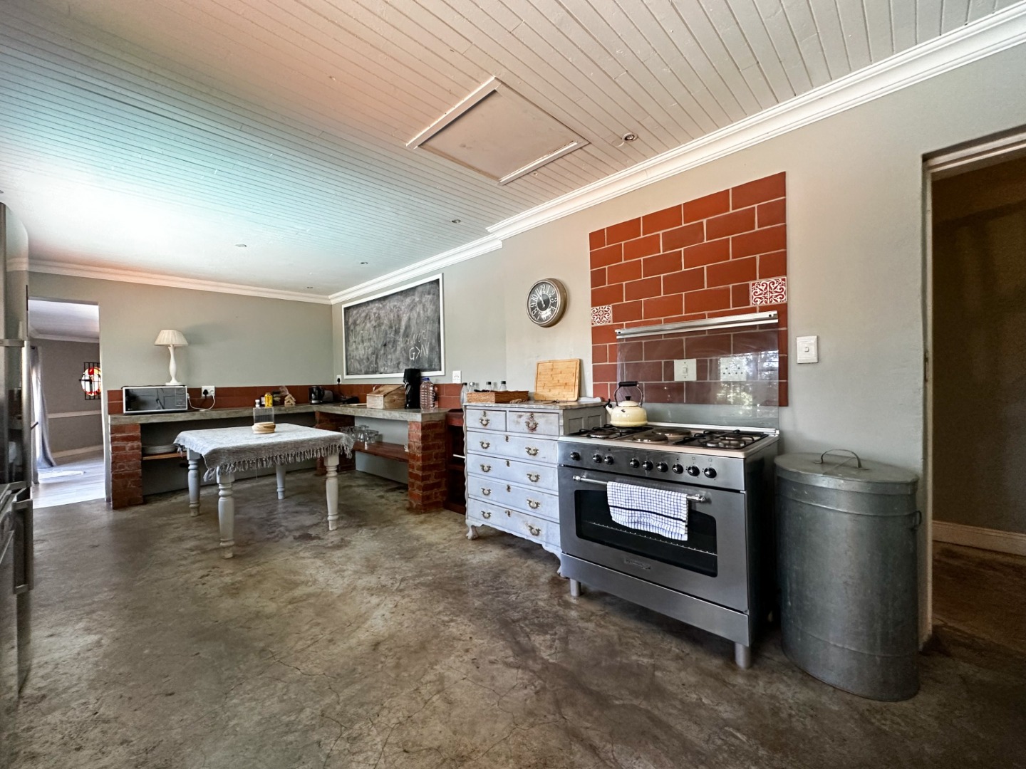 Any home cooks’ dreams will become a reality in the large farm style kitchen with rustic concrete shelving and magnificent gas stove.