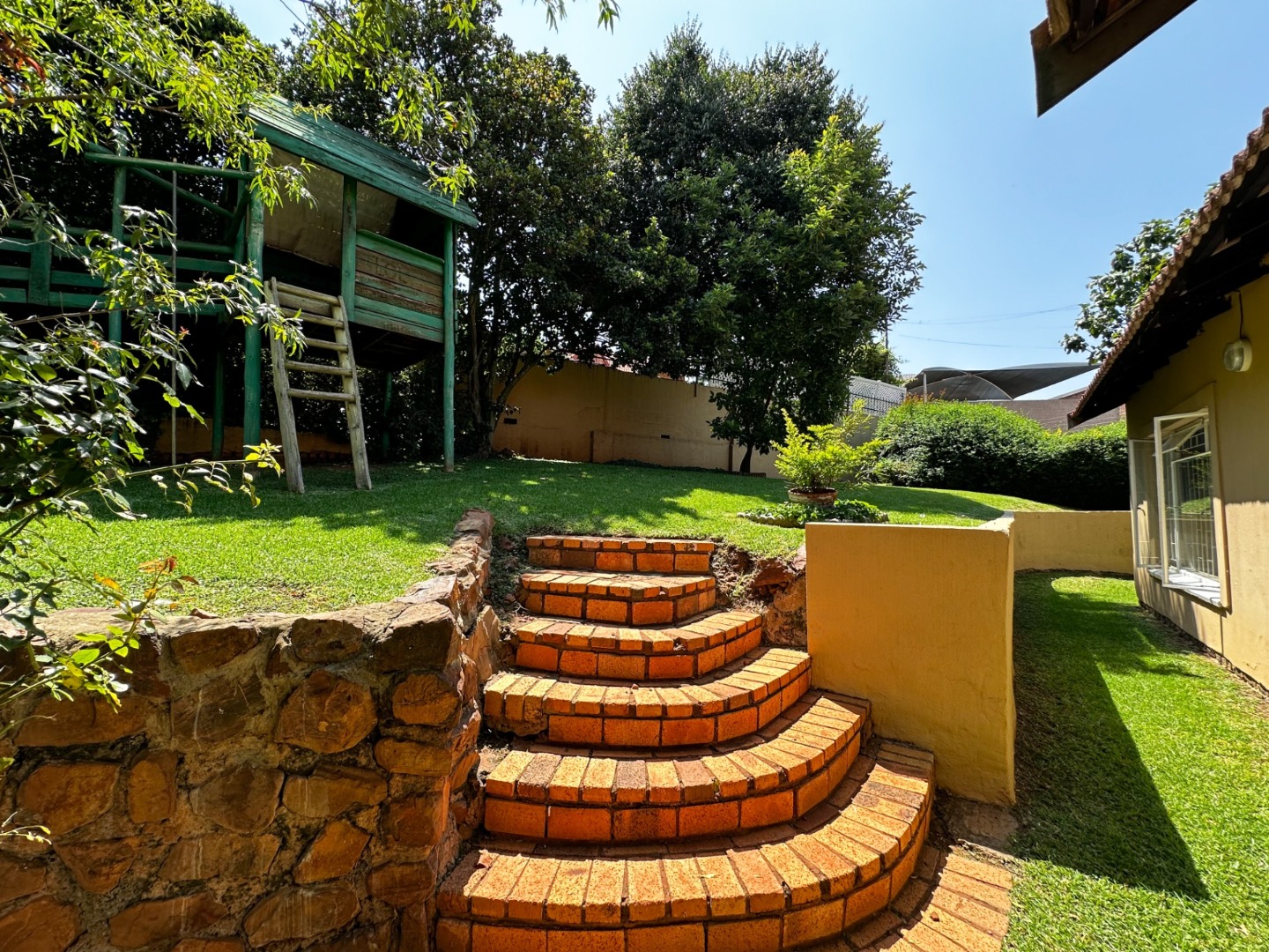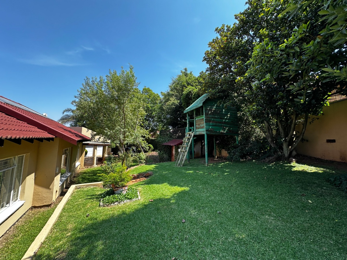 The front garden is a child’s dream with a magical treehouse and plenty of space to run around in.