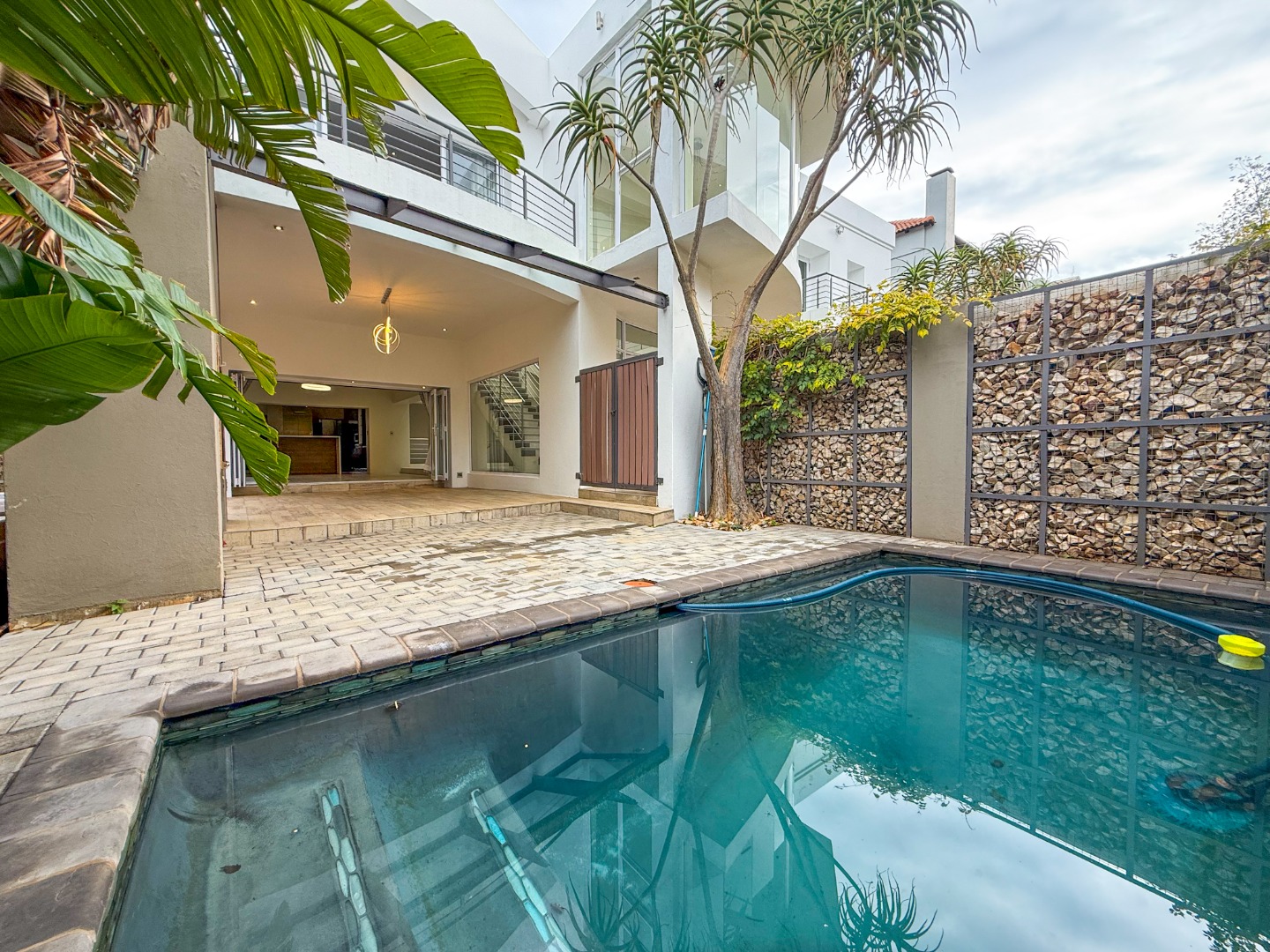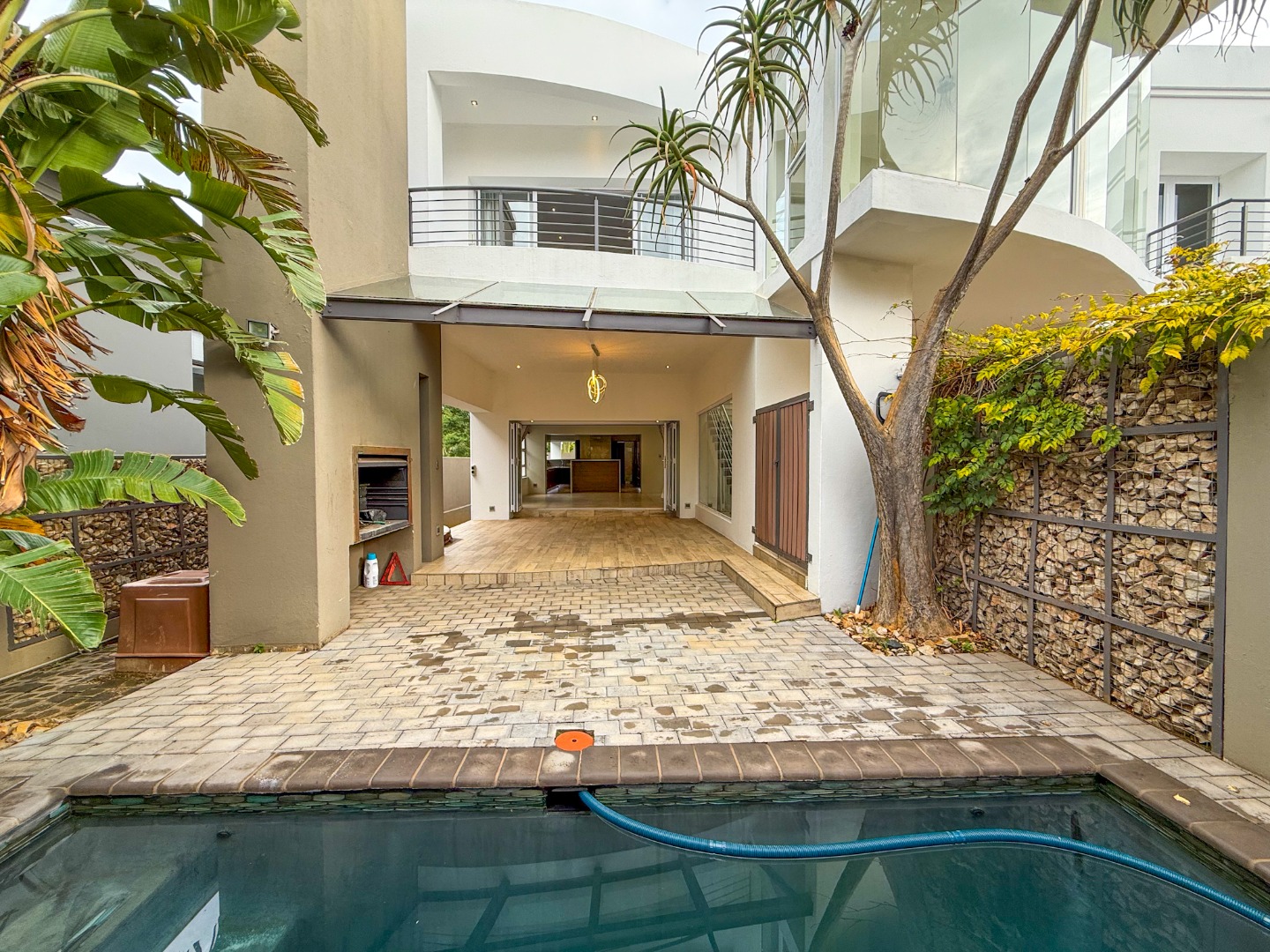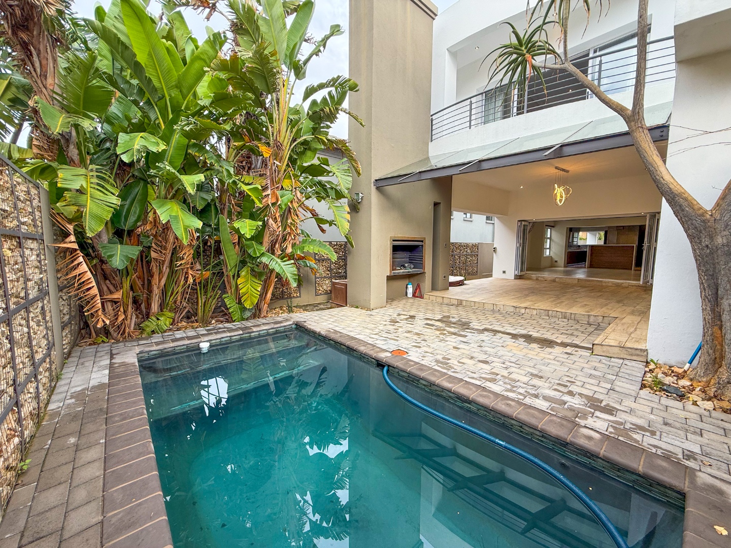 The home truly shines when it comes to entertainment. The outdoor area features a sparkling swimming pool, built-in braai area, and a luxurious jacuzzi, all positioned together to create the perfect space for relaxing afternoons or hosting guests.