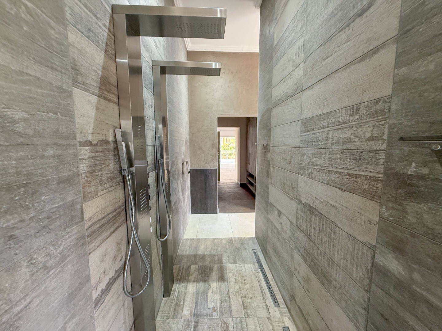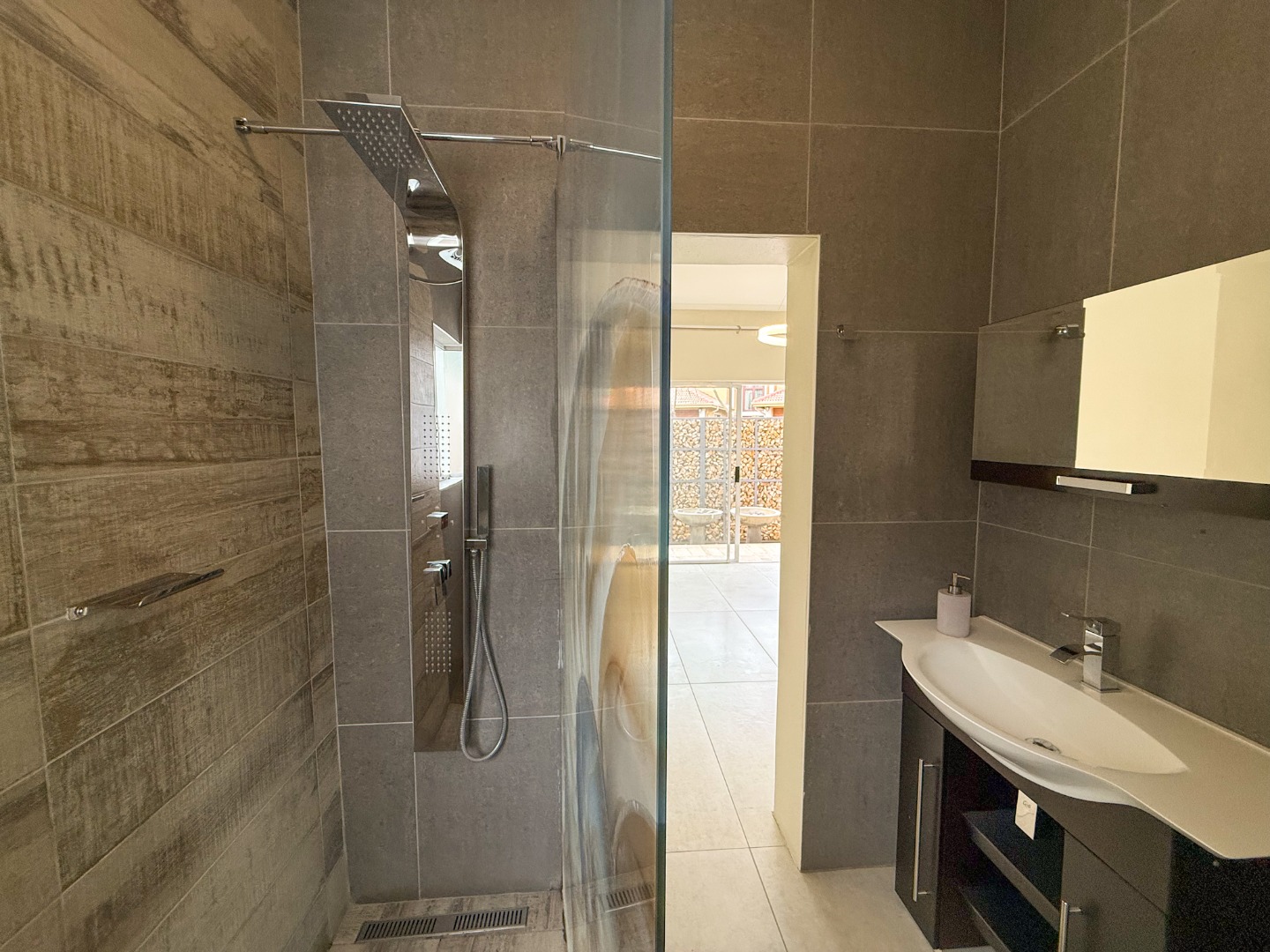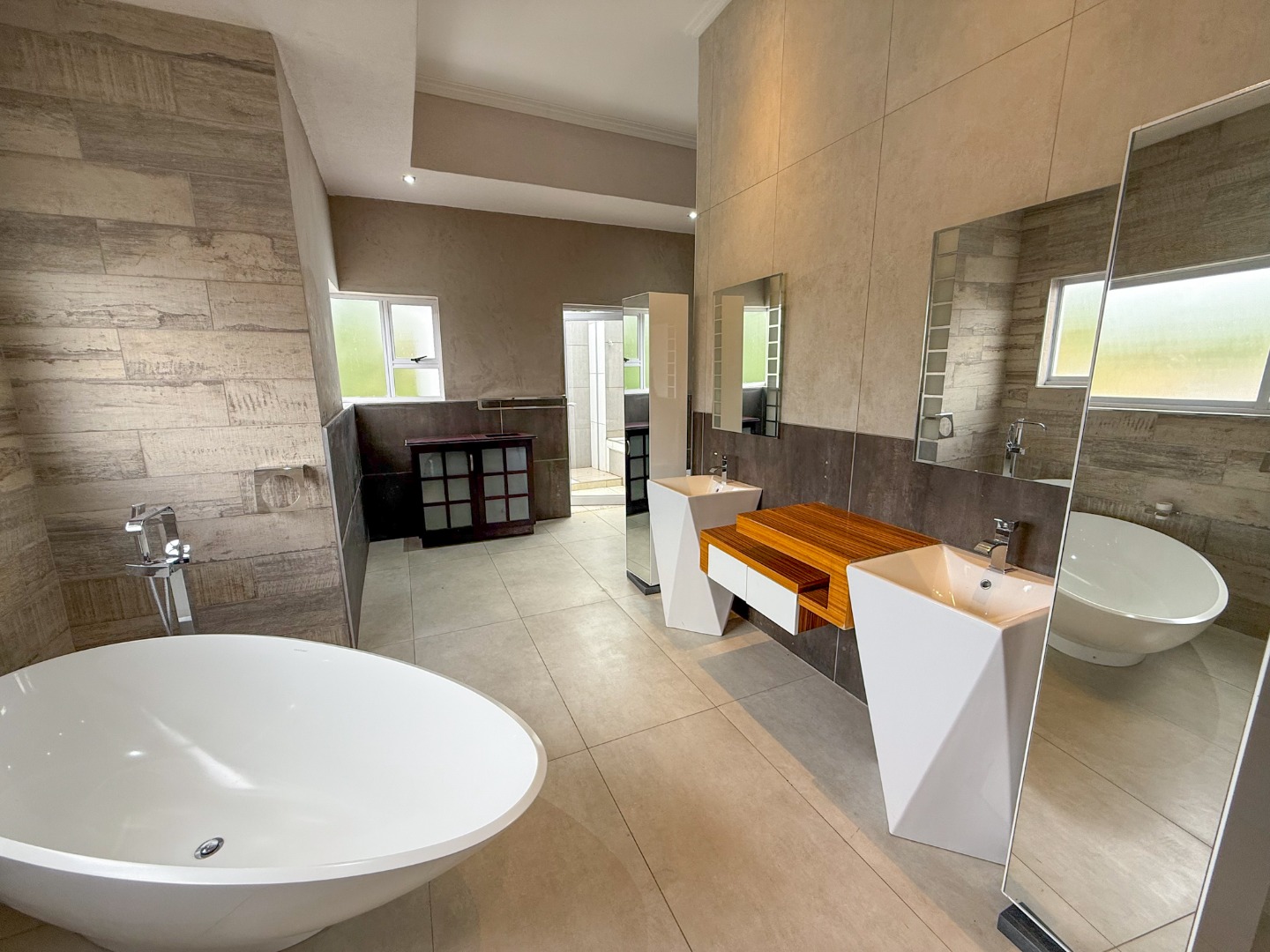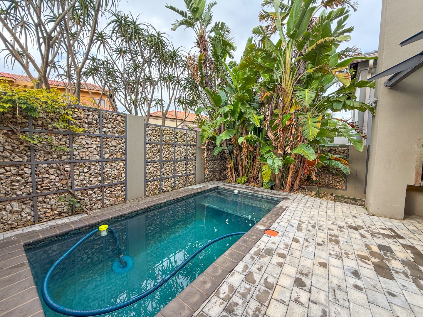 The home truly shines when it comes to entertainment. The outdoor area features a sparkling swimming pool, built-in braai area, and a luxurious jacuzzi, all positioned together to create the perfect space for relaxing afternoons or hosting guests.