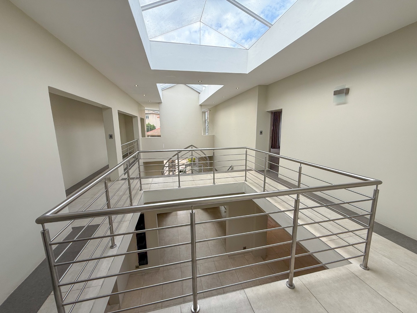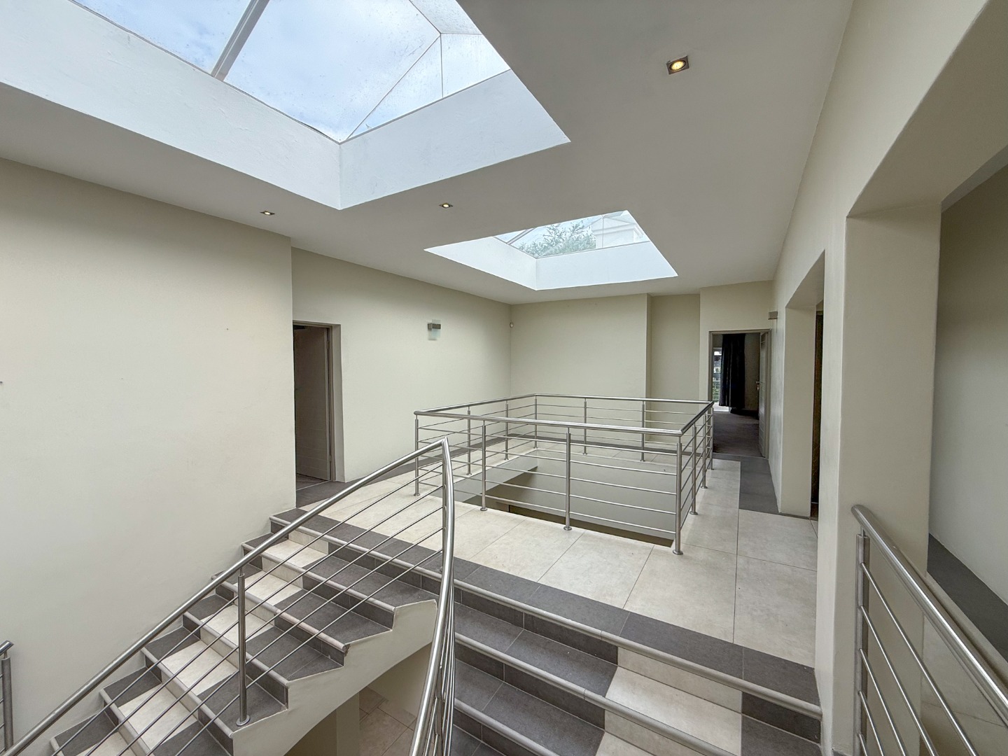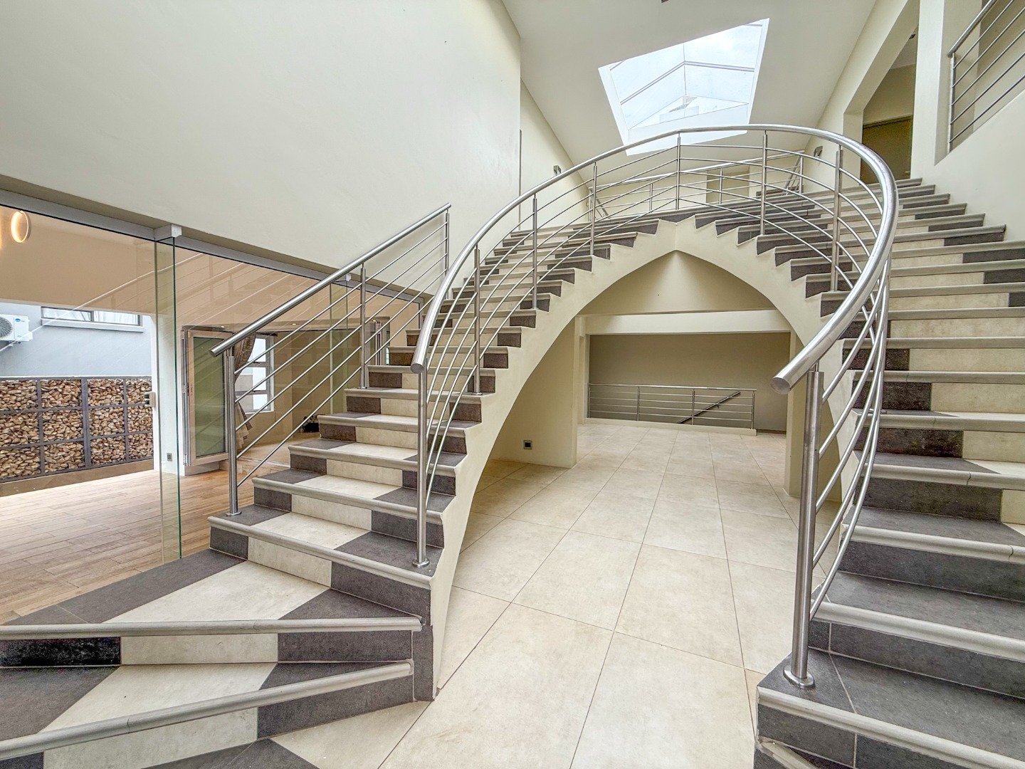 As you enter the home, you are welcomed by a striking staircase that leads to the upper level, where four spacious bedrooms are situated. The thoughtful layout creates a sense of privacy, while a fifth bedroom on the ground floor is perfectly positioned for guests or extended family.