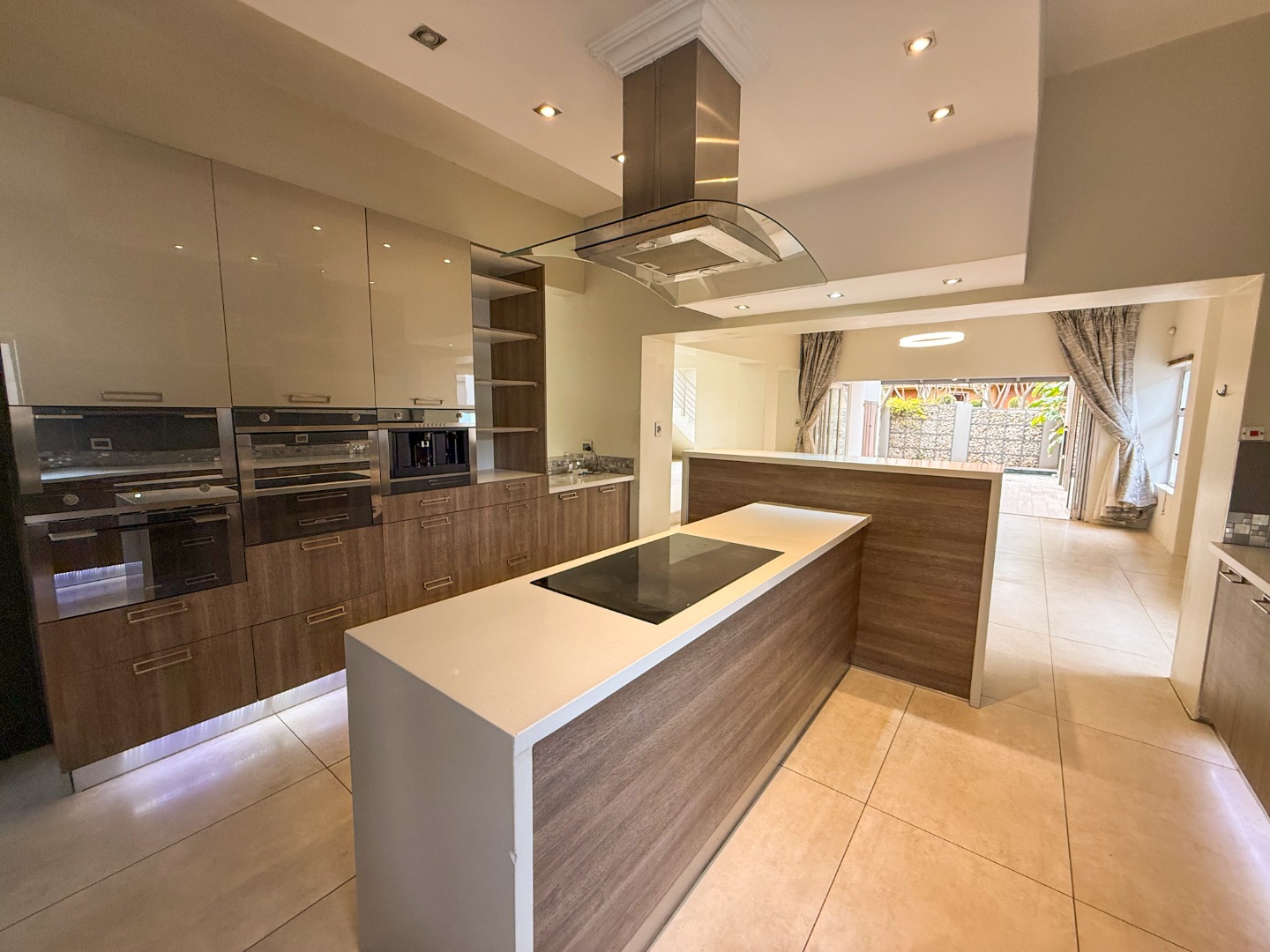 The heart of the home is the expansive open-plan kitchen and living area, designed to create a seamless flow throughout the main living spaces. The contemporary kitchen is fitted with premium Smeg appliances, offering both elegance and functionality for everyday living and entertaining.