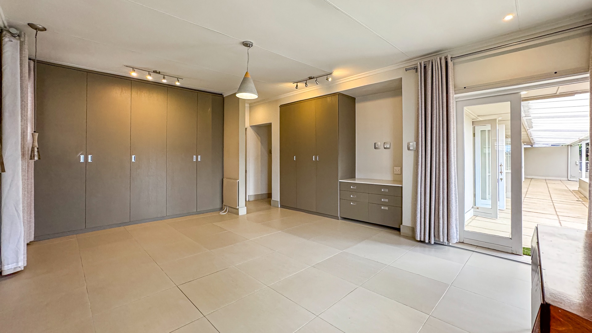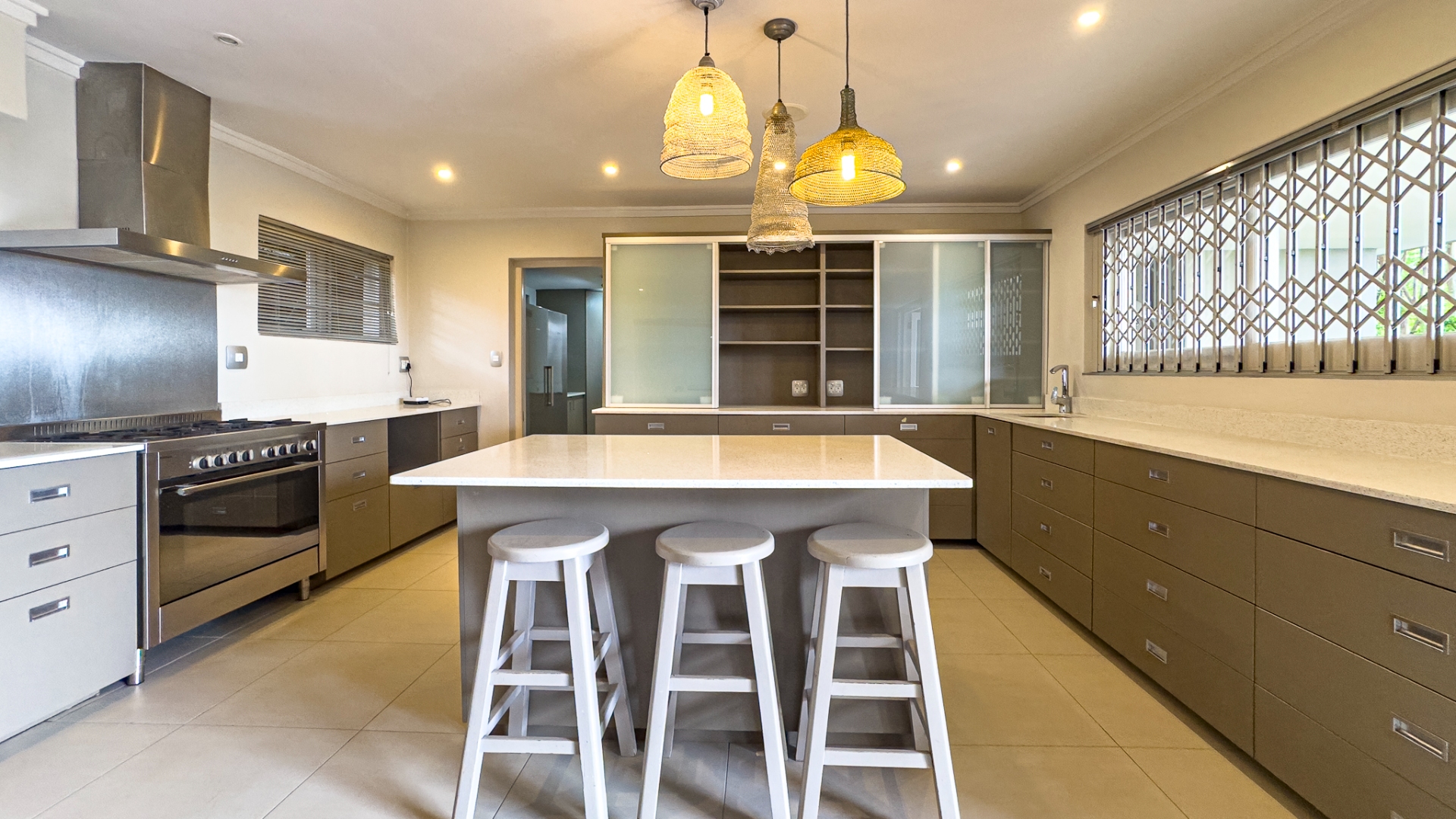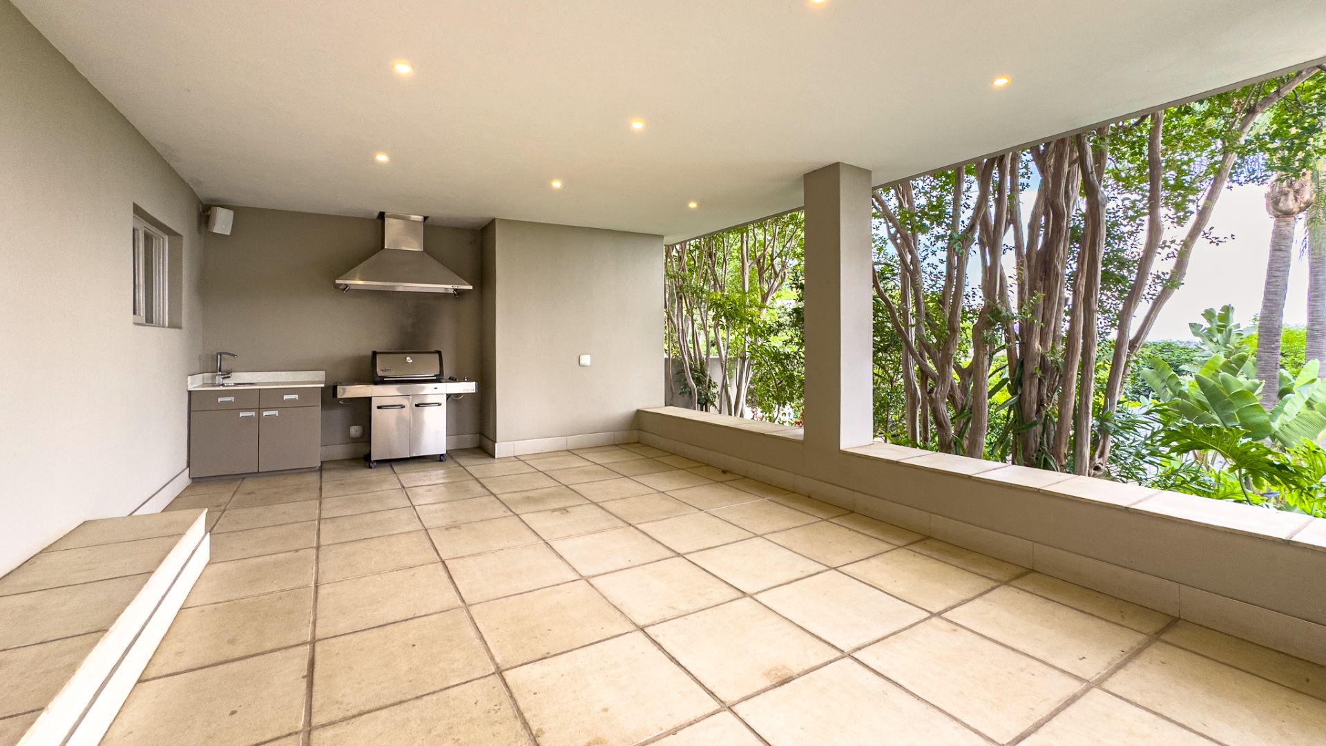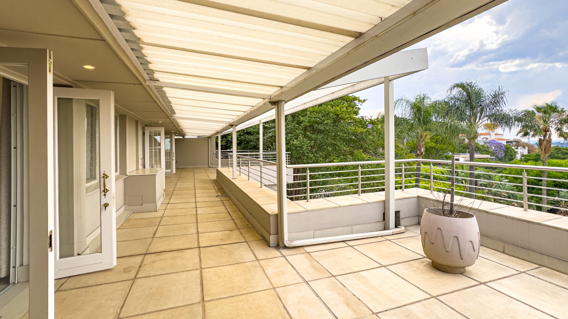 Upon entering, you are welcomed by a grand double-volume entrance hall, leading into a series of spacious open-plan living areas — including a formal lounge, TV lounge, dining room, and an additional dining space adjacent to the kitchen. These beautifully interconnected spaces flow seamlessly onto an expansive entertainment terrace with a built-in braai, all overlooking the city centre of Pretoria.