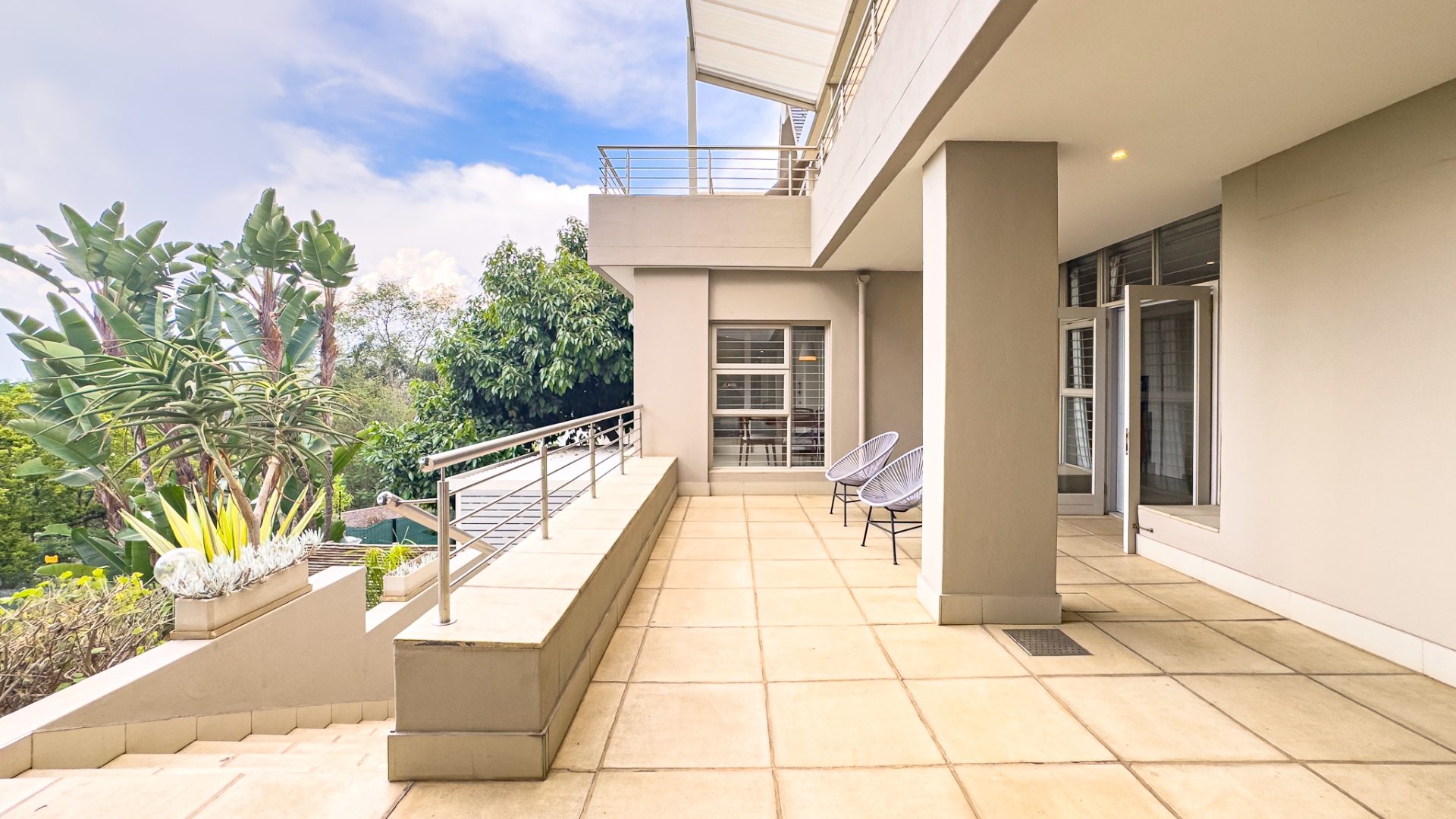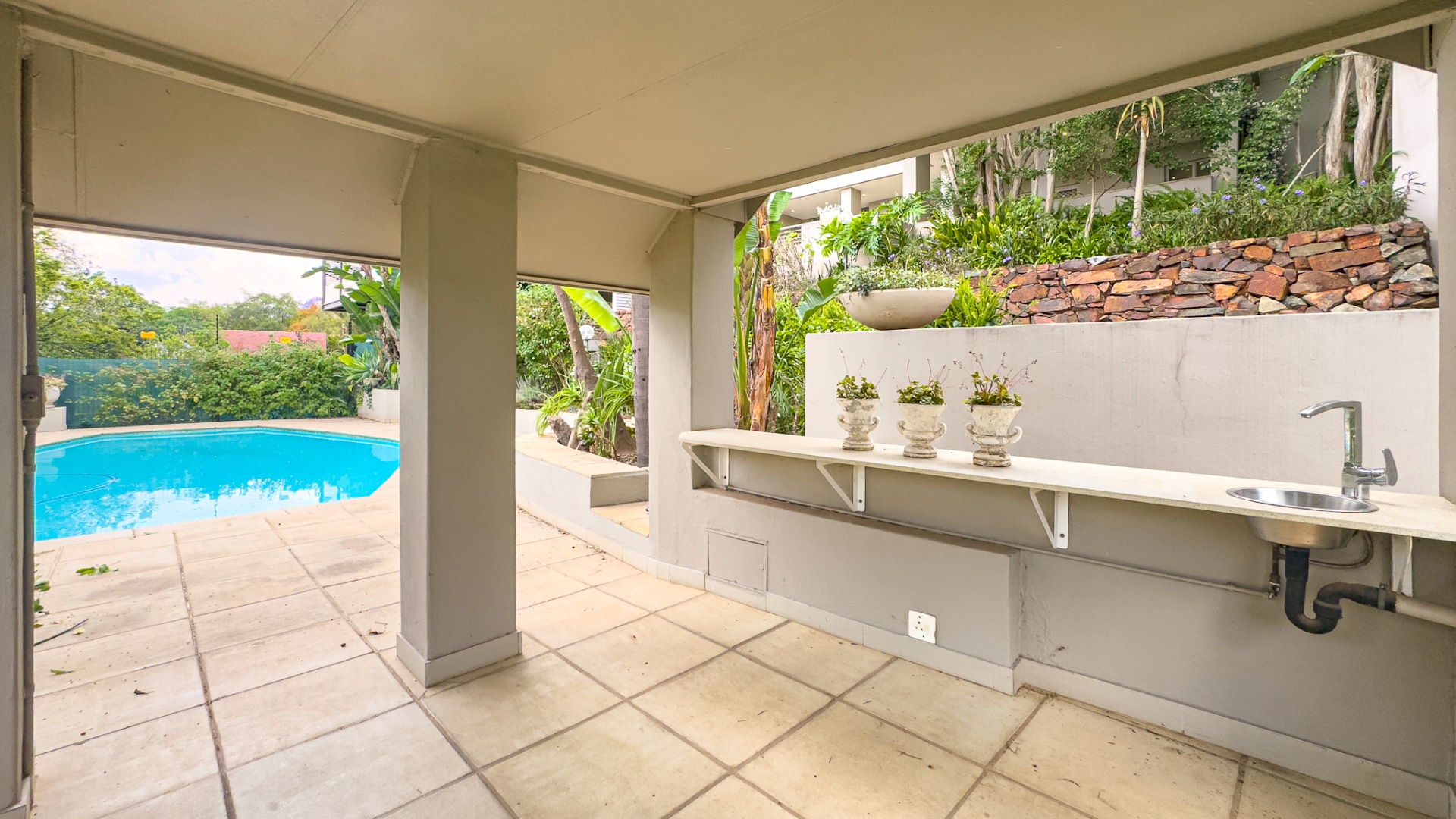 On the lower level, with its own private entrance, you’ll find a fully self-contained two-bedroom flatlet — a complete second home featuring two en-suite bedrooms, a modern kitchen, lounge, dining area, storage nook, and a charming covered patio overlooking a private garden. Ideal for extended family, guests, or as an income-generating rental for students attending Tukkies.
