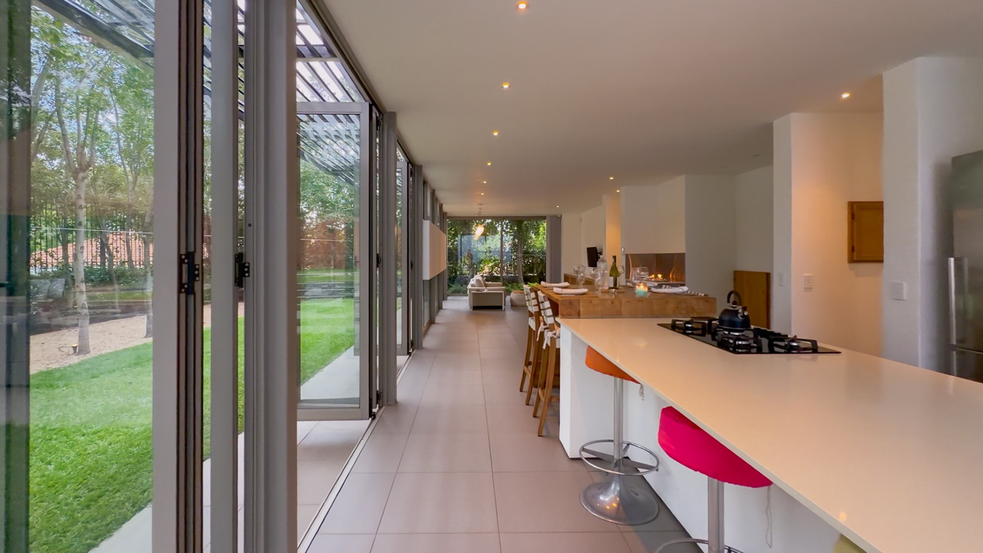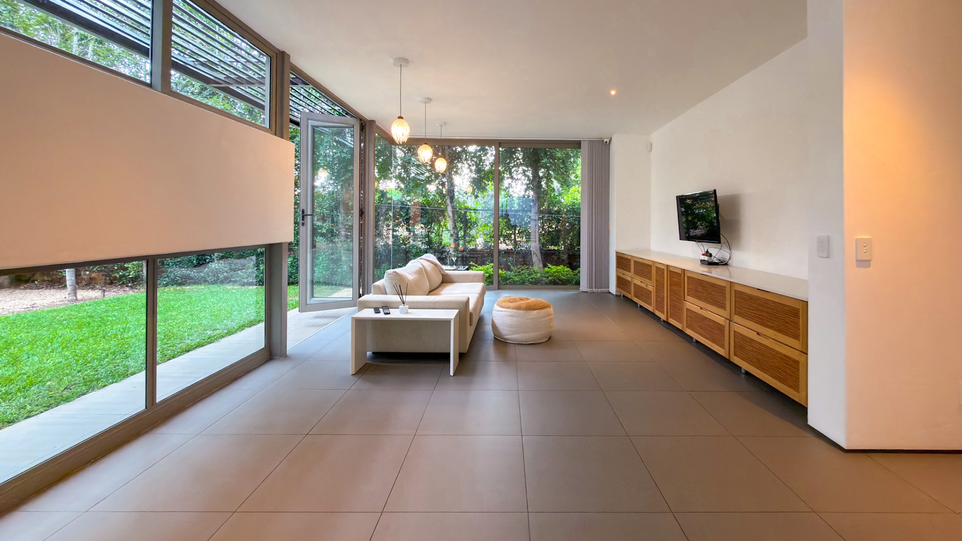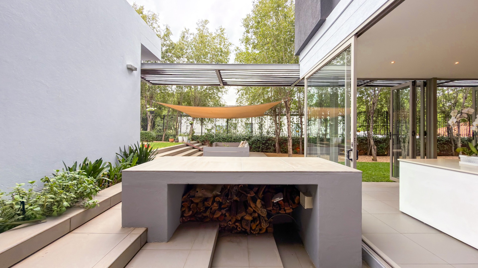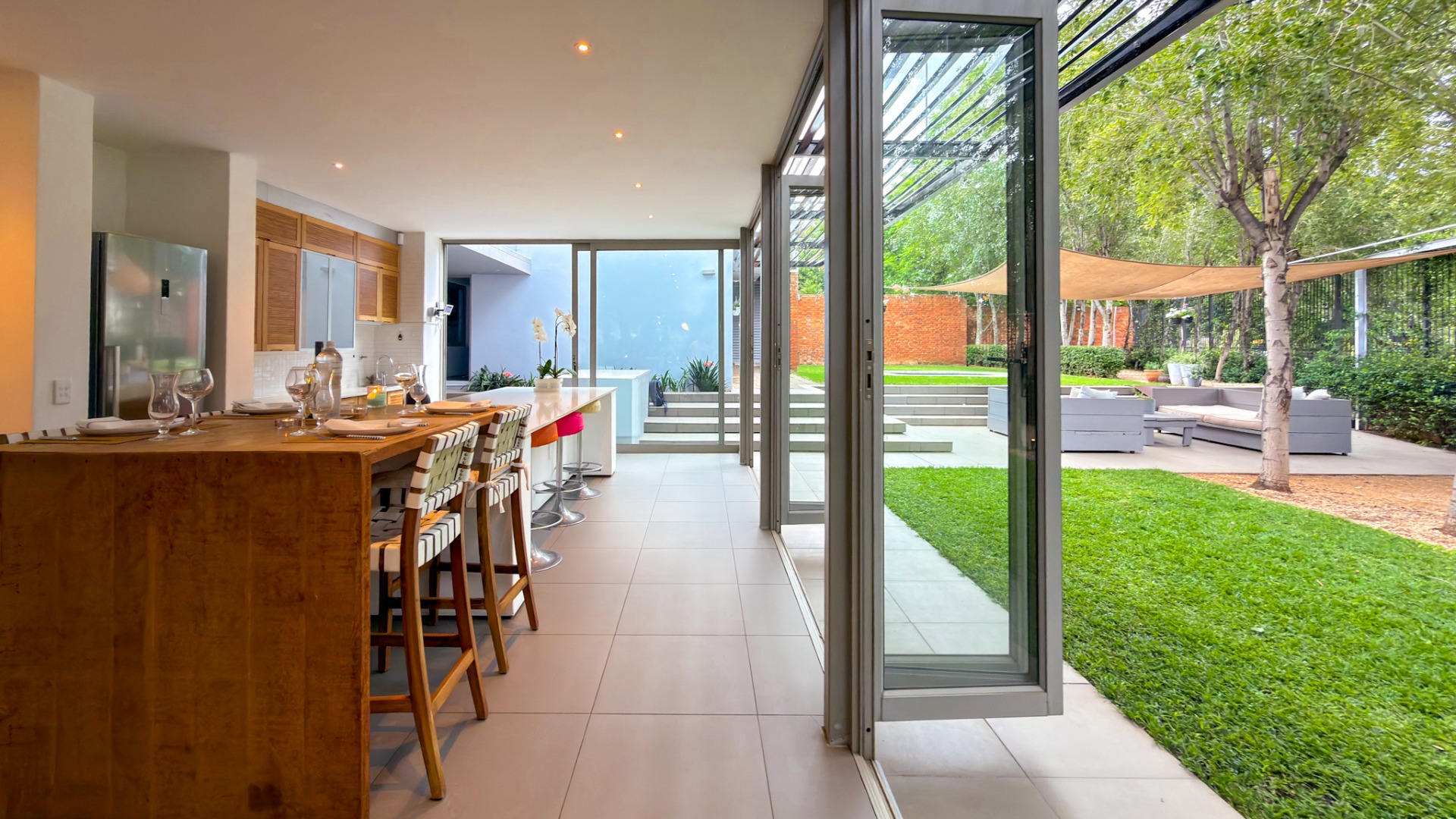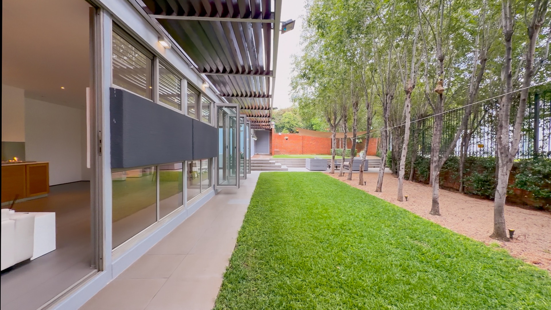 From the street, the home presents an air of complete privacy, offering not only exclusivity but also an added layer of security. Upon entering through the gates, one is immediately struck by the manicured, minimalist garden, a charming splash pool, and the remarkable sense of space that defines the entire first level.