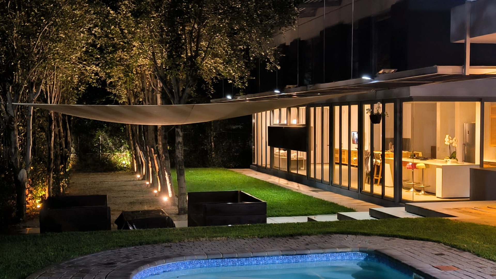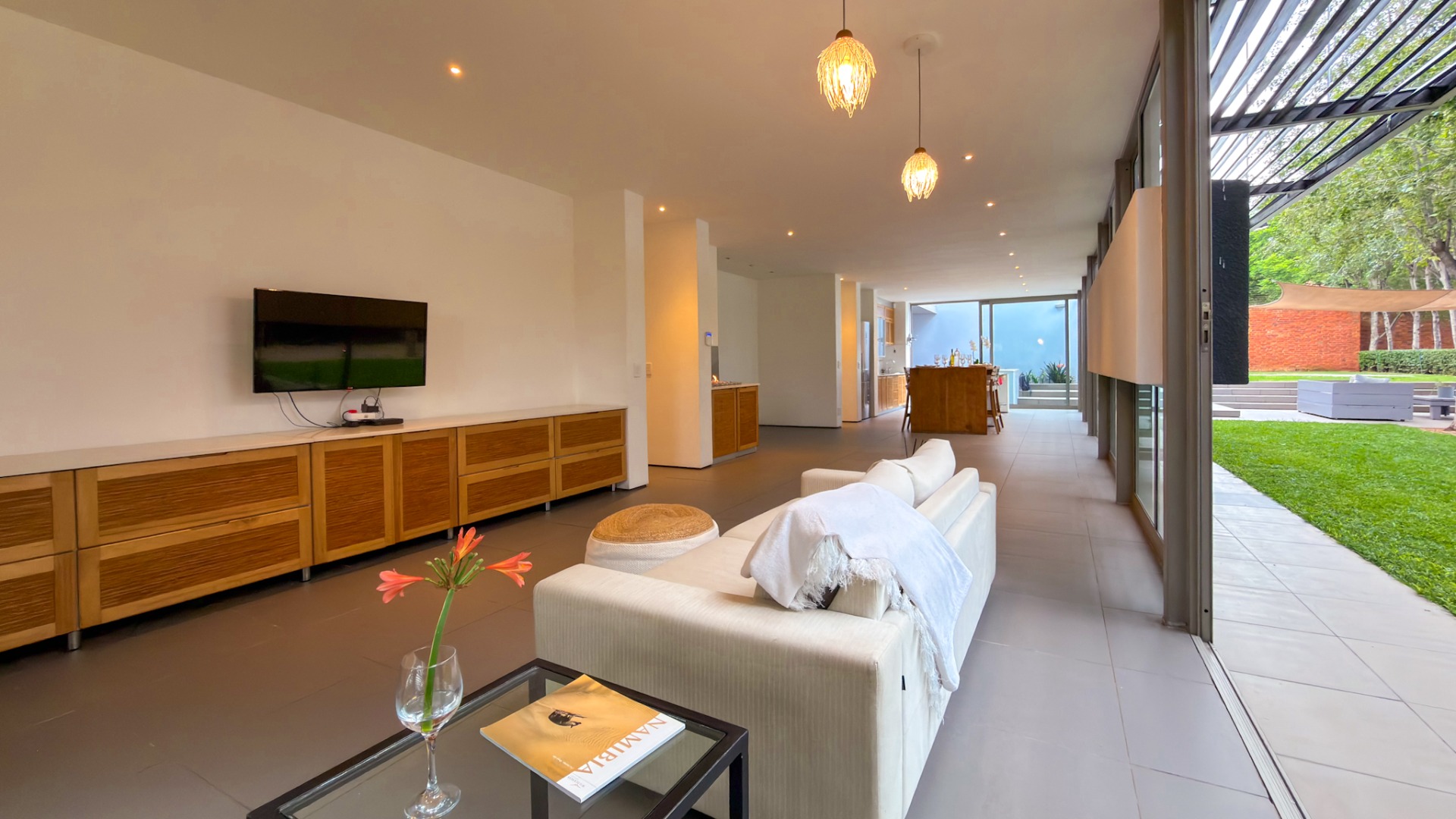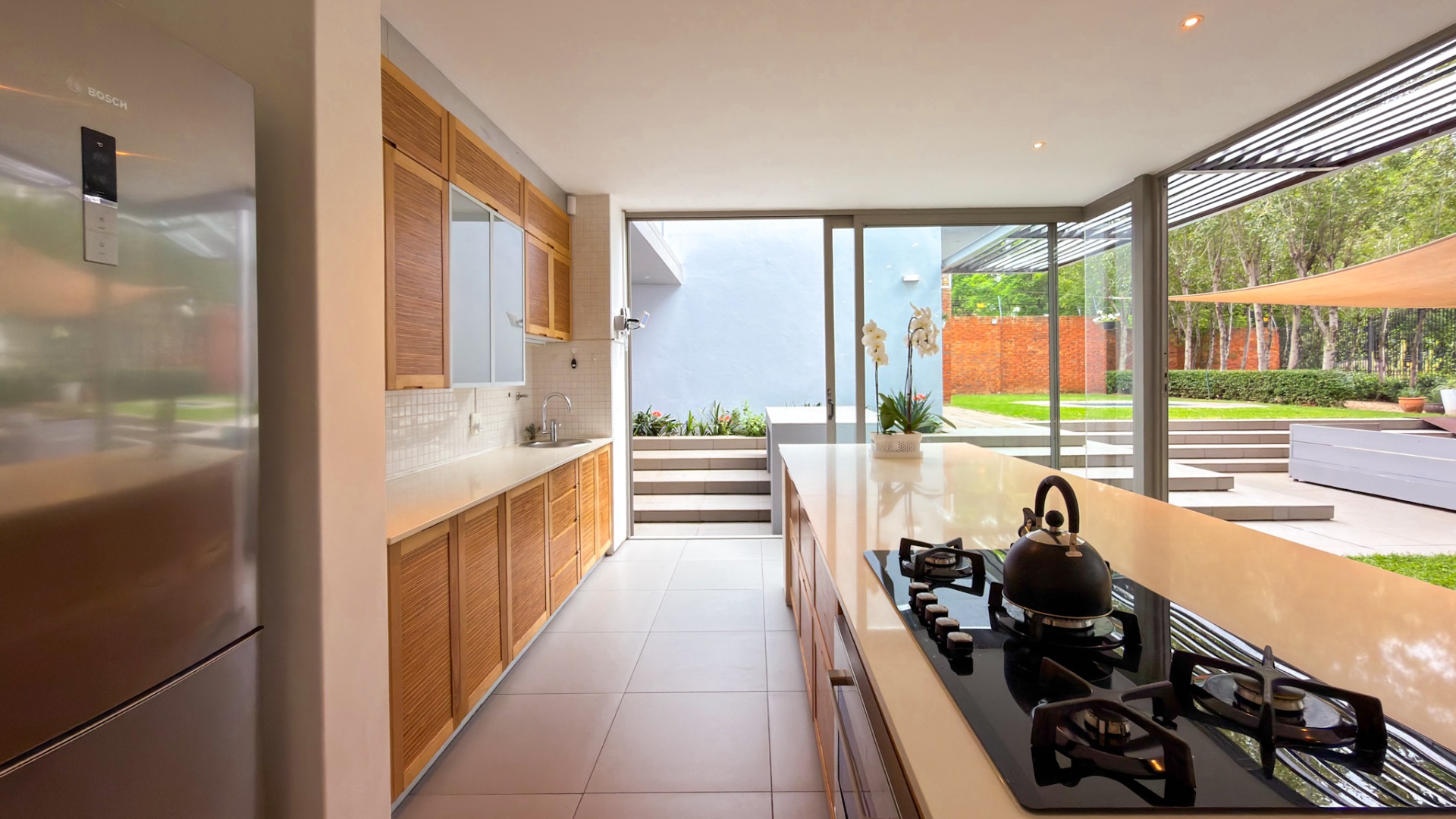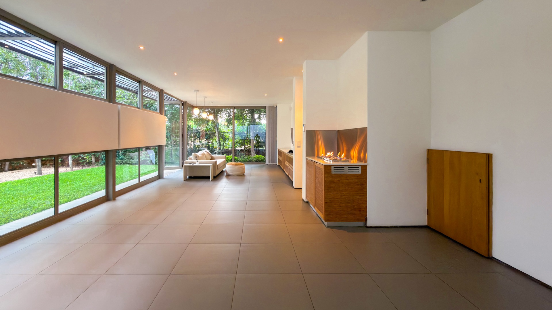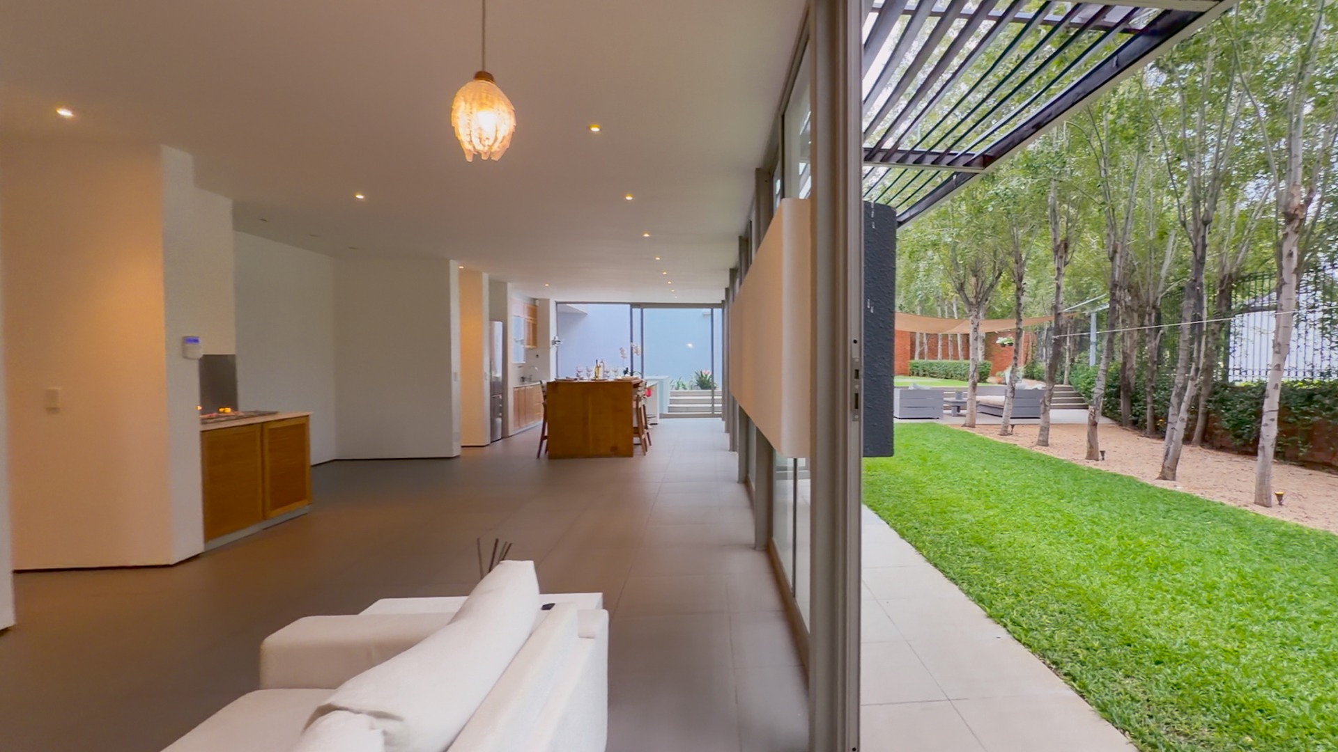 From the street, the home presents an air of complete privacy, offering not only exclusivity but also an added layer of security. Upon entering through the gates, one is immediately struck by the manicured, minimalist garden, a charming splash pool, and the remarkable sense of space that defines the entire first level.