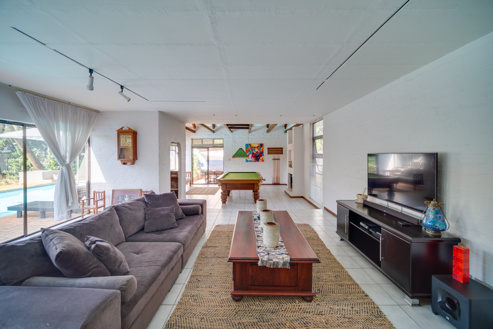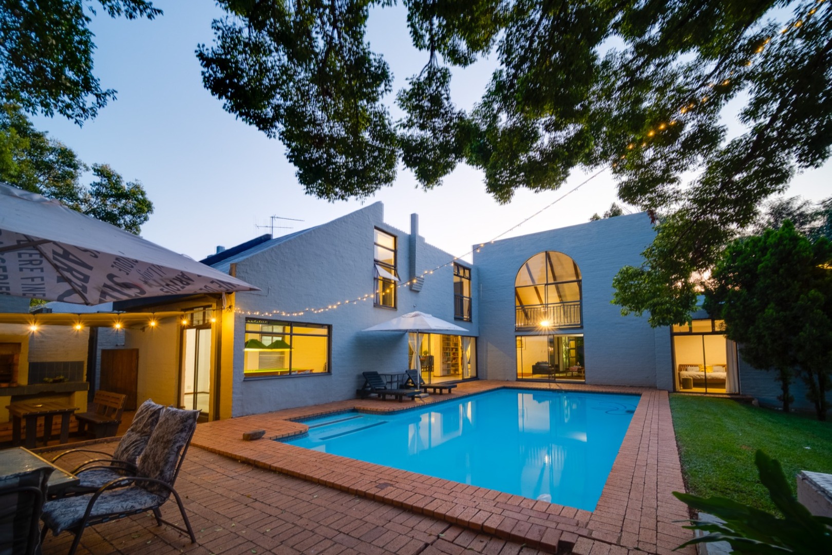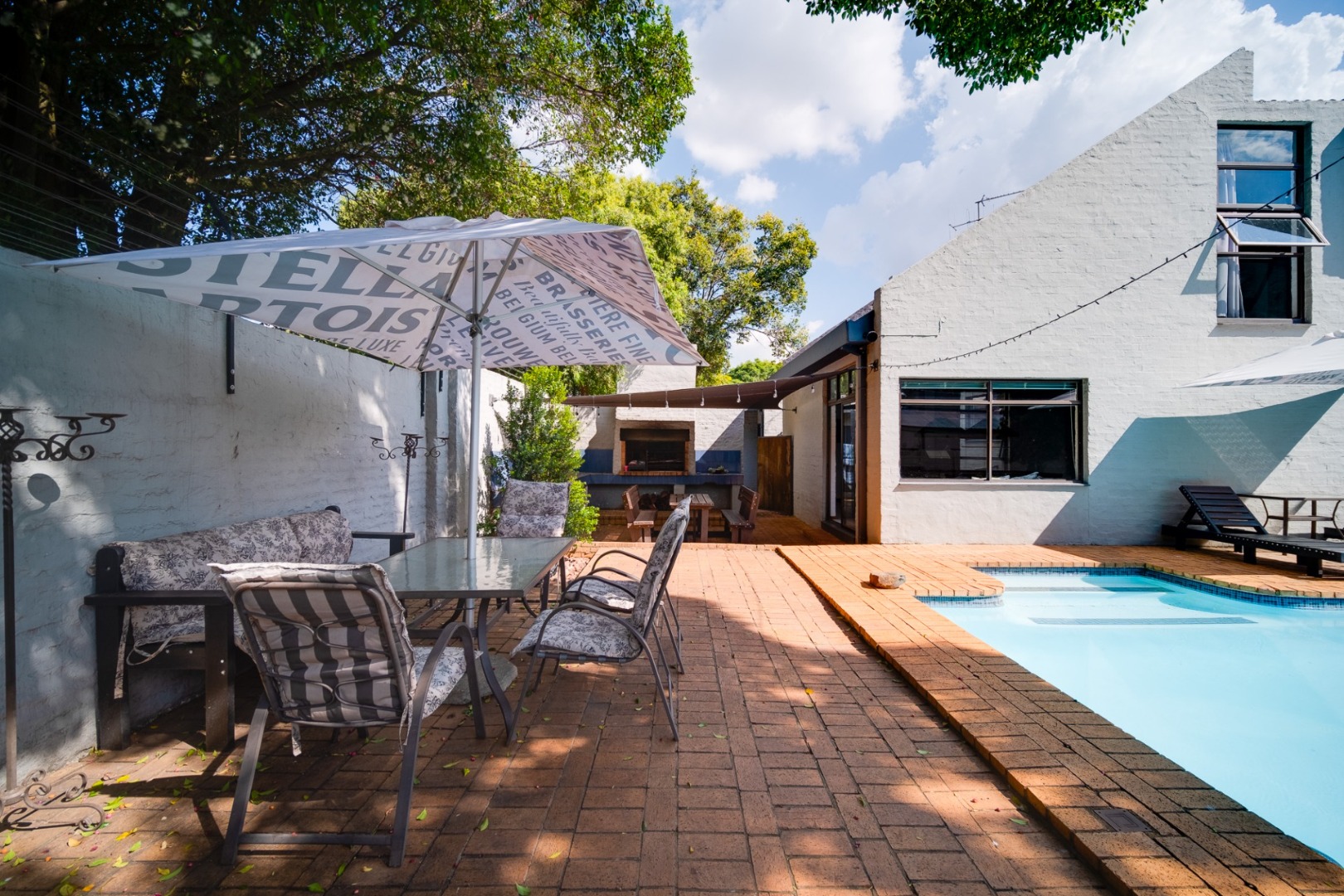 3 elegant reception rooms wrap around the pool and garden
