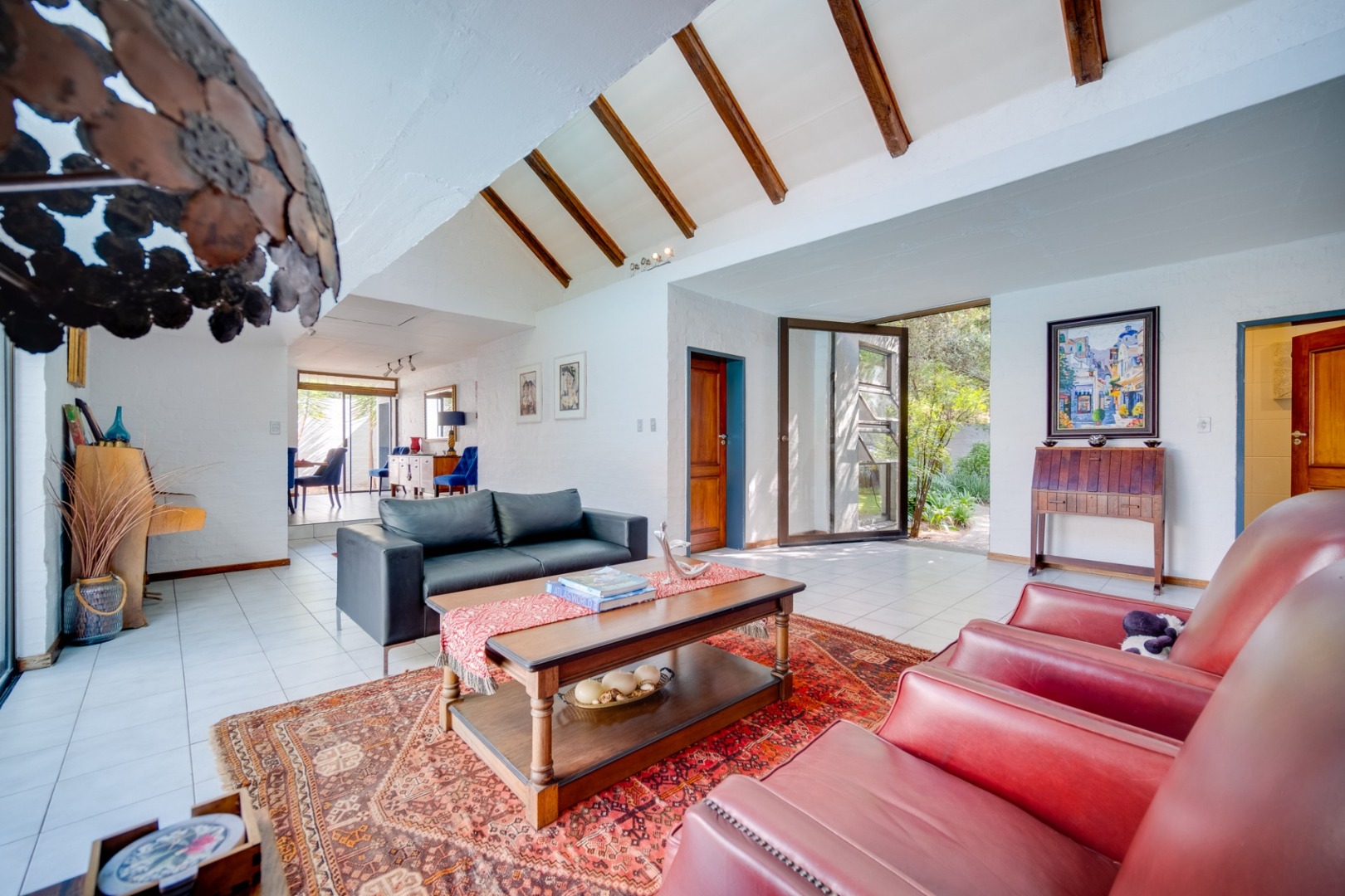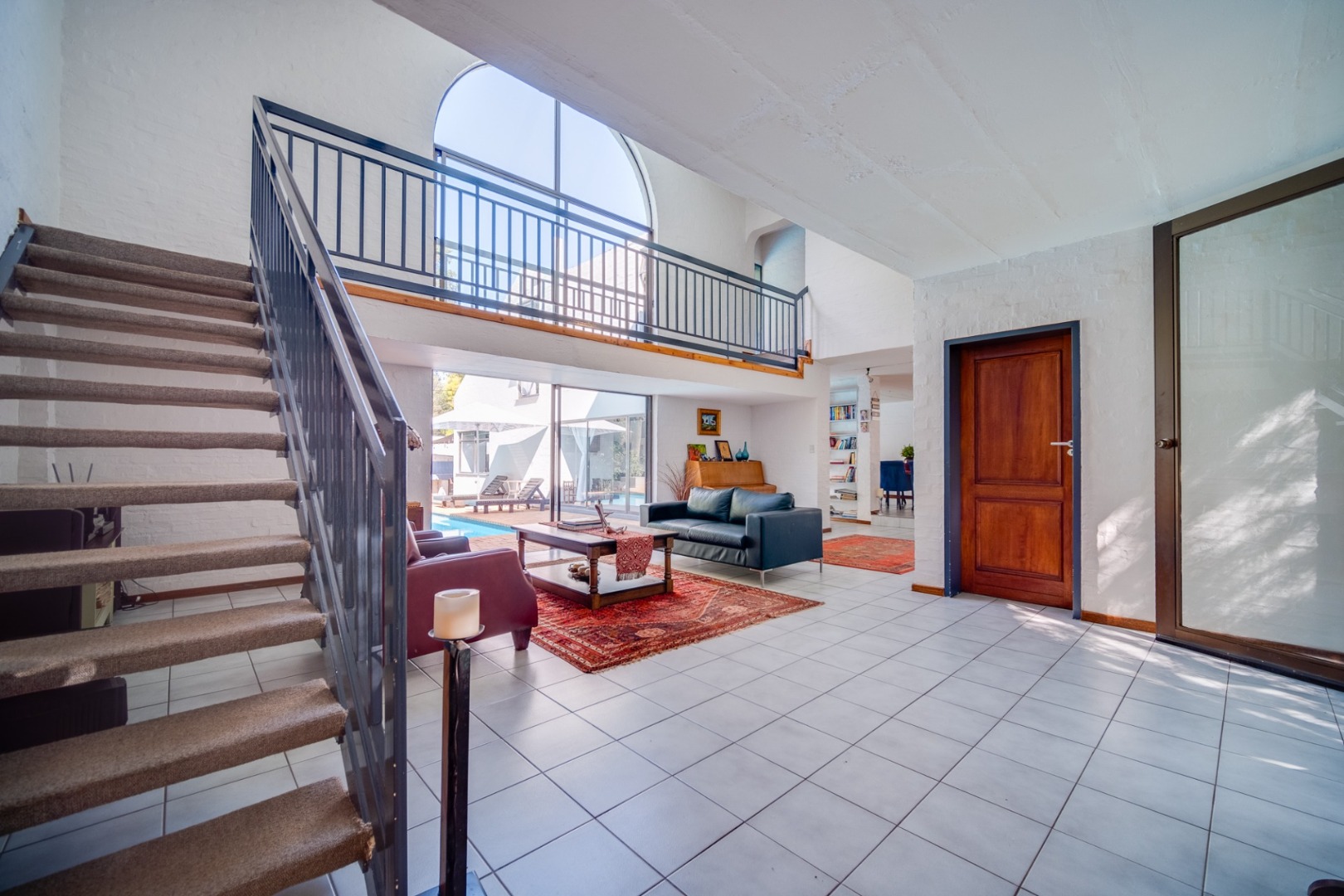 double width swivel glass door, flowing into the double volume expansive