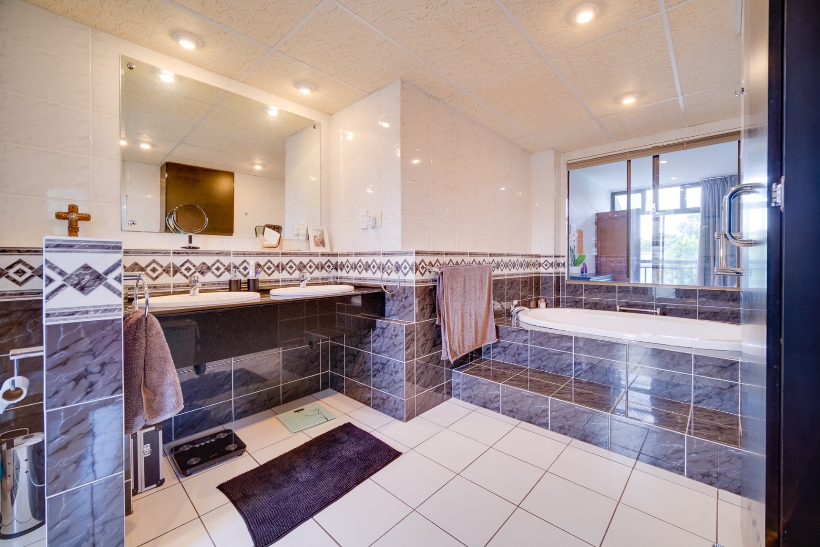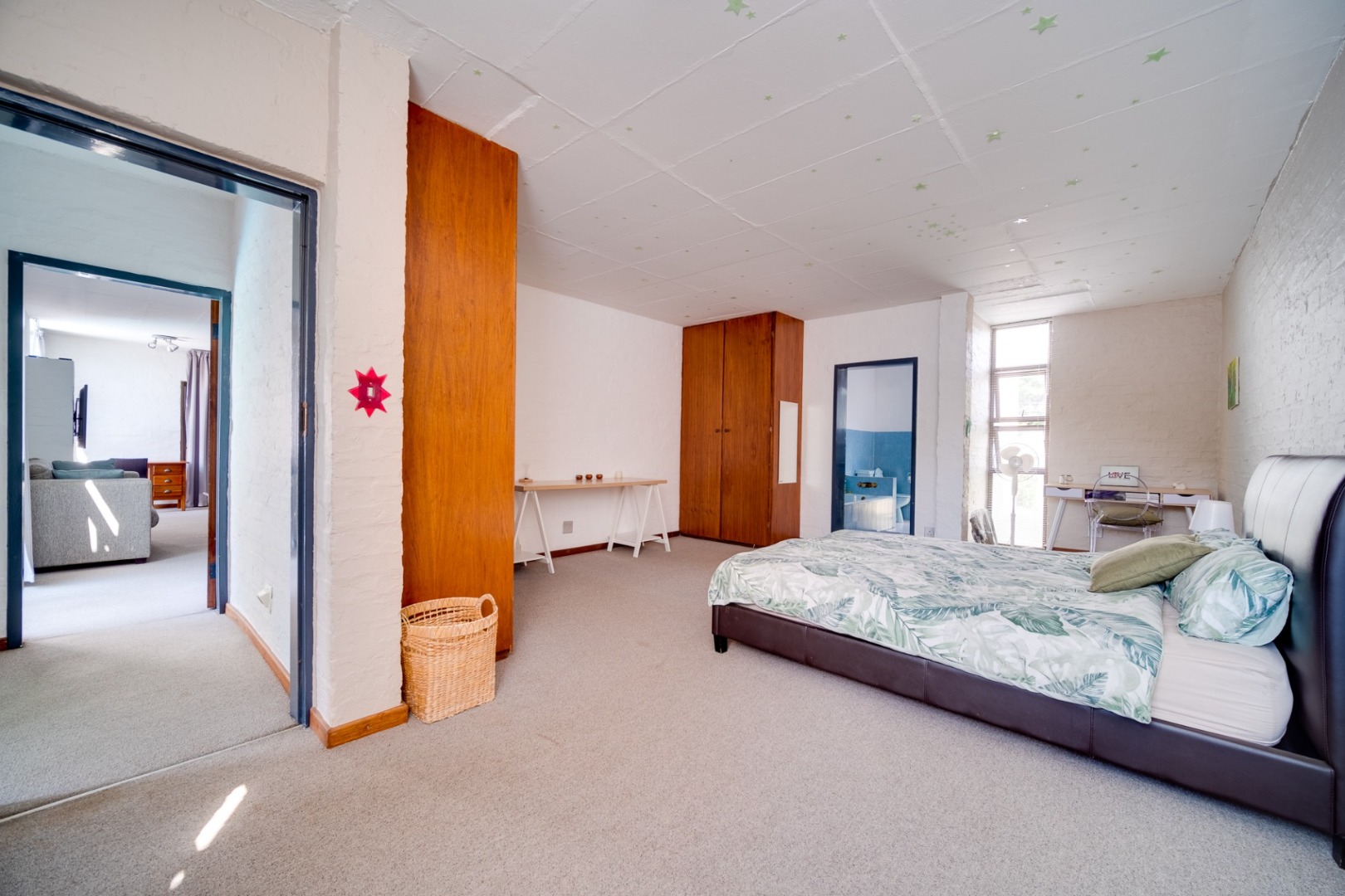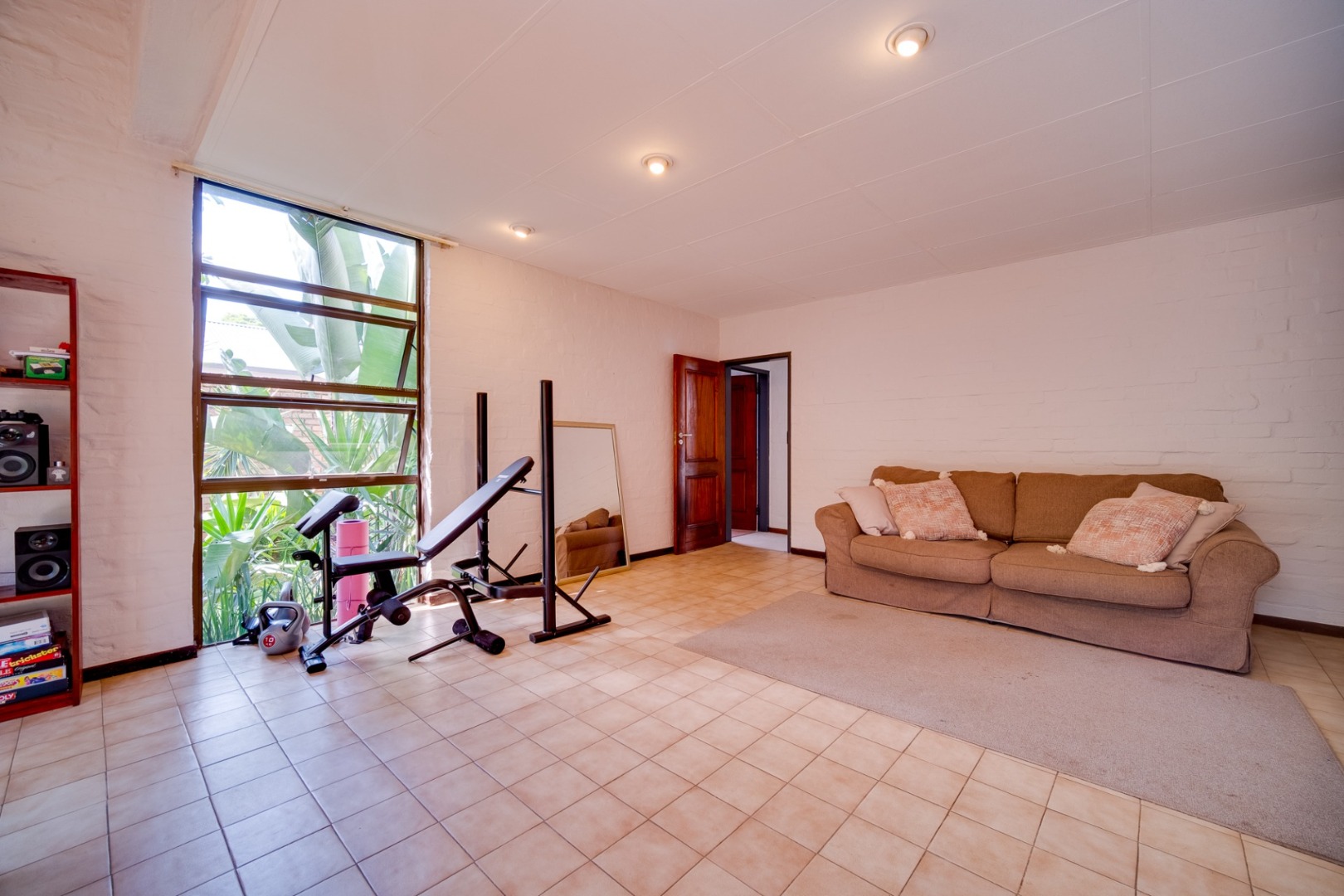 bathroom and large playroom.