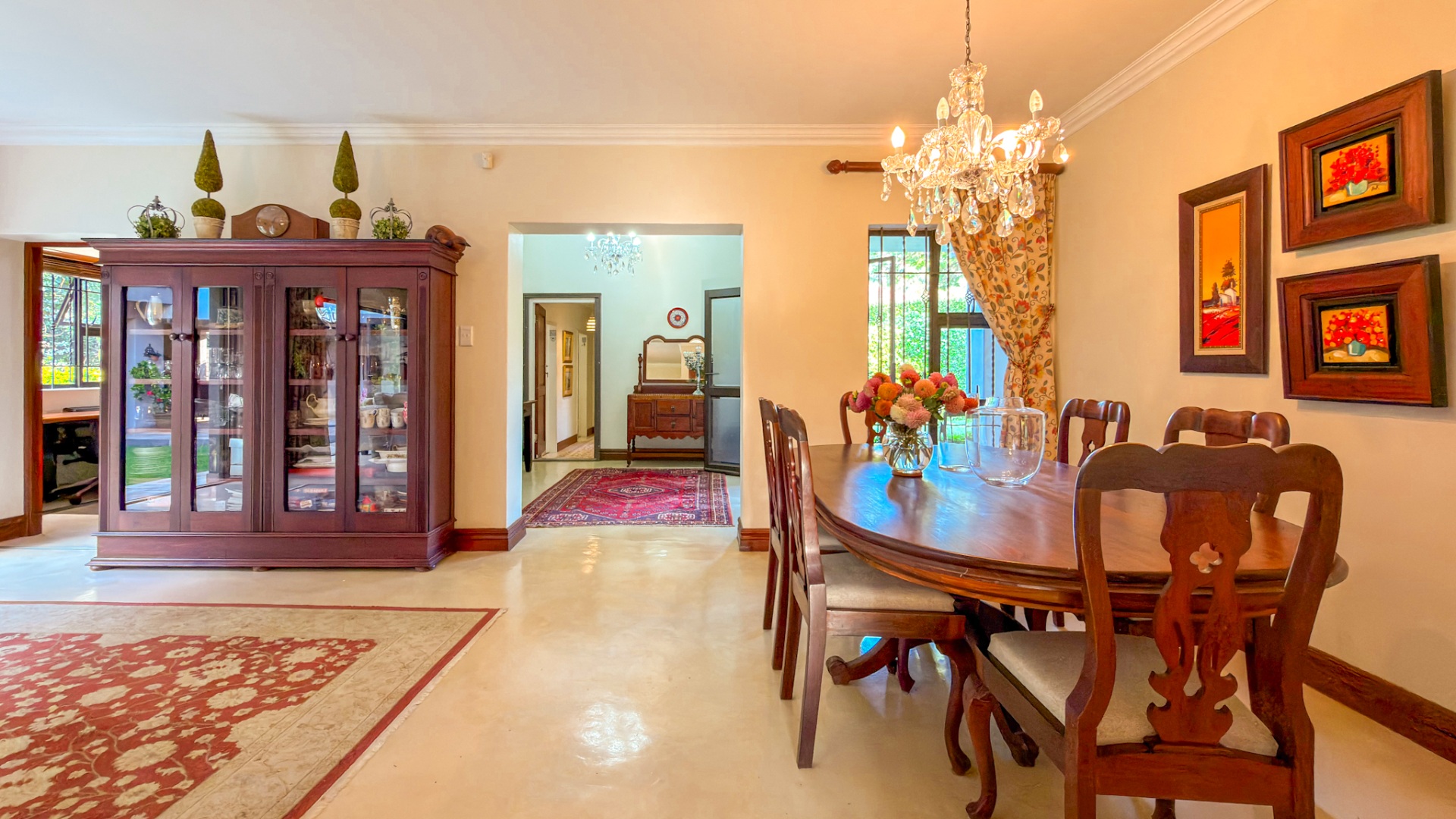 This rare offering is a home that effortlessly combines sophistication with warmth—a distinguished sanctuary that could well become your family’s next safe haven. From the moment you step through the front door, you are welcomed by gracious open-plan spaces comprising the family dining area and living rooms, seamlessly complemented by a well-appointed kitchen with a separate scullery and laundry.