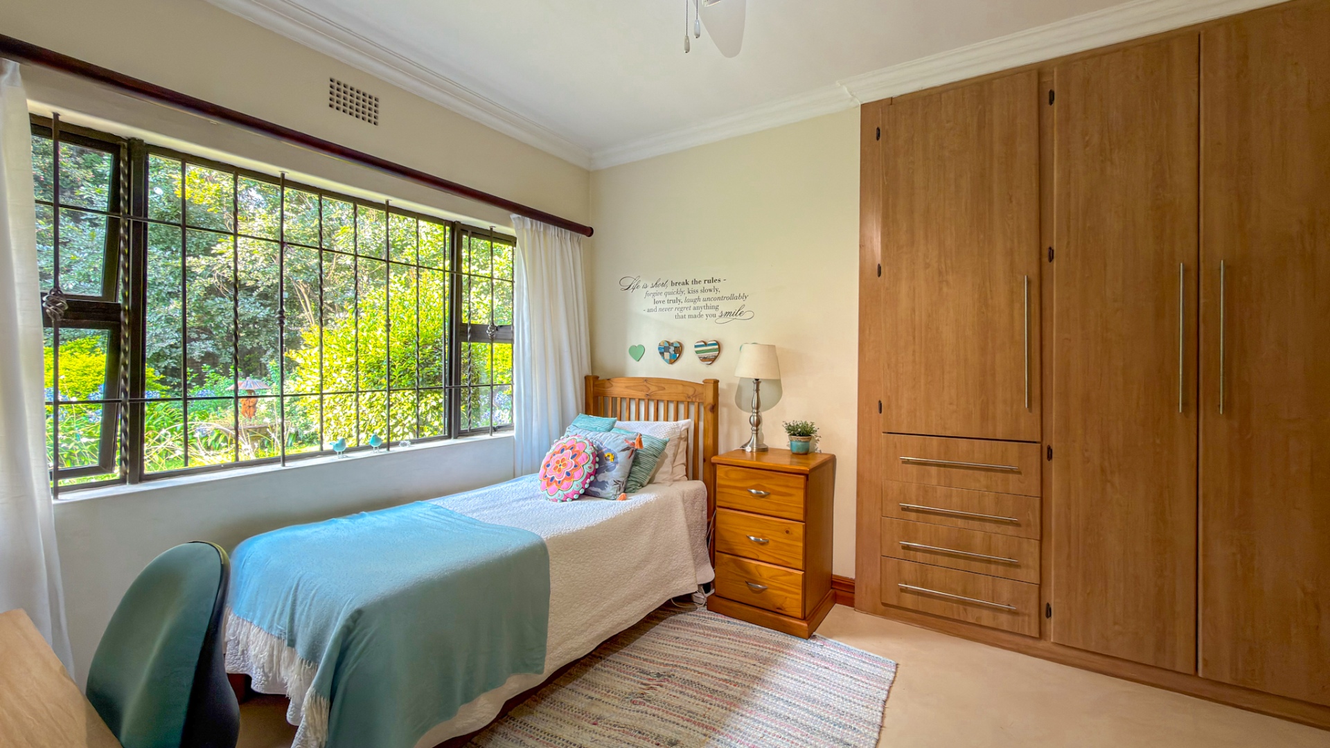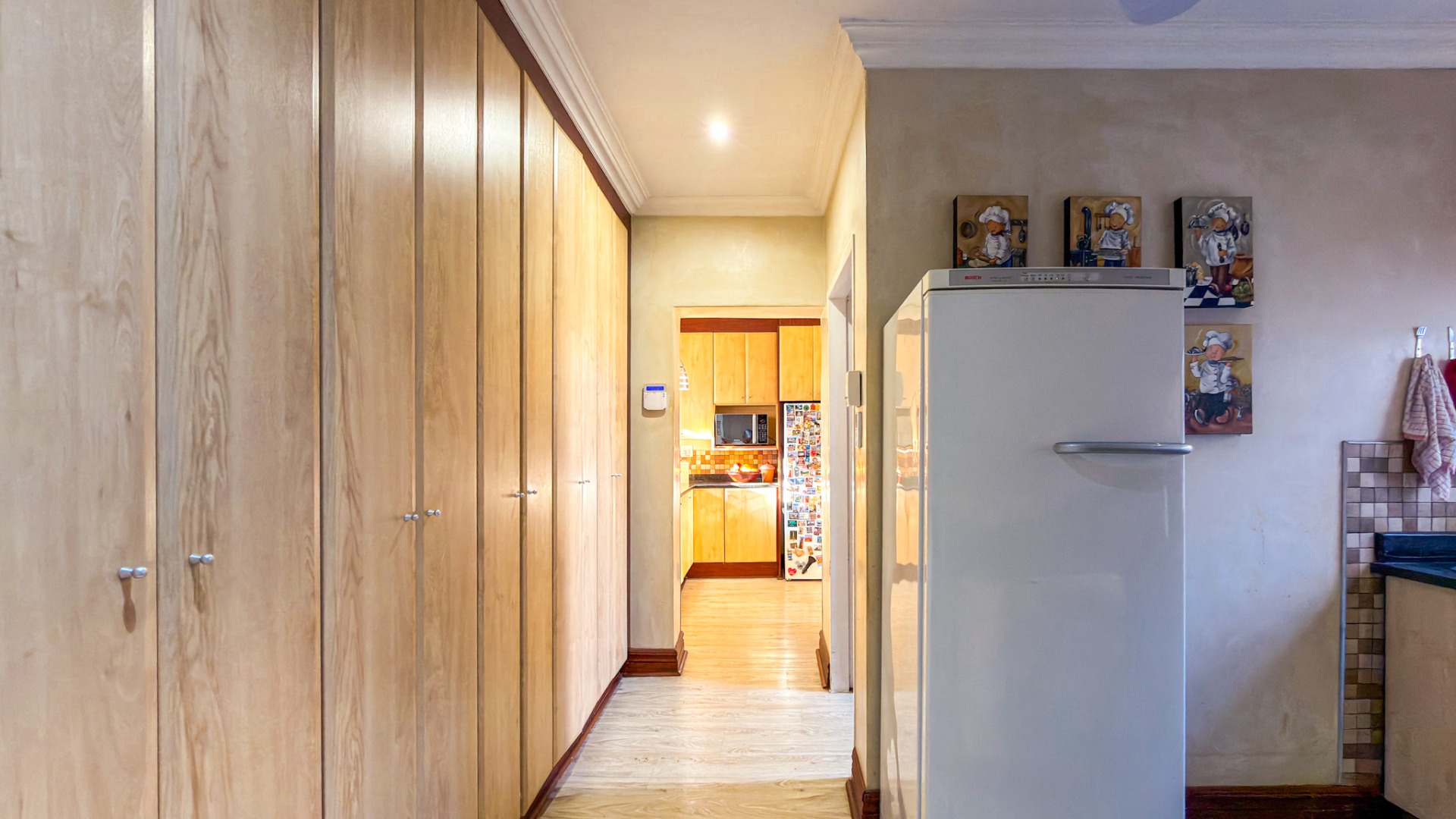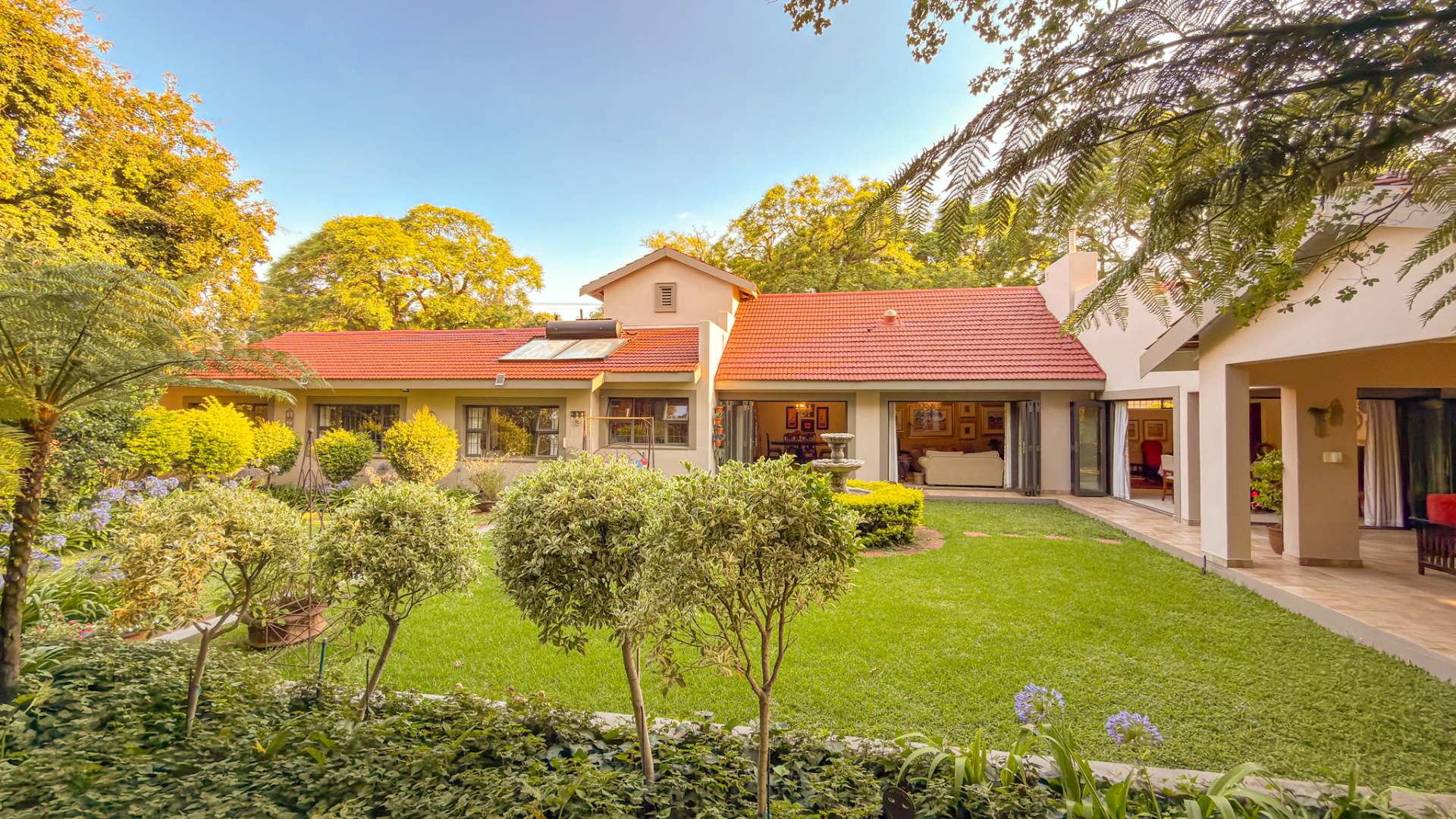 The entertainment areas flow beautifully through expansive doors onto a quaint, meticulously manicured landscaped garden, complete with a tranquil pond. This space further extends to a generous, light-filled patio and entertainment area. Truly the heartbeat of the home, this inviting stoep promises countless memorable family gatherings and relaxed evenings with friends.