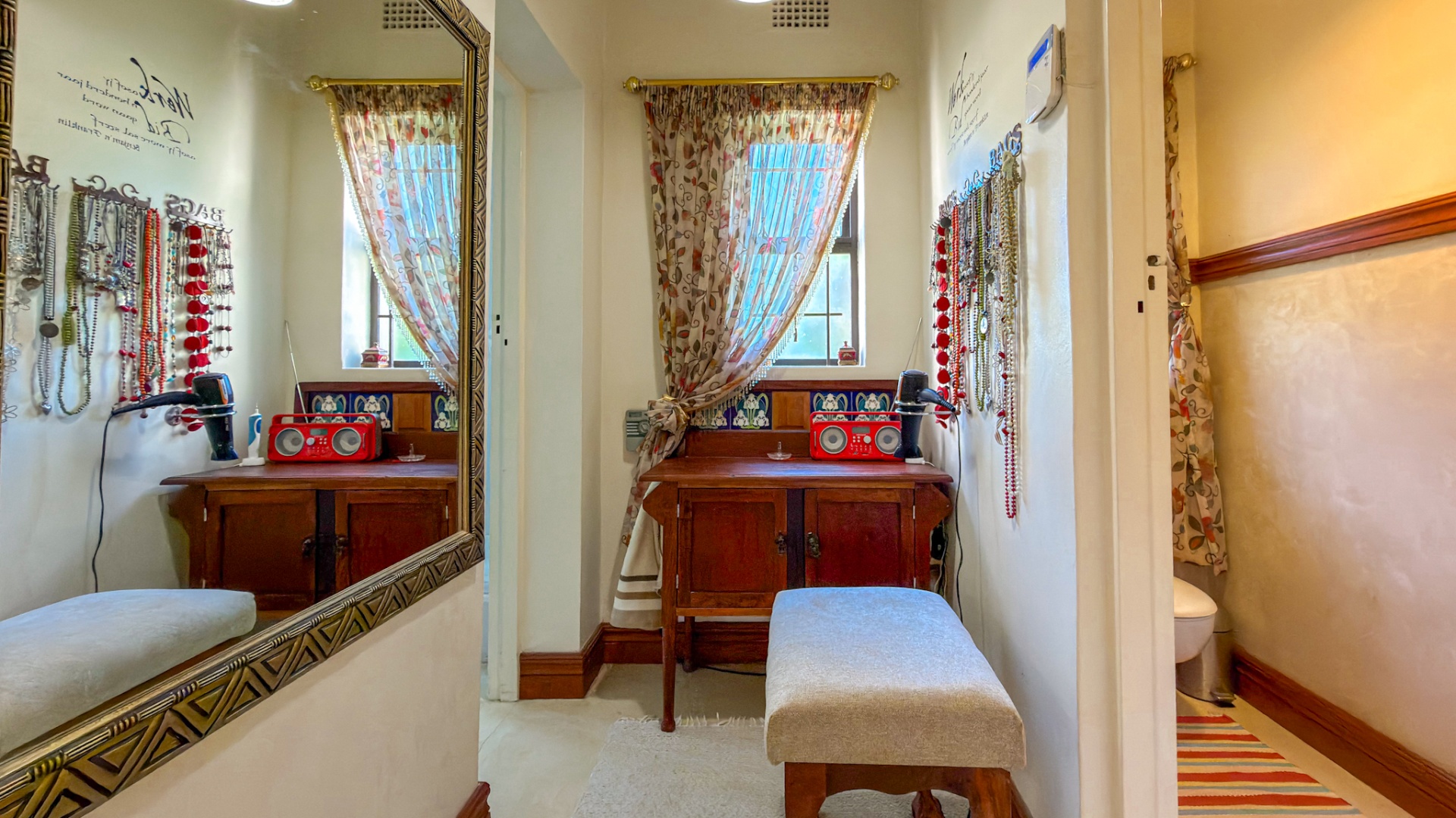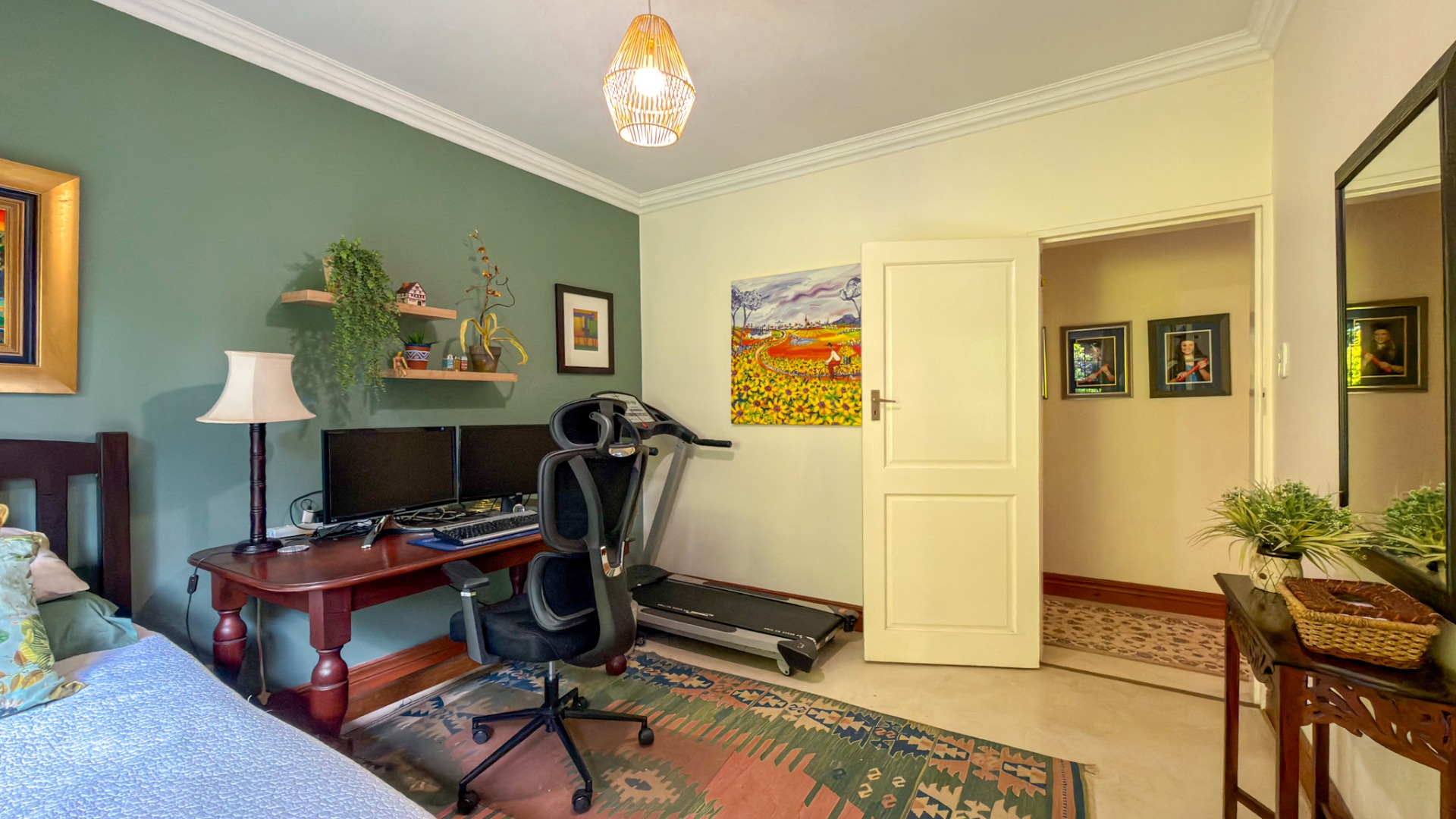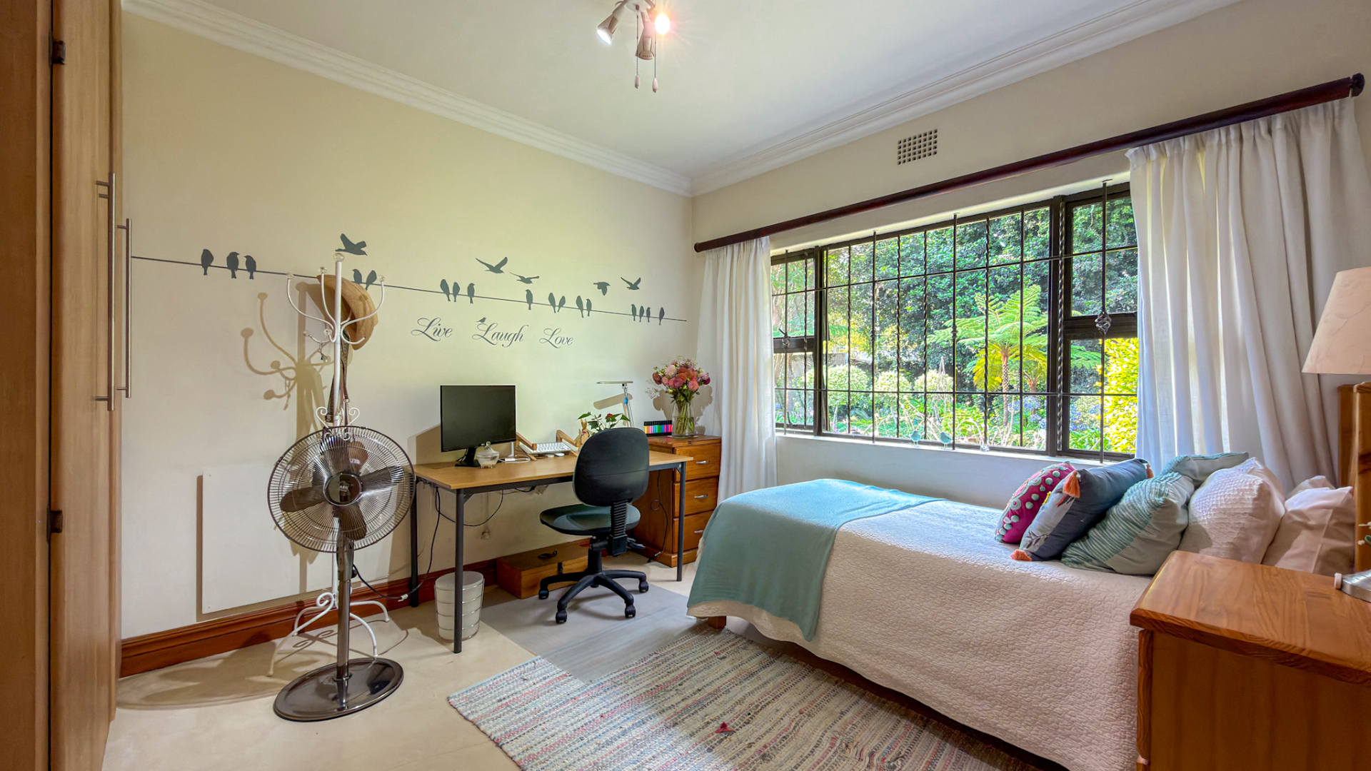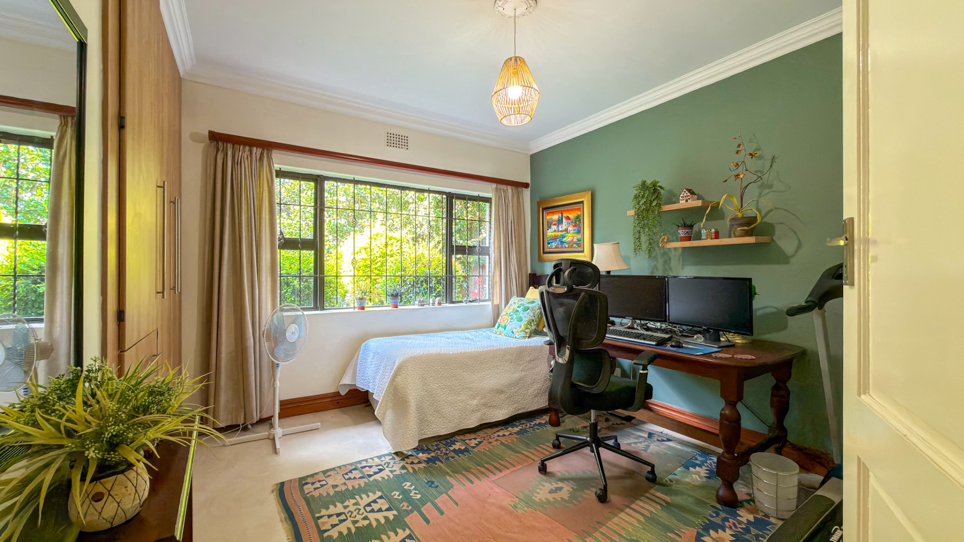The main residence offers three well-proportioned bedrooms to the right of the entrance. The master suite is en suite, while the remaining two bedrooms are serviced by a tastefully designed family bathroom. To the left, a fourth bedroom presents a remarkable multipurpose opportunity. With its own dining area, television lounge, kitchenette, bedroom, and bathroom, this space is ideal as a guest suite, private accommodation for an older child, or a potential income-generating unit. It enjoys both internal access as well as a private external entrance.