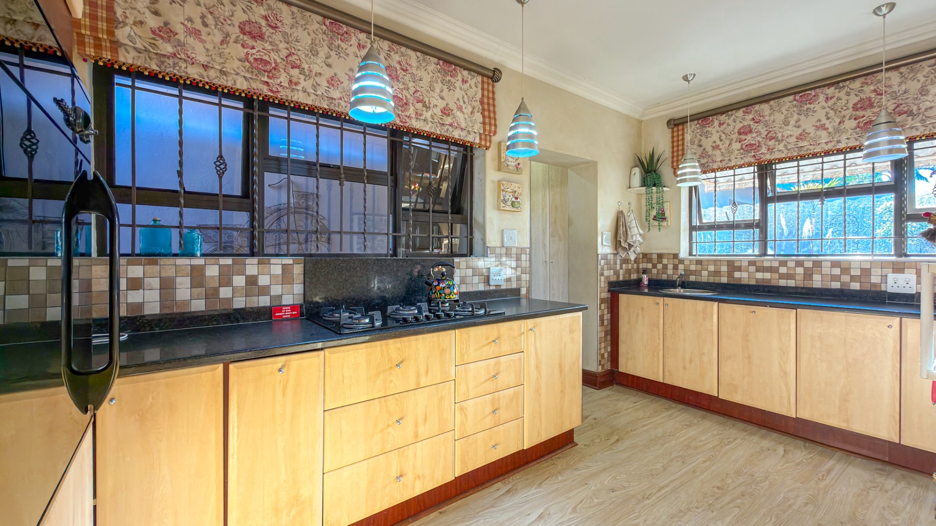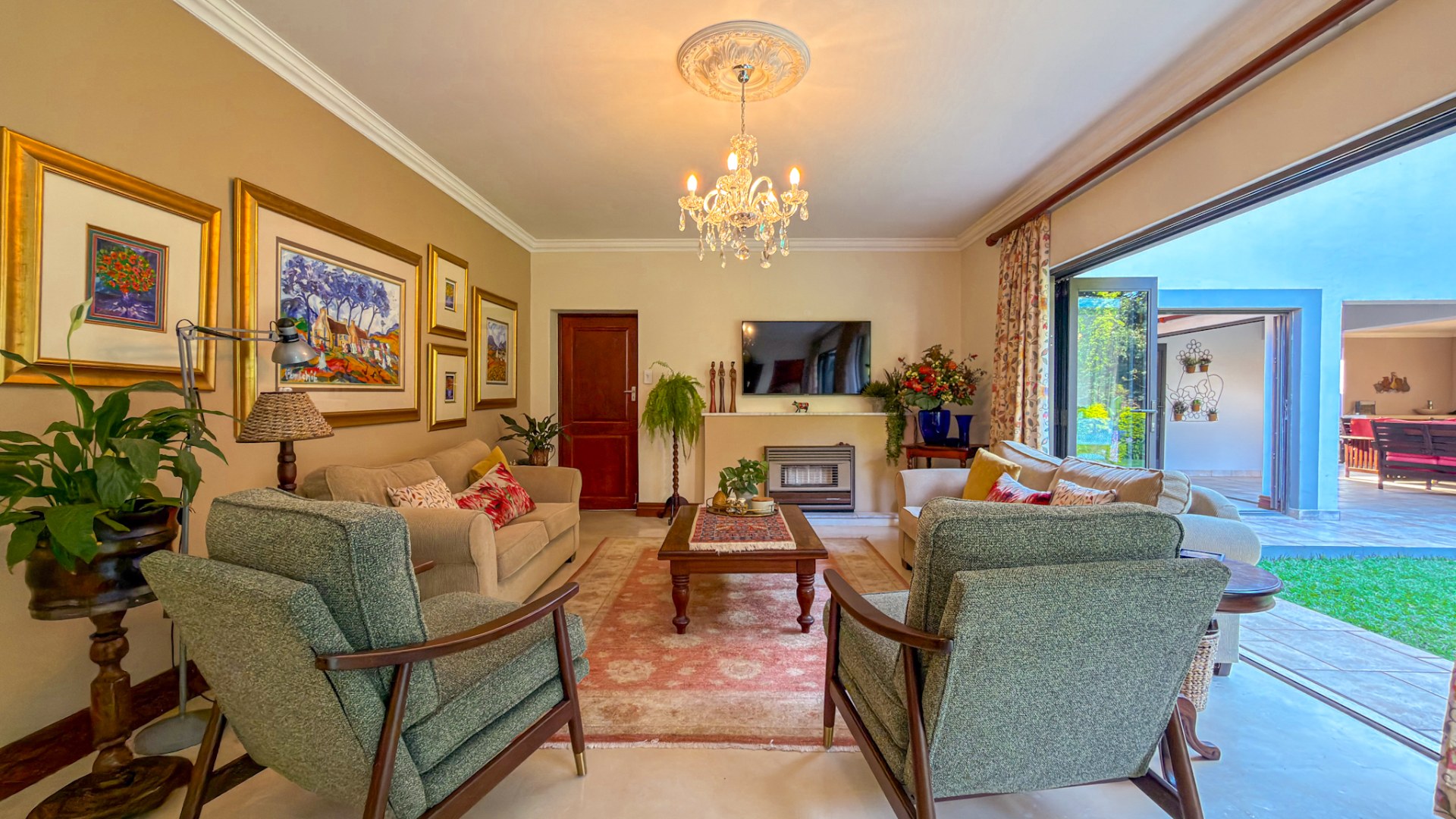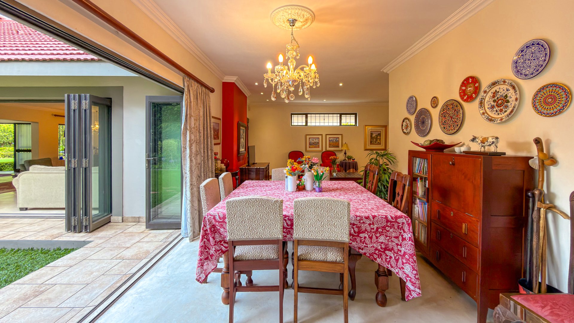 The entertainment areas flow beautifully through expansive doors onto a quaint, meticulously manicured landscaped garden, complete with a tranquil pond. This space further extends to a generous, light-filled patio and entertainment area. Truly the heartbeat of the home, this inviting stoep promises countless memorable family gatherings and relaxed evenings with friends.