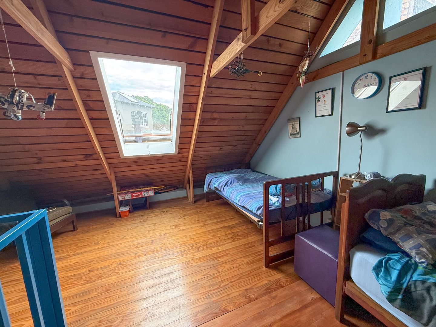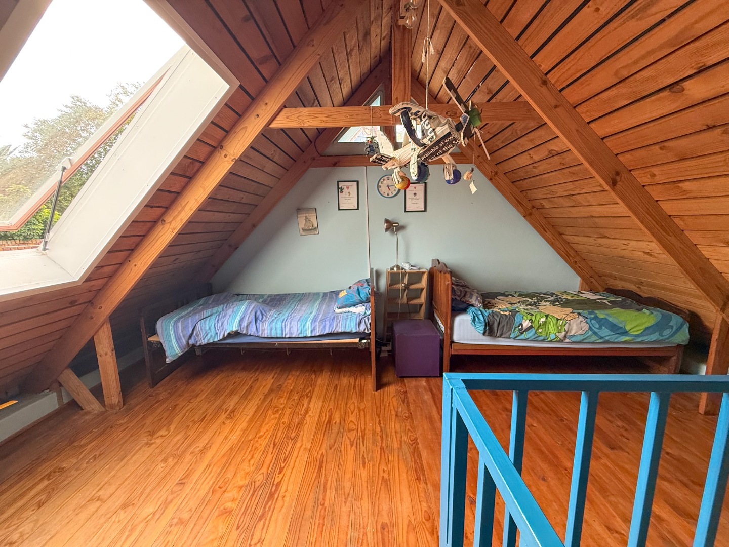 The sleeping quarters are equally impressive, enhanced by double-volume ceilings that create a sense of space and refined ambiance. The three children's bedrooms are well-sized bedrooms and share a family bathroom featuring a bath and basin, with a separate toilet and shower for added practicality. One of these bedrooms offers a charming loft area — a delightful feature for children, providing additional sleeping or study space.