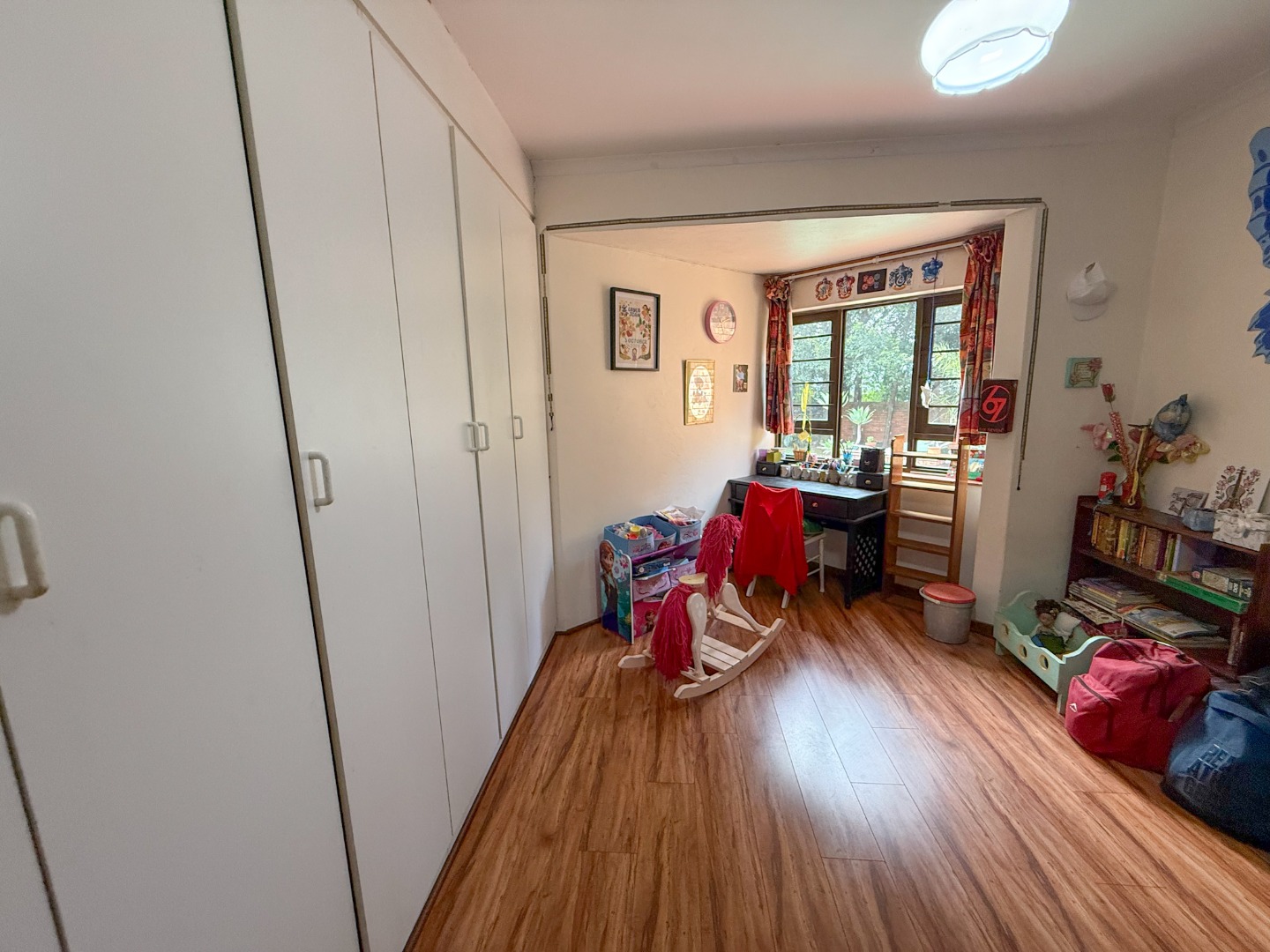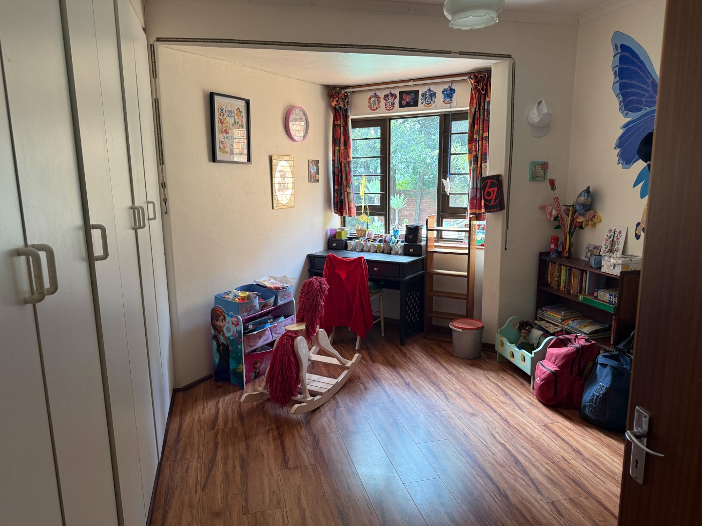 The children's bedrooms are generously proportioned, offering beautiful garden views and ample built-in cupboards.