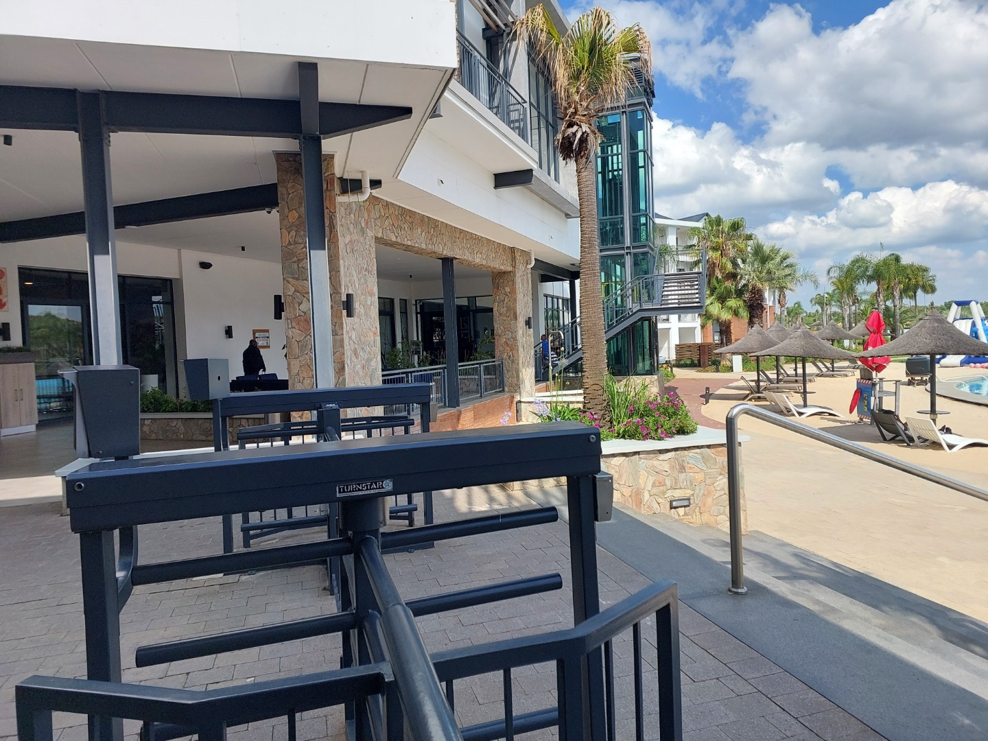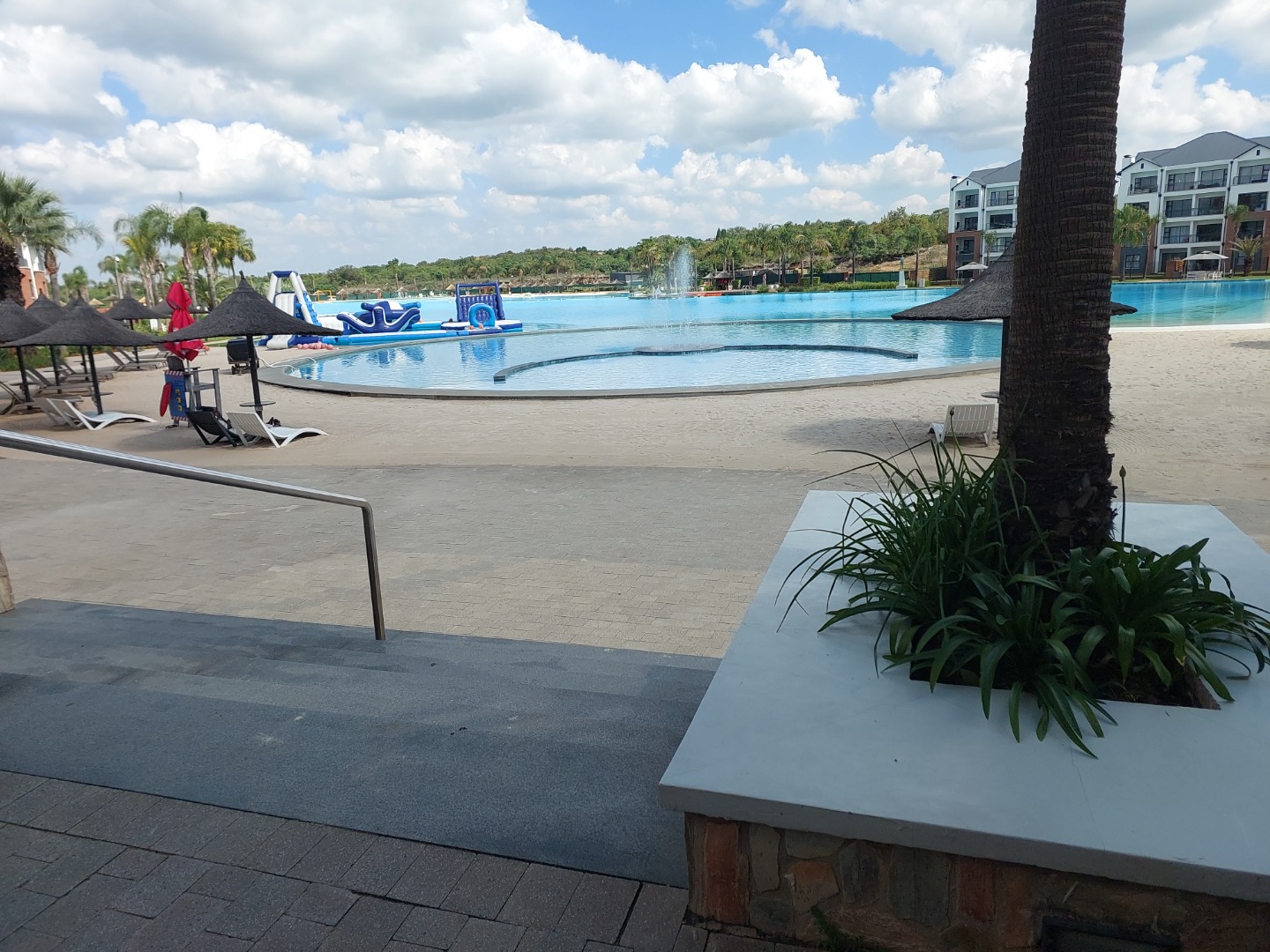 The unit is situated on the 3rd floor to discover an extraordinary array of communal amenities. The complex boasts a magnificent crystal-clear artificial lagoon with sandy beaches, complete with sun loungers and thatched umbrellas, creating a true holiday atmosphere. Swimming pool, waterslides, and inflatable water park elements provide endless recreation for all ages. Enjoy direct access to these vibrant facilities from your private balcony, and benefit from two dedicated parking bays.