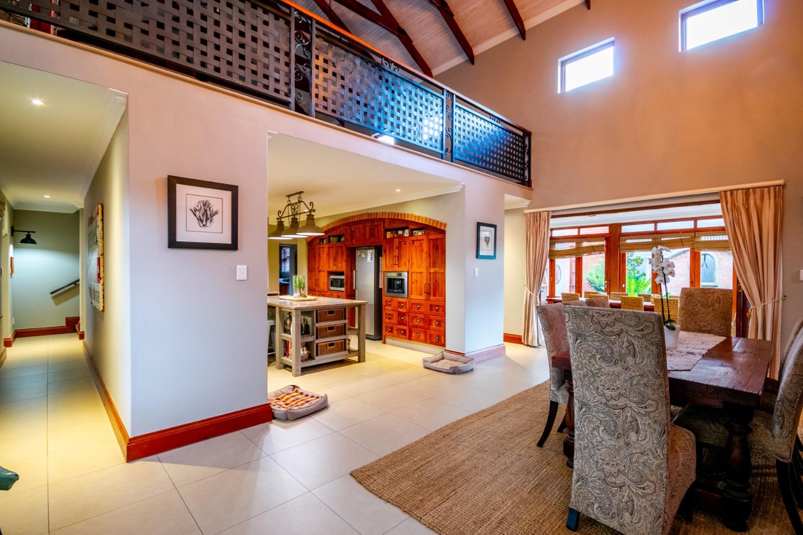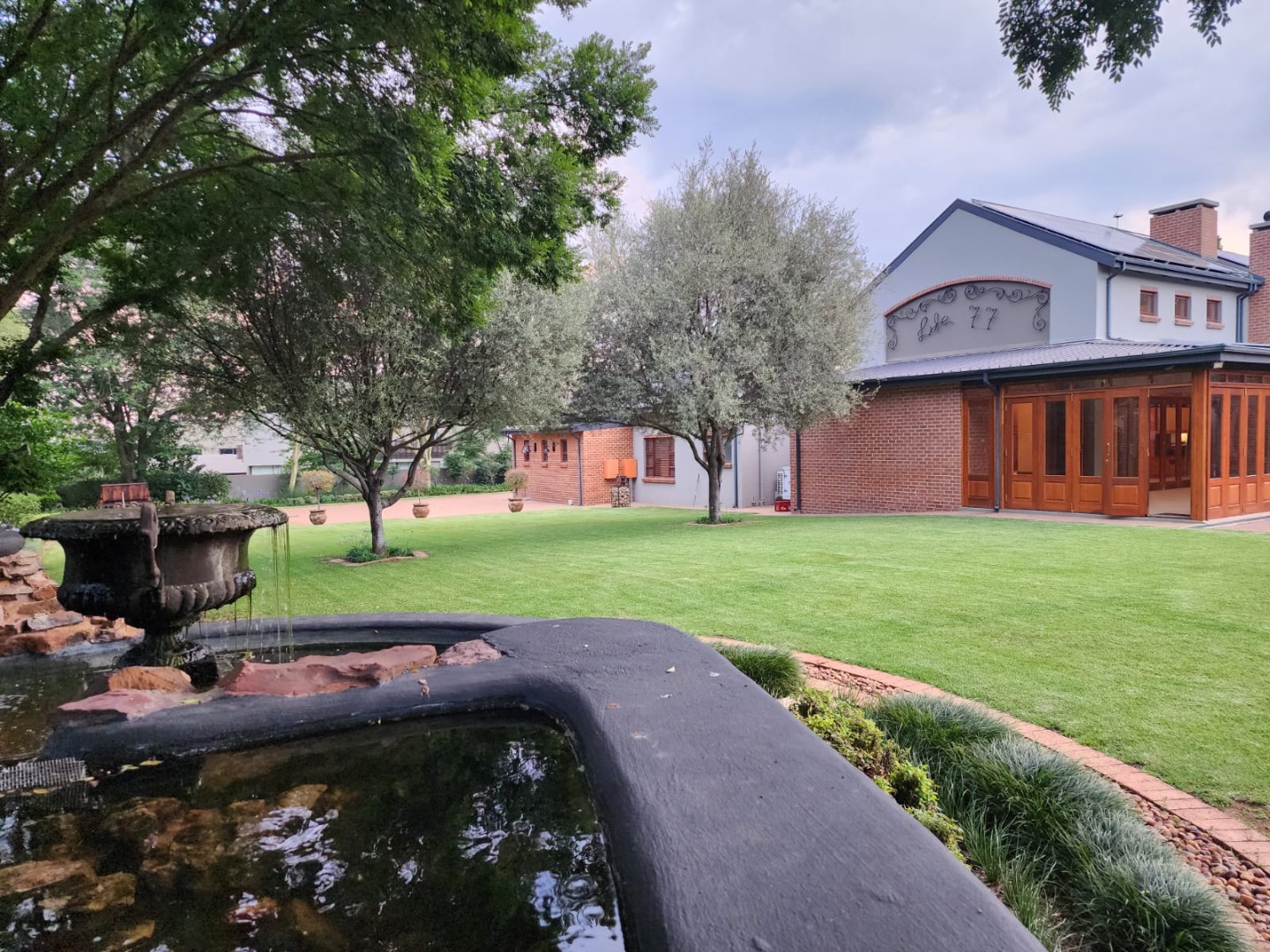 Get swept away by this Villa only by going through the gates...the entrance is enchanting with two double garages on either side, a fountain boasting Anton Smit sculptures, Koi pond and a beautiful landscaped entry way garden. The large paving area is perfectly neat and ideal for friends and families visiting to park and children riding bicycles and scooters, space to play hours on end.