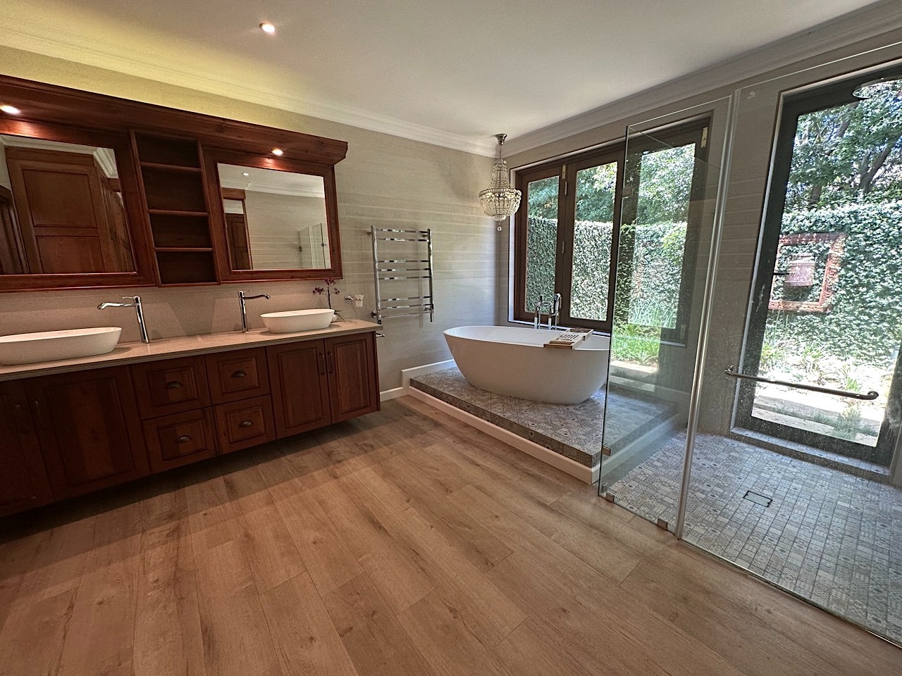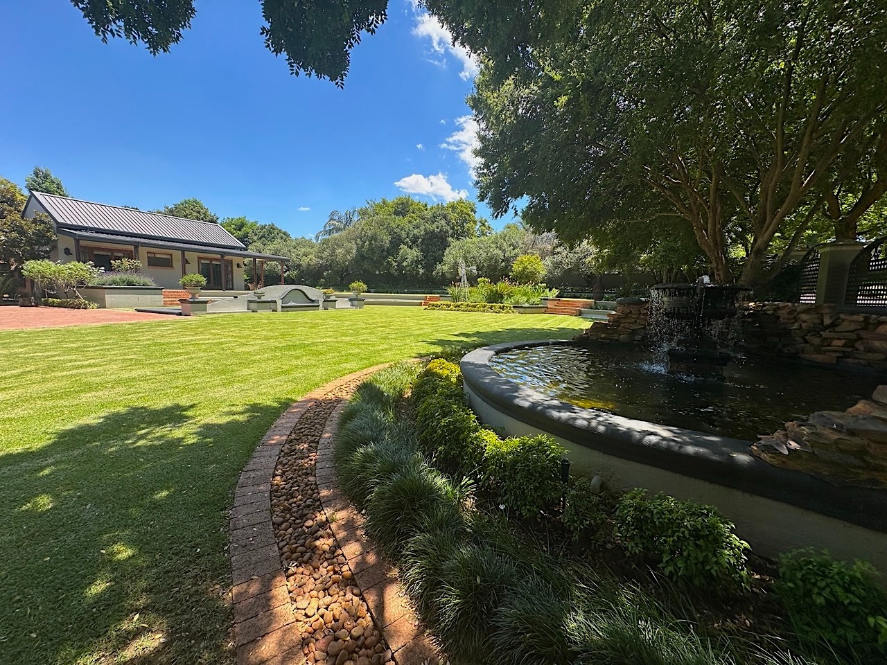 The 5487 m2 garden needs a drumroll!! Flaunting a perfectly manicured lush lawn, a classy designed swimming pool with a heat pump for all year round usage, shapely terraces and Garden Bleu custom made water features, exterior decor and landscaping - an environment that is both timeless and beautiful!