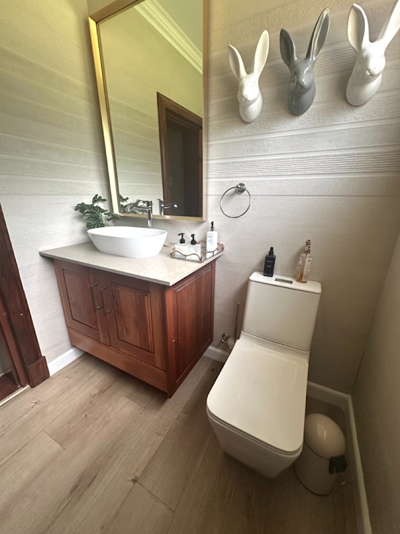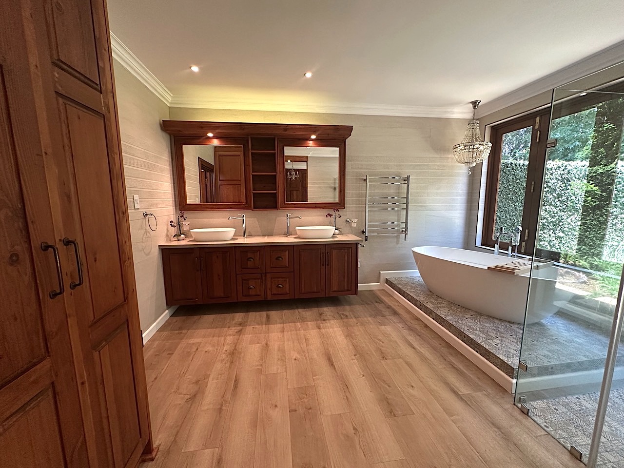 Not only does the kitchen, scullery and laundry have customised built-in solid wood Oregon Pine cabinetry but it is also incorporated throughout the WHOLE house: all the doors, doorposts and window frames.