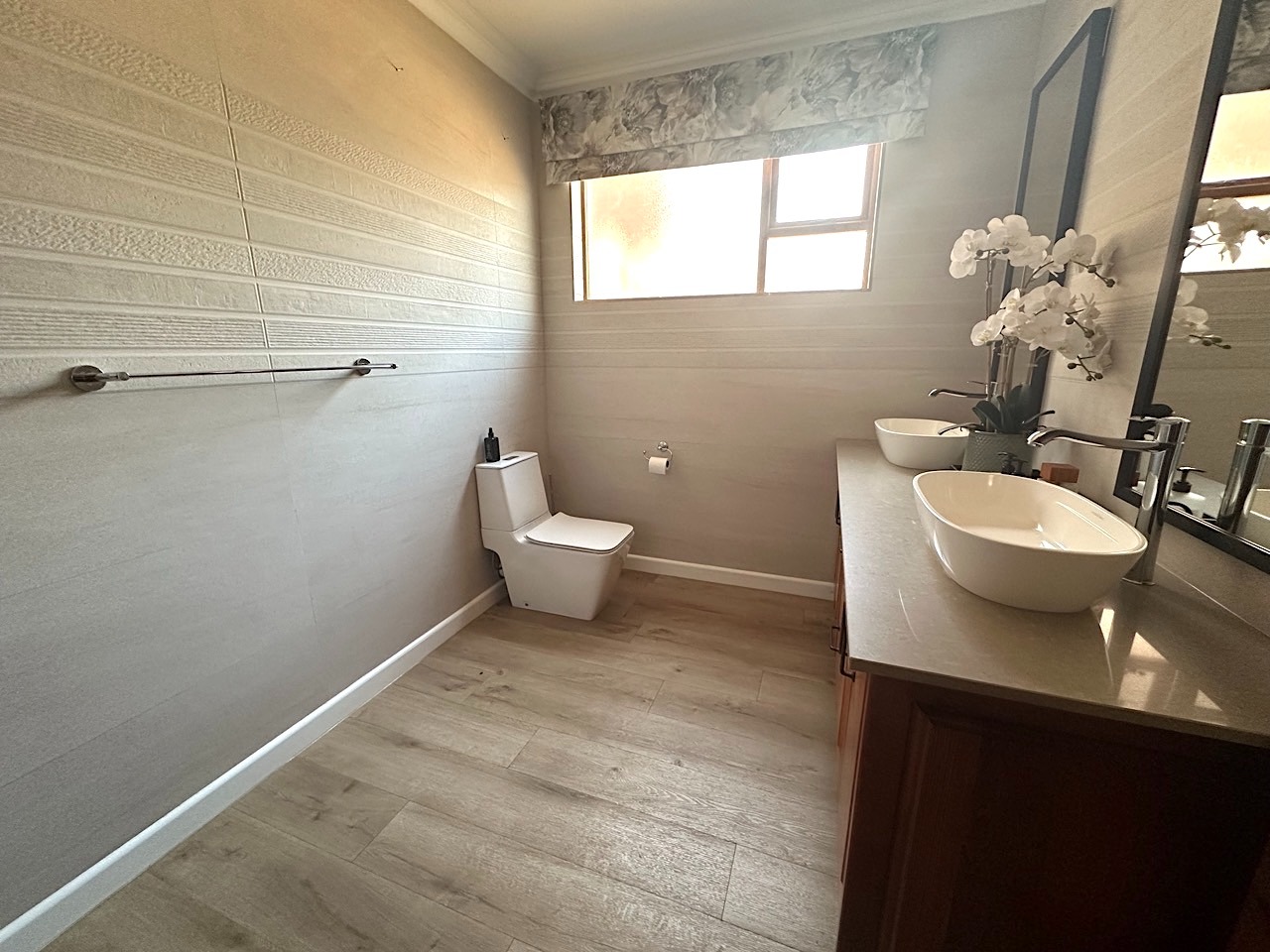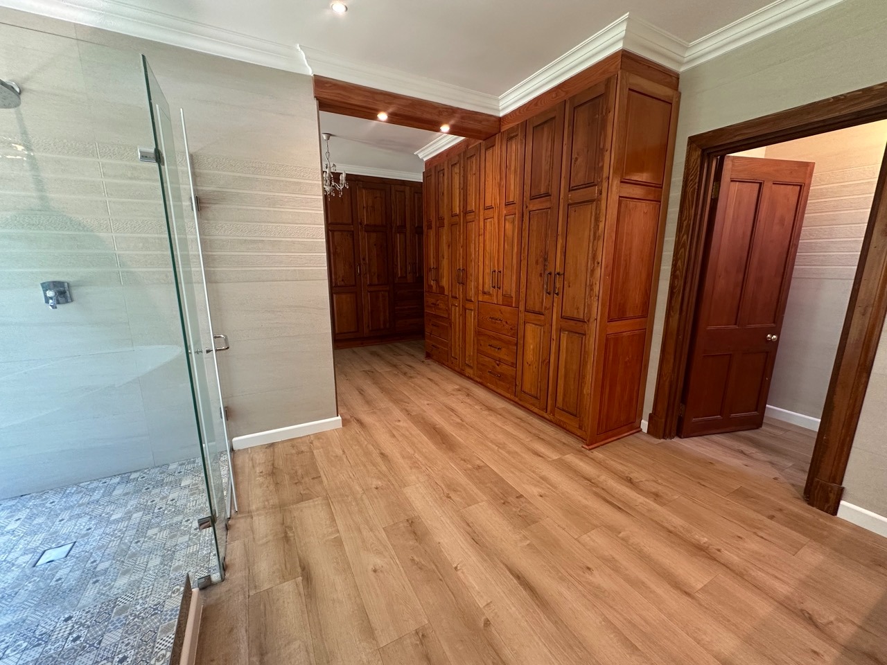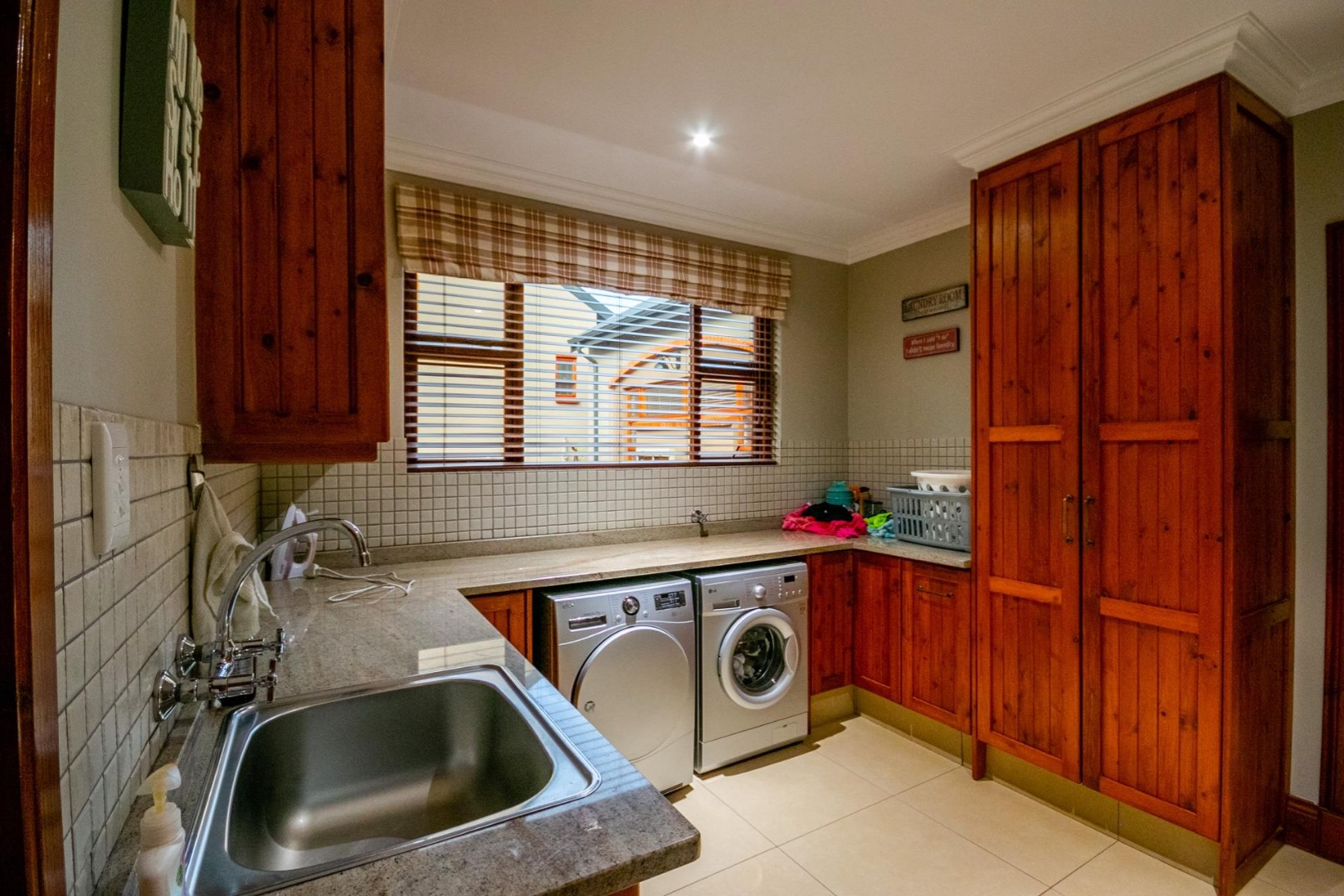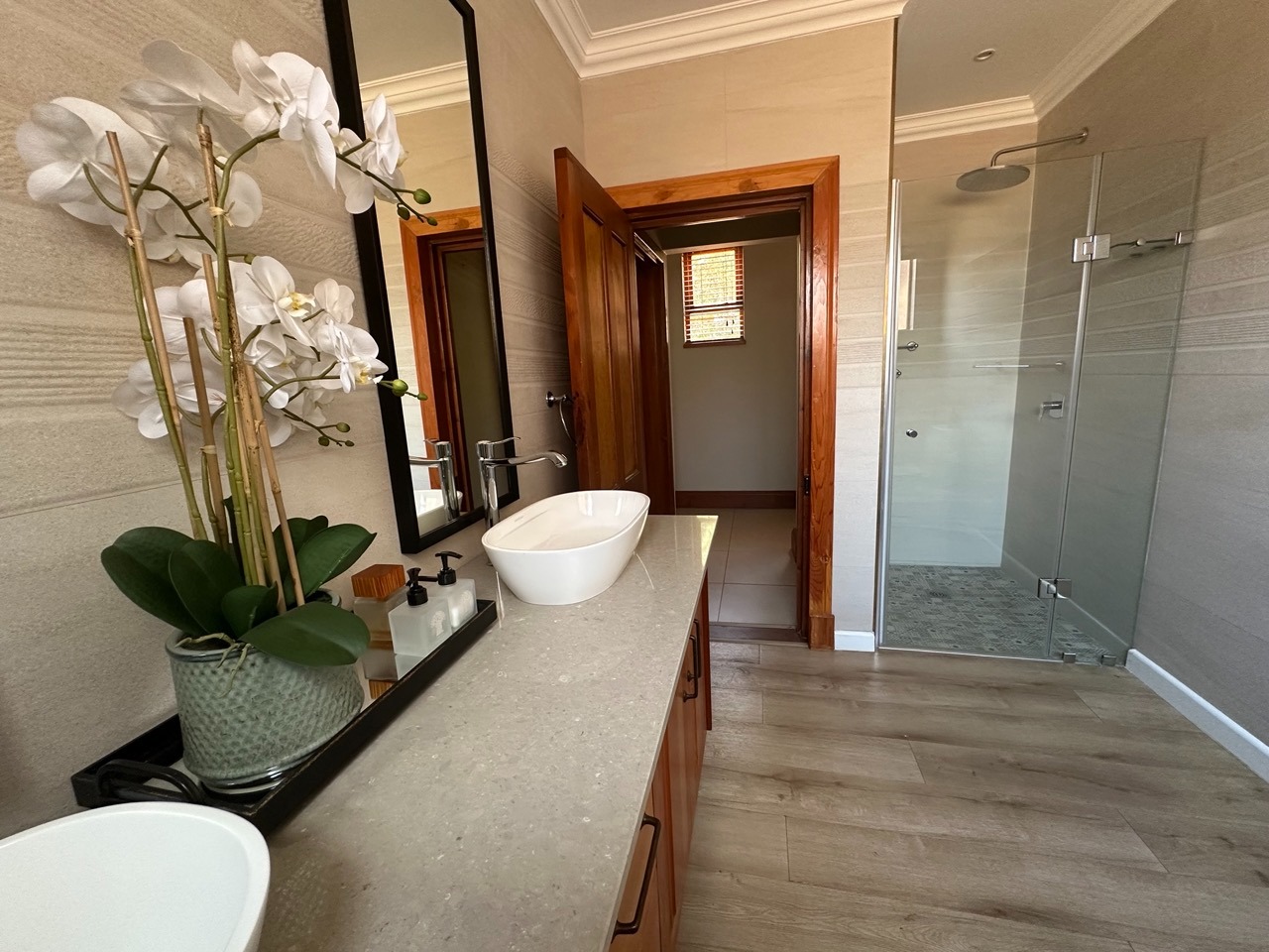 Get swept away by this Villa only by going through the gates...the entrance is enchanting with two double garages on either side, a fountain boasting Anton Smit sculptures, Koi pond and a beautiful landscaped entry way garden. The large paving area is perfectly neat and ideal for friends and families visiting to park and children riding bicycles and scooters, space to play hours on end.