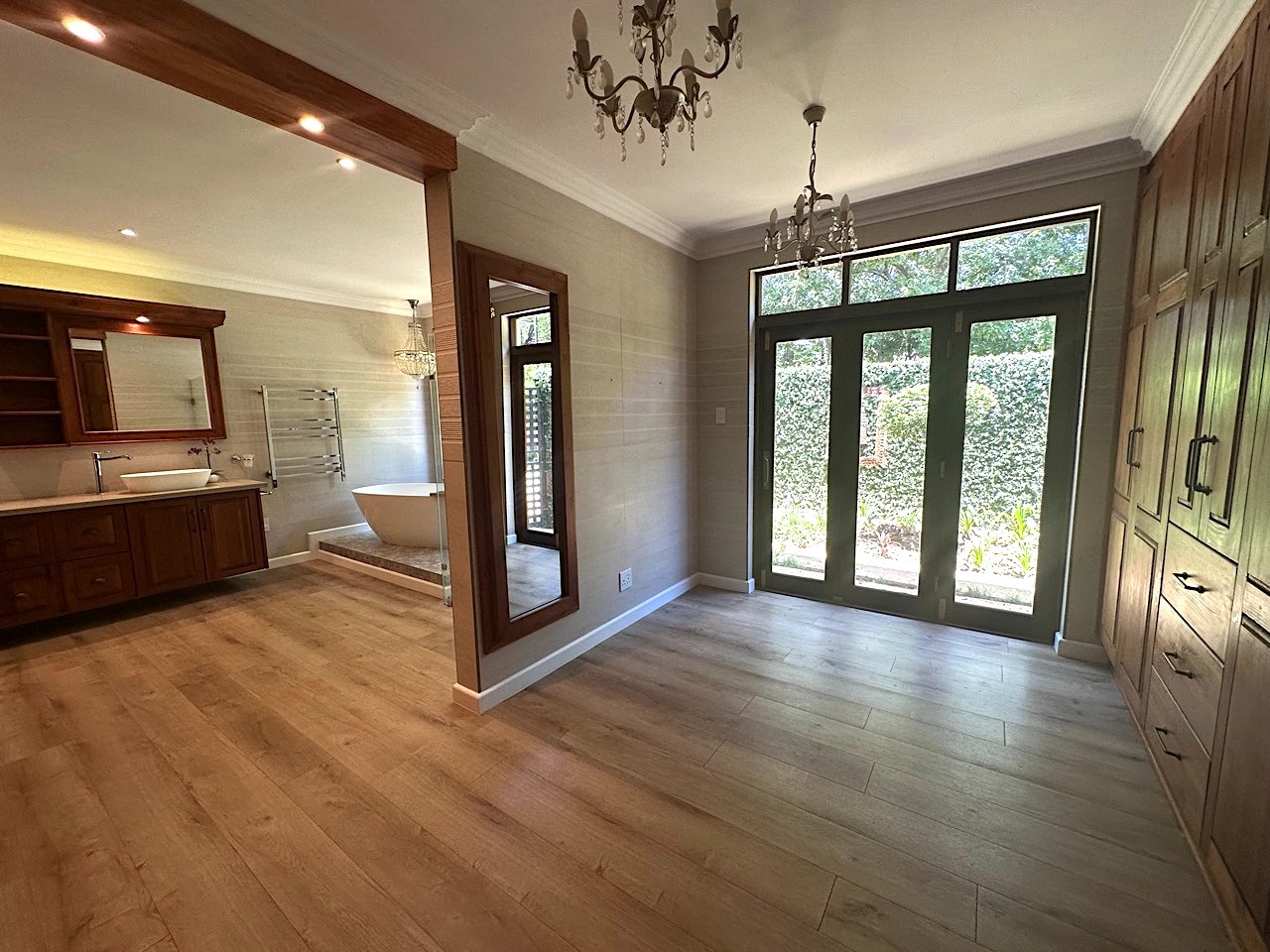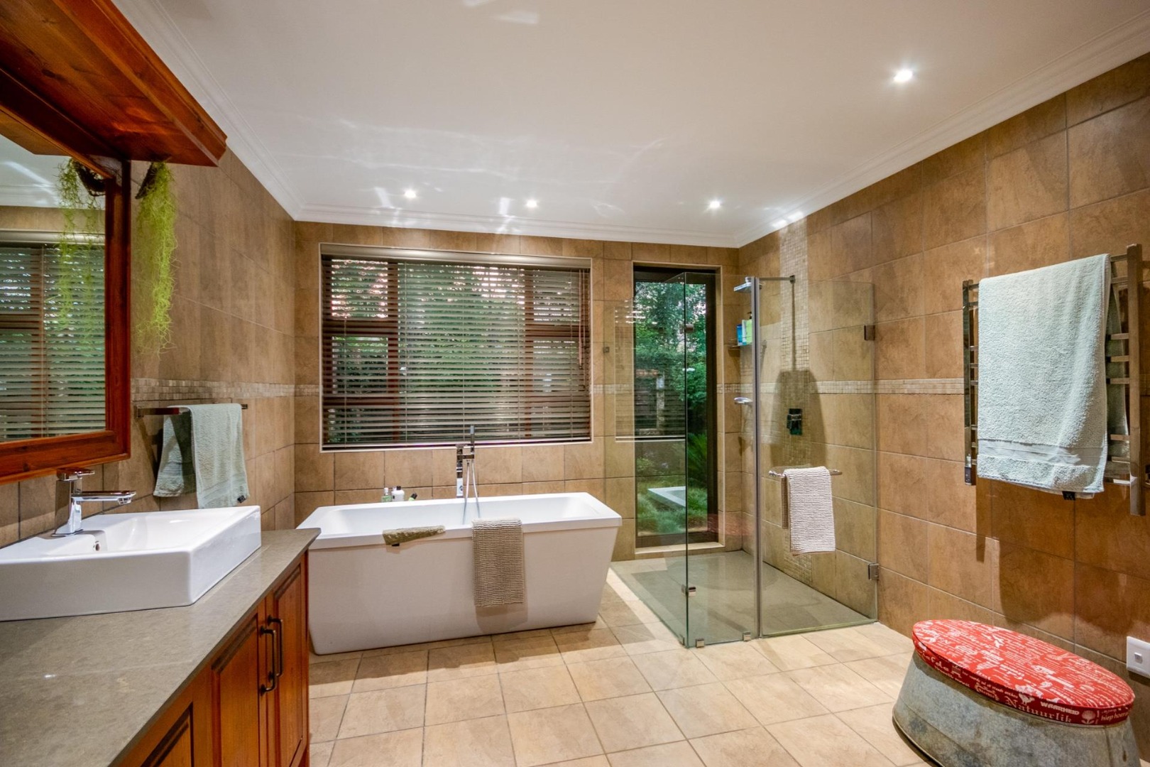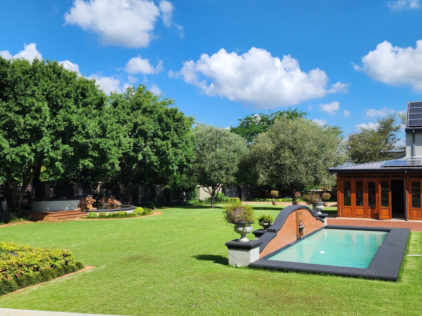 The 5487 m2 garden needs a drumroll!! Flaunting a perfectly manicured lush lawn, a classy designed swimming pool with a heat pump for all year round usage, shapely terraces and Garden Bleu custom made water features, exterior decor and landscaping - an environment that is both timeless and beautiful!