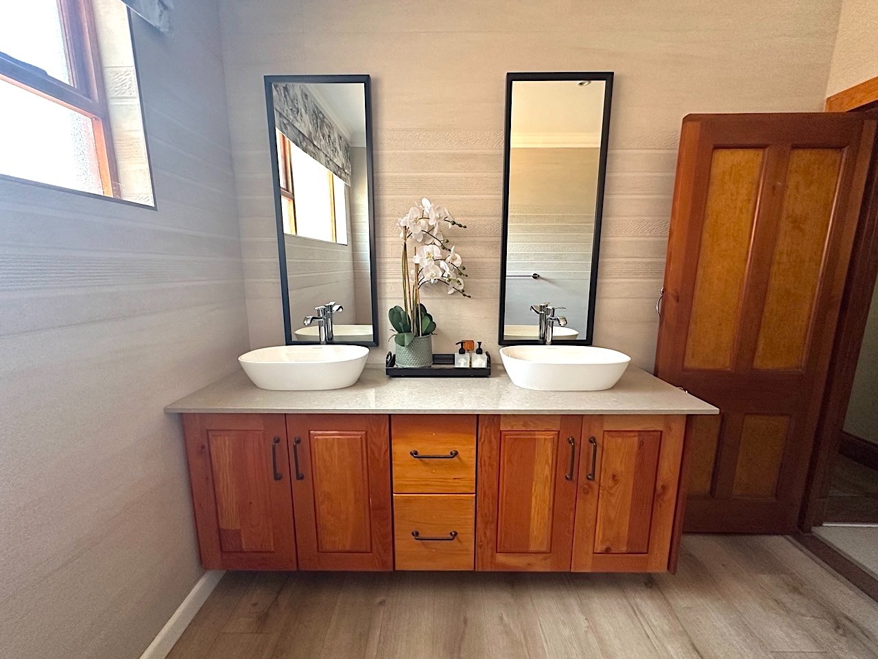 Not only does the kitchen, scullery and laundry have customised built-in solid wood Oregon Pine cabinetry but it is also incorporated throughout the WHOLE house: all the doors, doorposts and window frames.