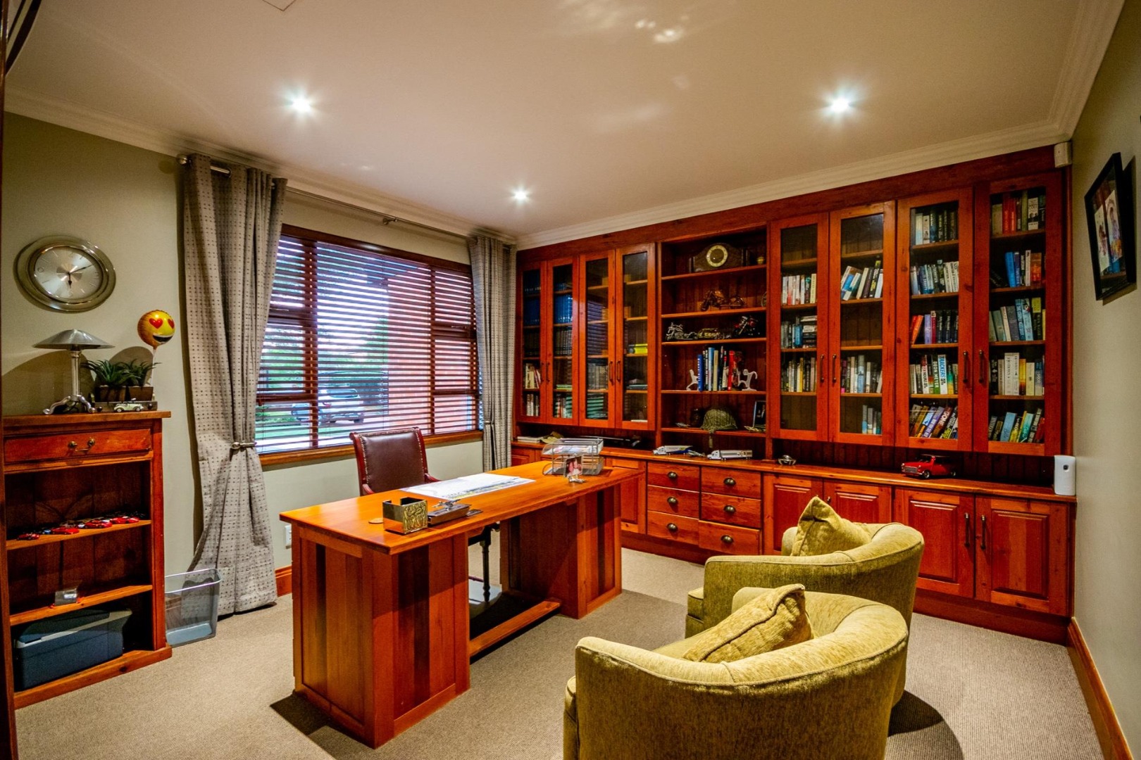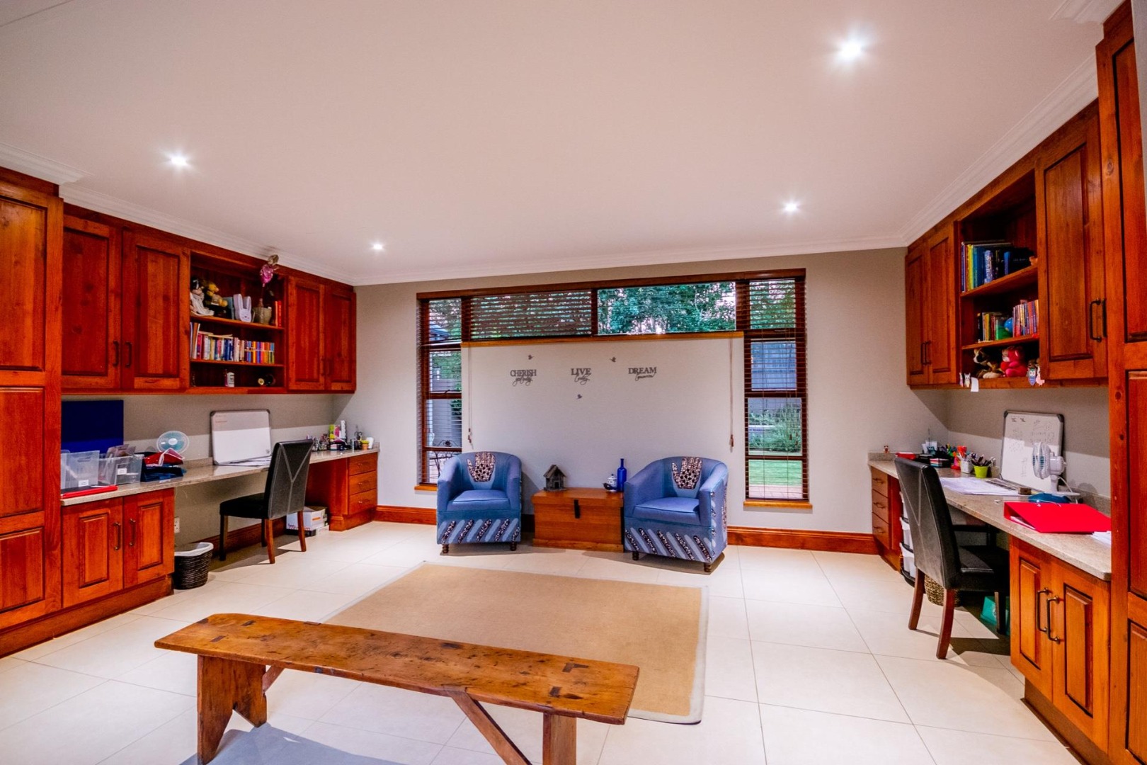 Secondly find a separate lounge to the left of the house, air conditioned with sliding doors to the garden and last but not the least is yet another room with wall-to-wall built in Oregon Pine bookshelves and study desks, ideal for children doing homework and assignments or even home-schooling.