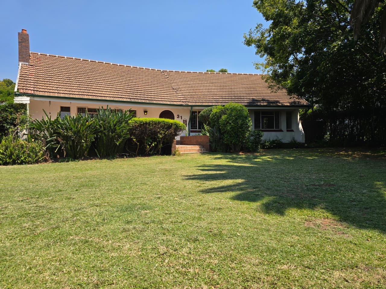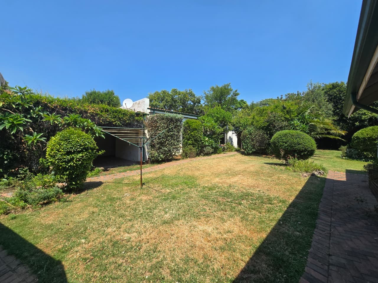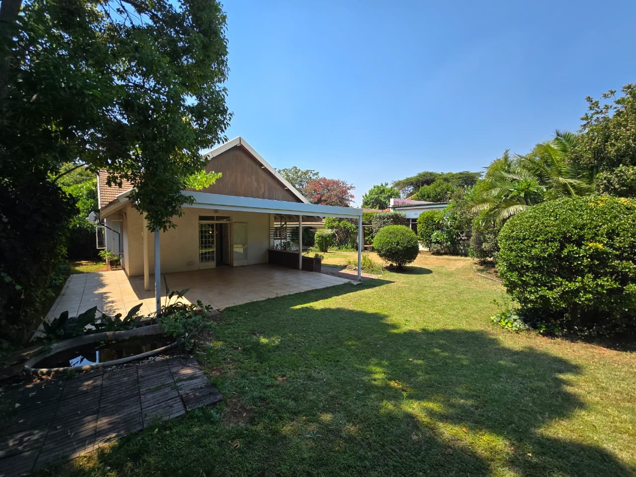 Nestled in the desirable suburb of Pine Park, Randburg, this charming single-story residence presents a welcoming facade. The property boasts established landscaping with mature trees and flowering shrubs, creating a private and serene environment. A brick paved driveway leads to the home, enhancing its traditional aesthetic and offering ample parking space for residents and visitors alike.