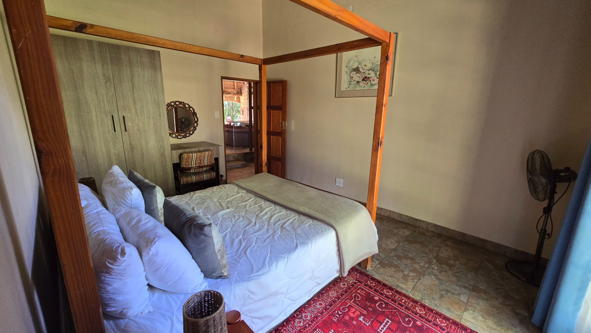 In close proximity to the lodge are garages, workrooms, slaughtering- and cooling facilities and labourer’s quarters. In another location but still in close proximity to the lodge a newly built managers house with three bedrooms, two bathrooms, one being en-suite, large lounge/dining area with an open plan kitchen, laundry/scullery and veranda with a built-in braai.