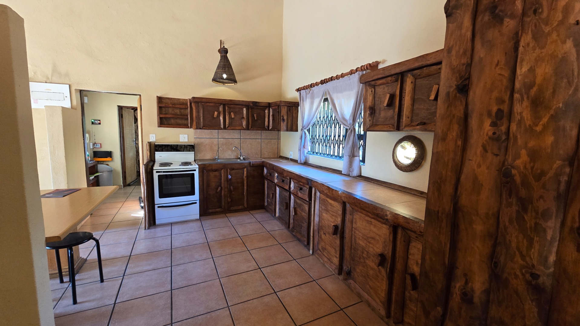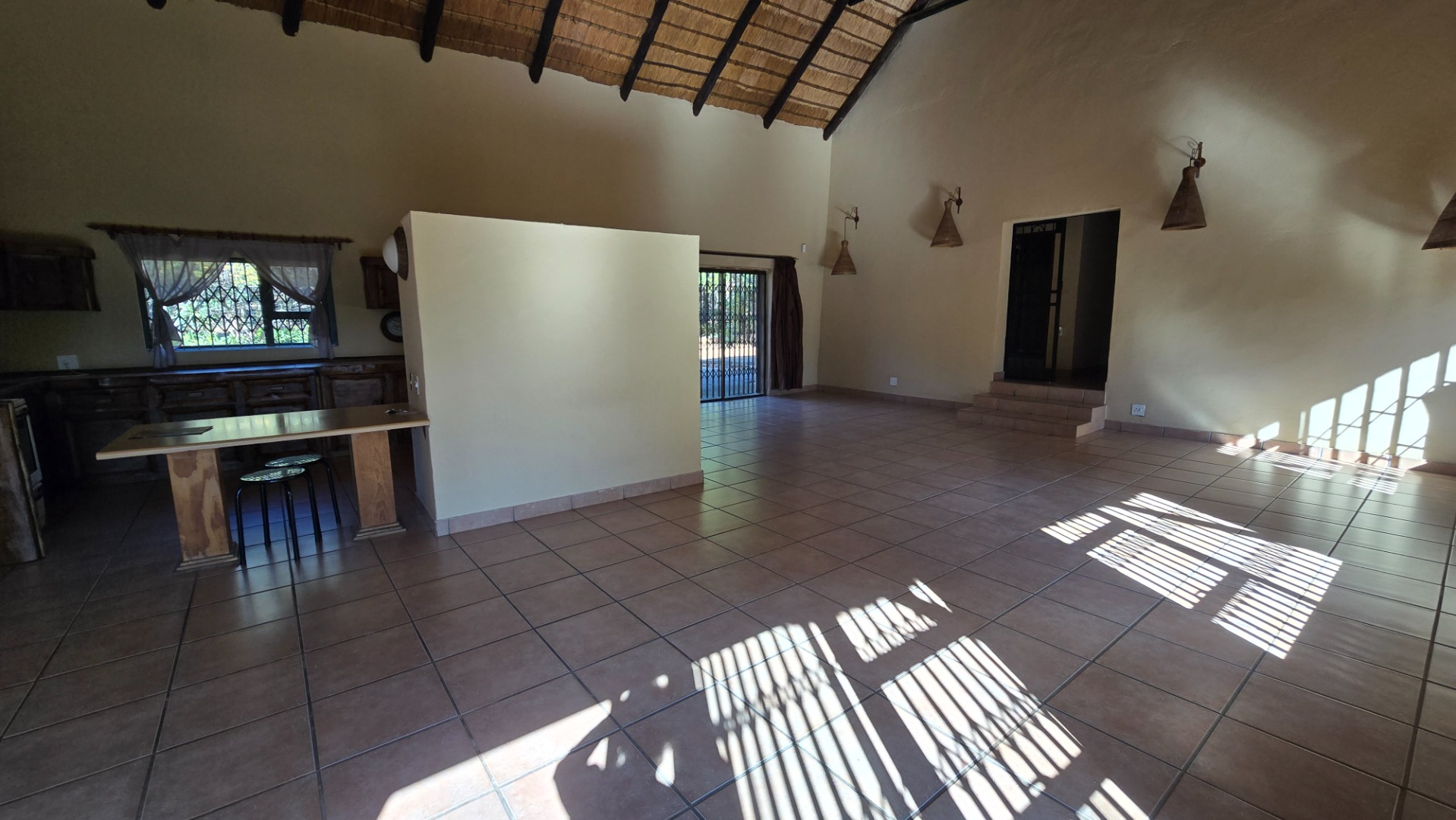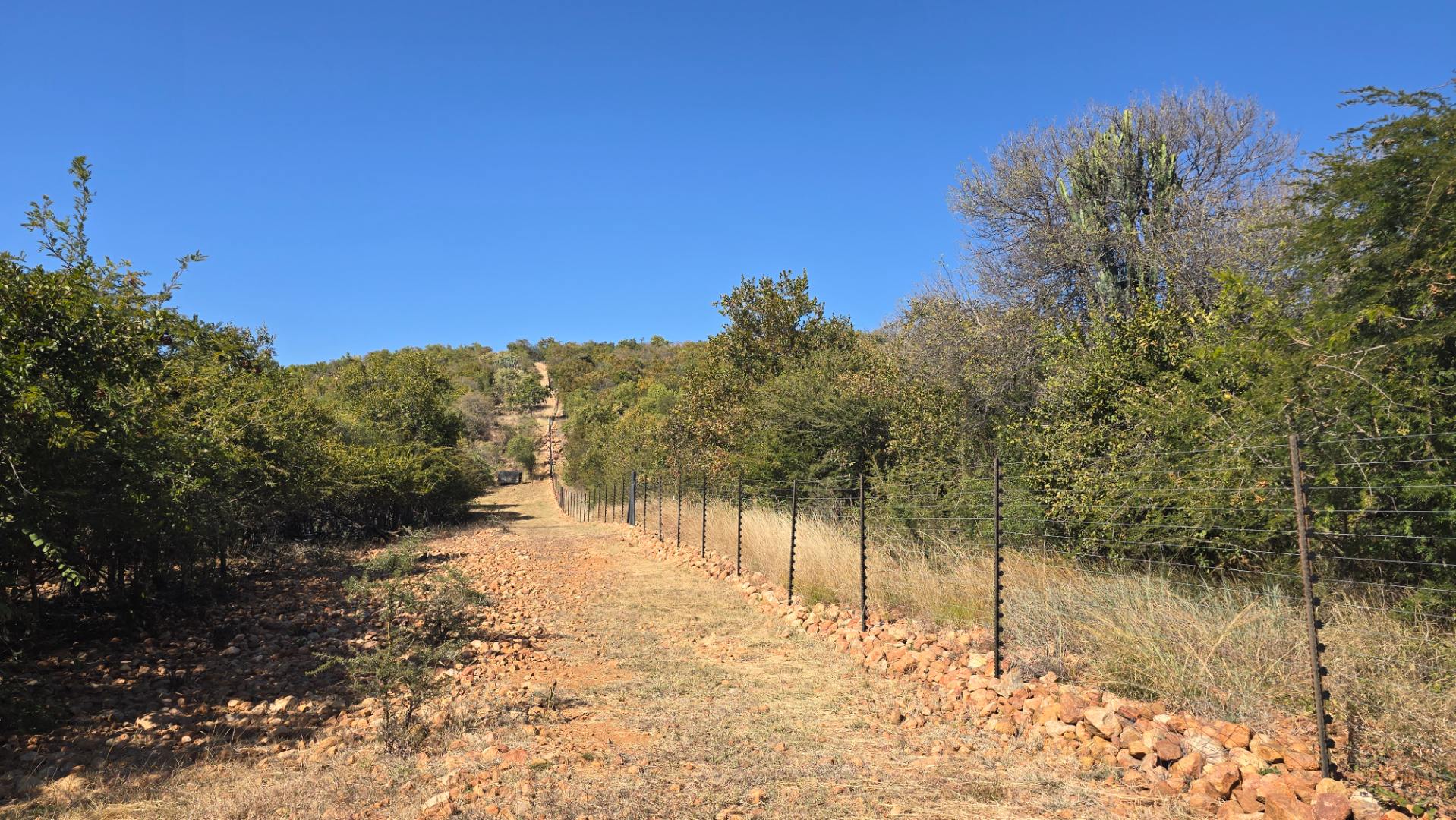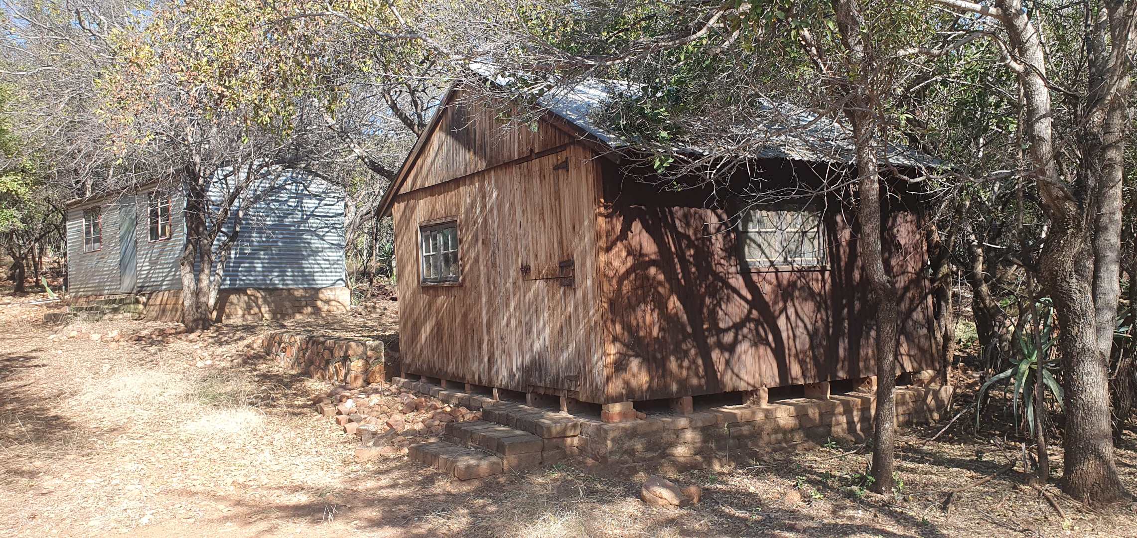 The property boasts a new, thatch-roofed house of absolutely excellent stone construction featuring two en-suite bedrooms, Spacious open plan kitchen and living areas with solid wood cupboards, even in the study that can be used as a third bedroom and lending a lovely ambiance to the house. The dwelling is nestled in a beautiful and well cultivated garden with proper irrigation system and enclosed with high standard electrified security fence and remote-controlled gates. Security further include alarm systems, beams and proper burglar bars.