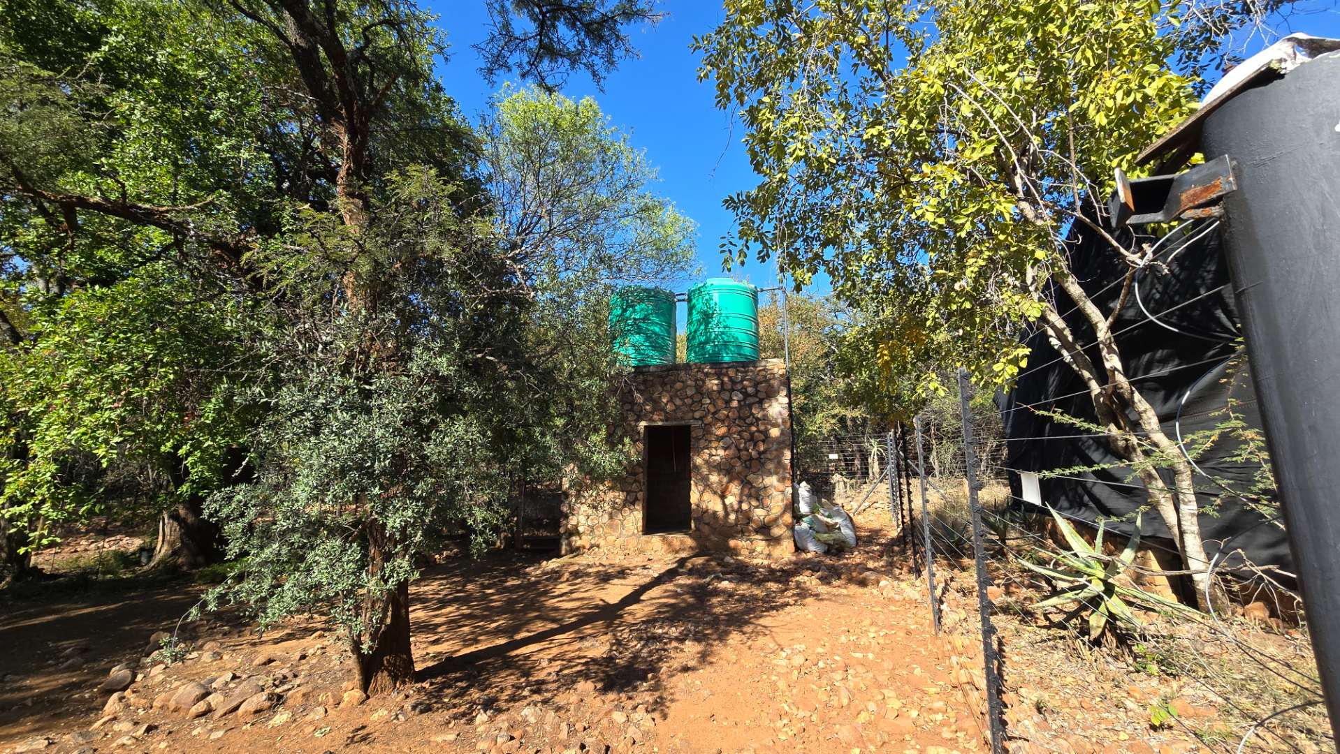 Water to the farm is supplied through a strong and fitted borehole and stored in several water tanks feeding all improvements and troughs to supply water to the game on the farm. Power is supplied by Eskom through a three phase 50kVA transformer. energizers. Further improvements include a one bedroomed flat with kitchen, bathroom, carport and separate entrance, a greenhouse as nursery, Staff quarters and various sheds and store rooms. Also a 600m shooting range.