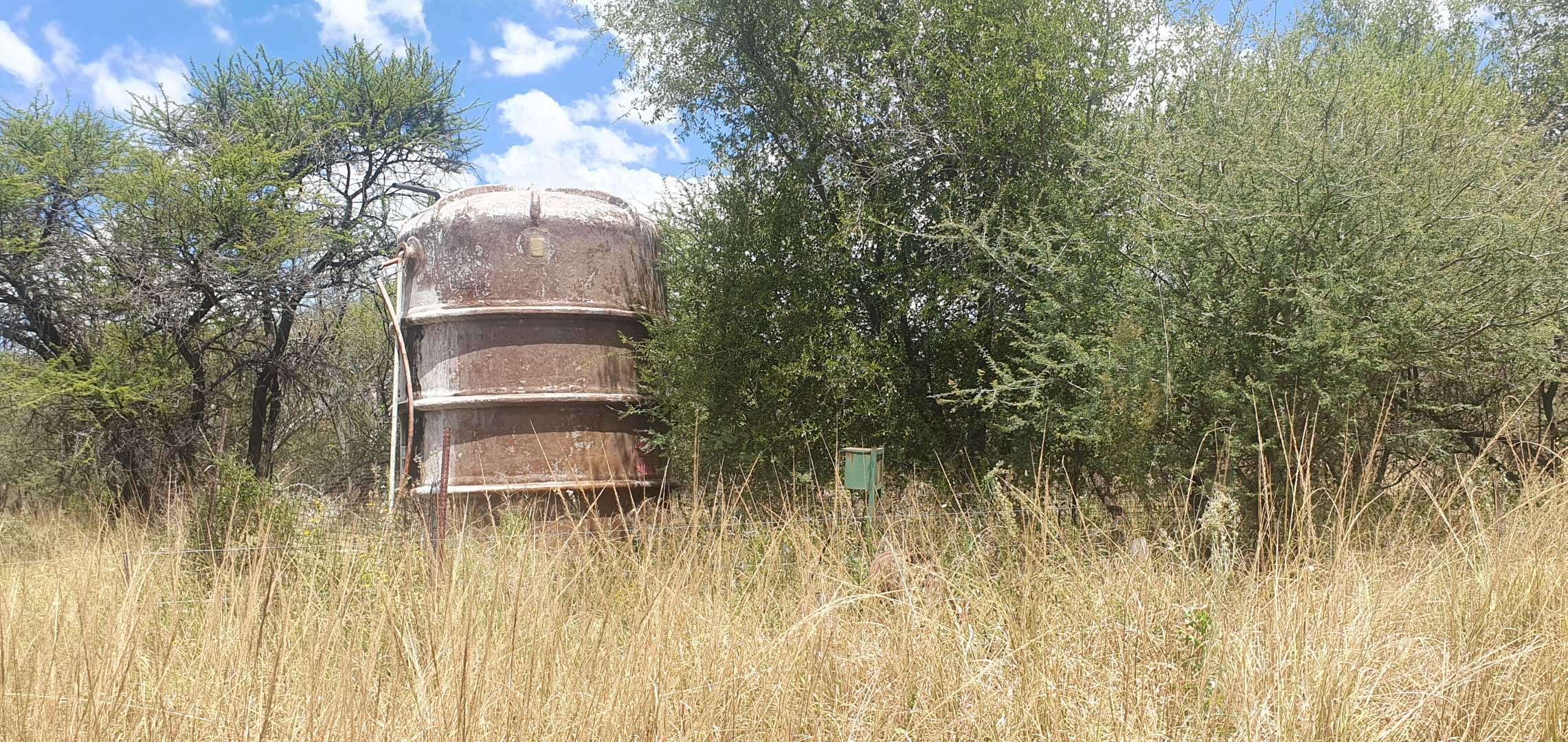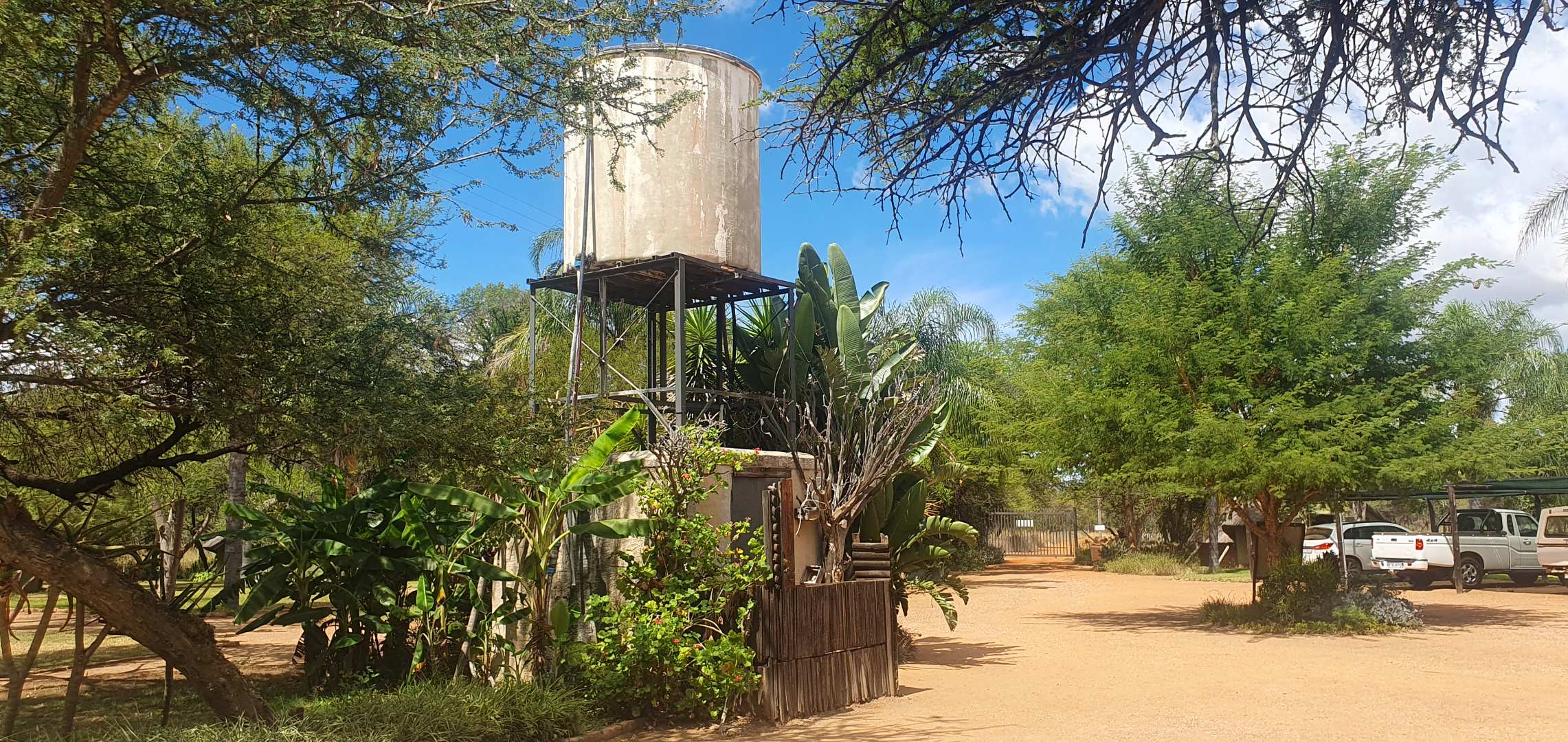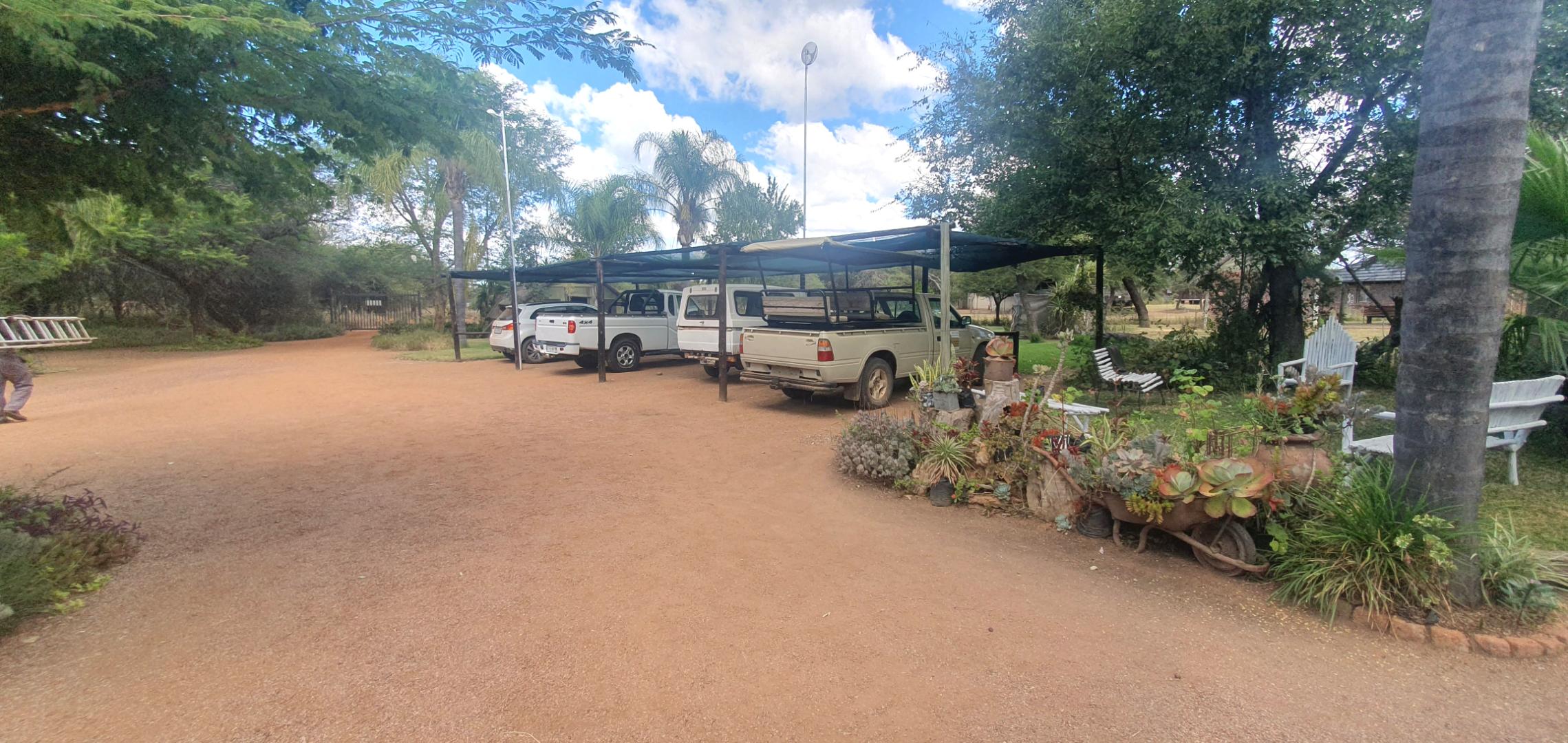 Furthermore store rooms, slaughtering facilities and cool room, stand by generator, large shed, carports, labourers quarters and cattle and sheep handling facilities. Eskom supply power to the farm and lodge and water are being sourced from two equipped boreholes. Ther are two soil dams on the farm, one of which is quite large. Ample r roads allow access to all corners of the farm, the topography is mostly flat and the veldt is typical Mixed Bushveld with numerous large bushveld trees and good grass coverage.