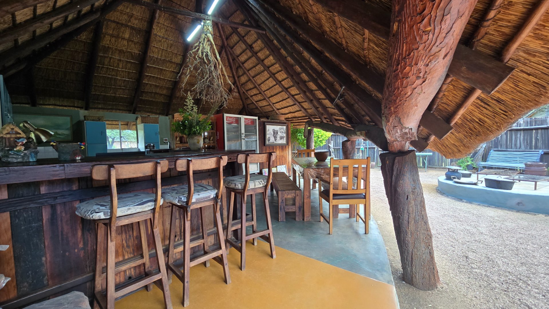 There are quite a number of accommodation facilities which consist of a main house with two bedrooms and two bathrooms, open plan dining, lounge and kitchen area and garage. Swimming pool, Lapa and bar also acting as reception area and 15 chalets in total.